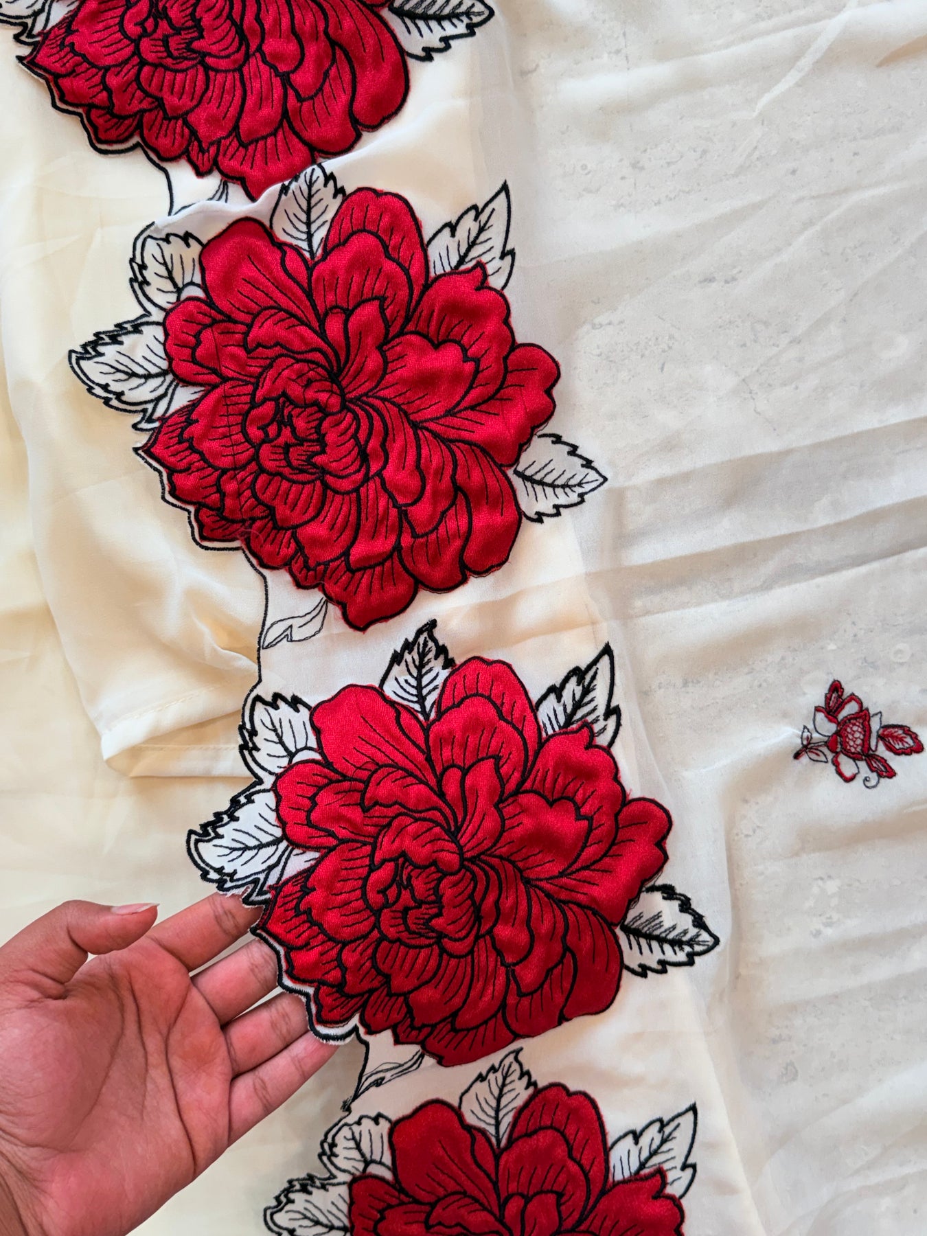 Sleeves with embroidery work.. Length 20 Inches