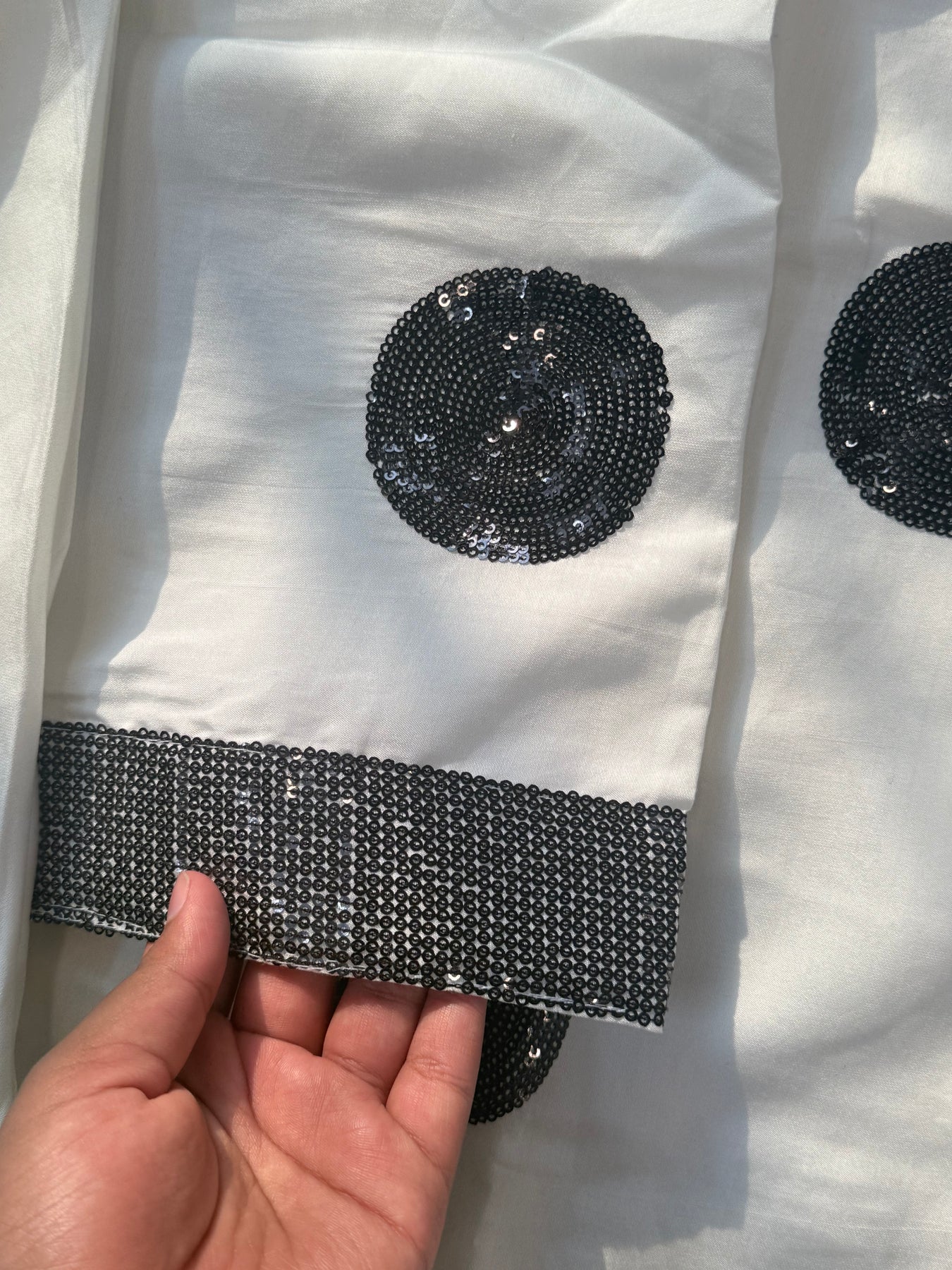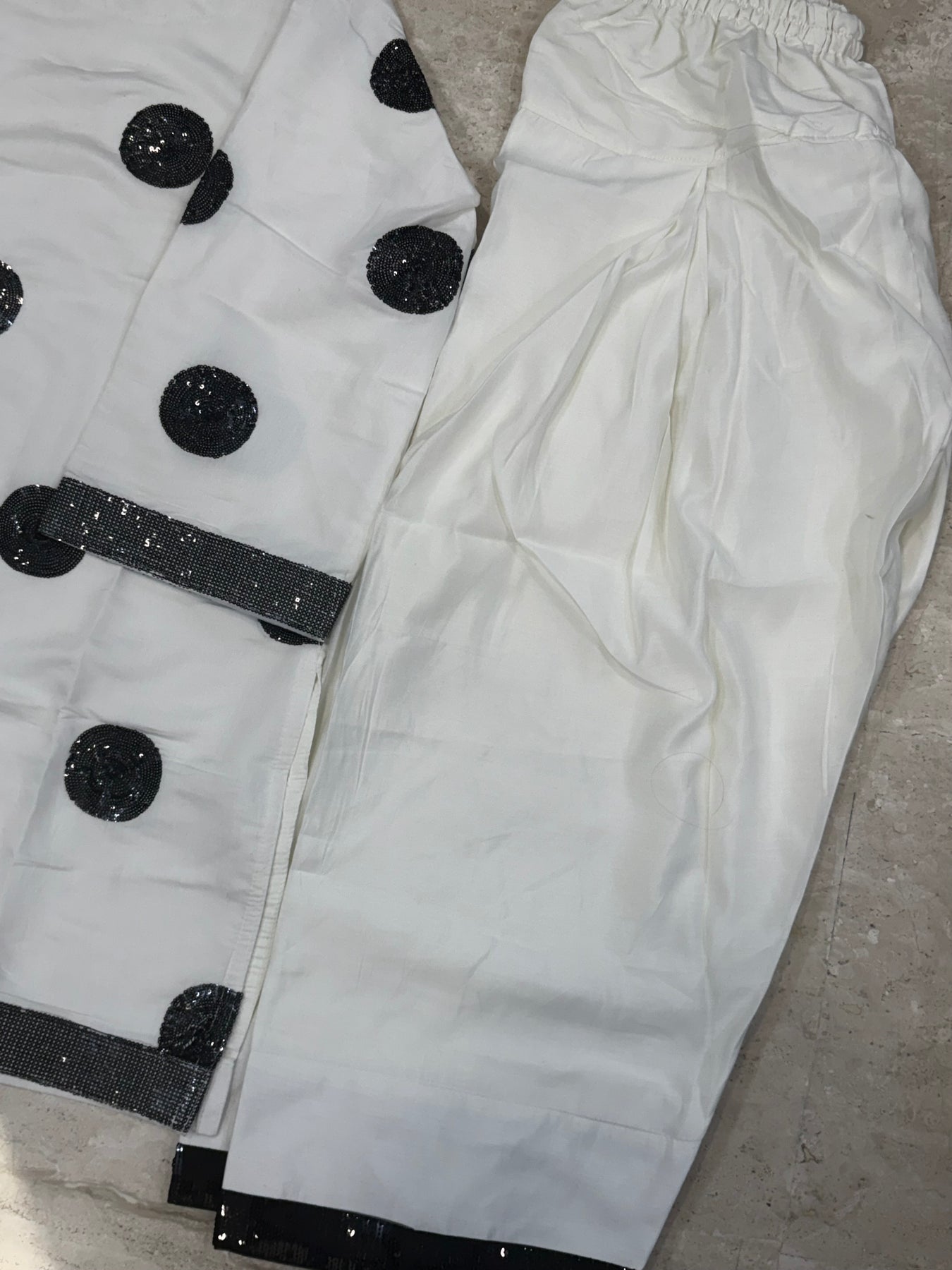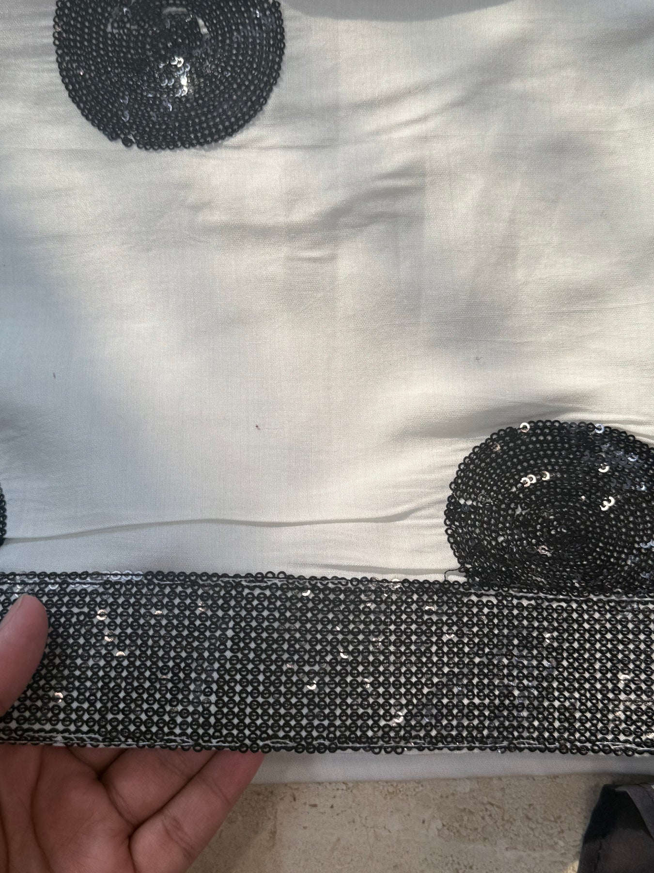 Top Cotton silk stitched with lining....beautiful sequence work circles and lace on sleeves 20 inches and front .lenght 36 Inches.