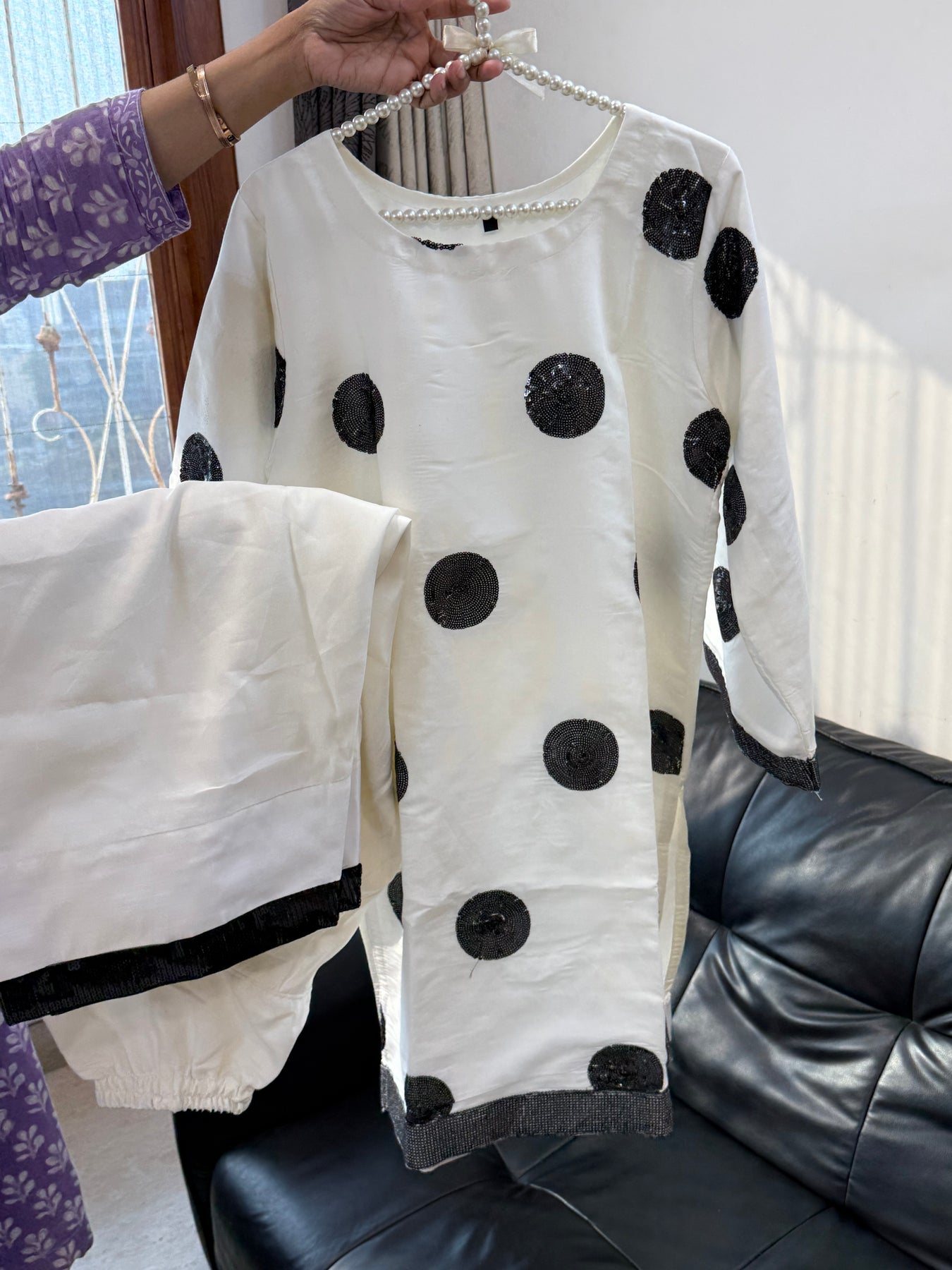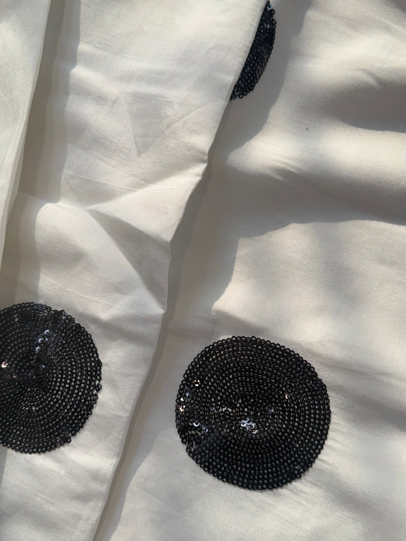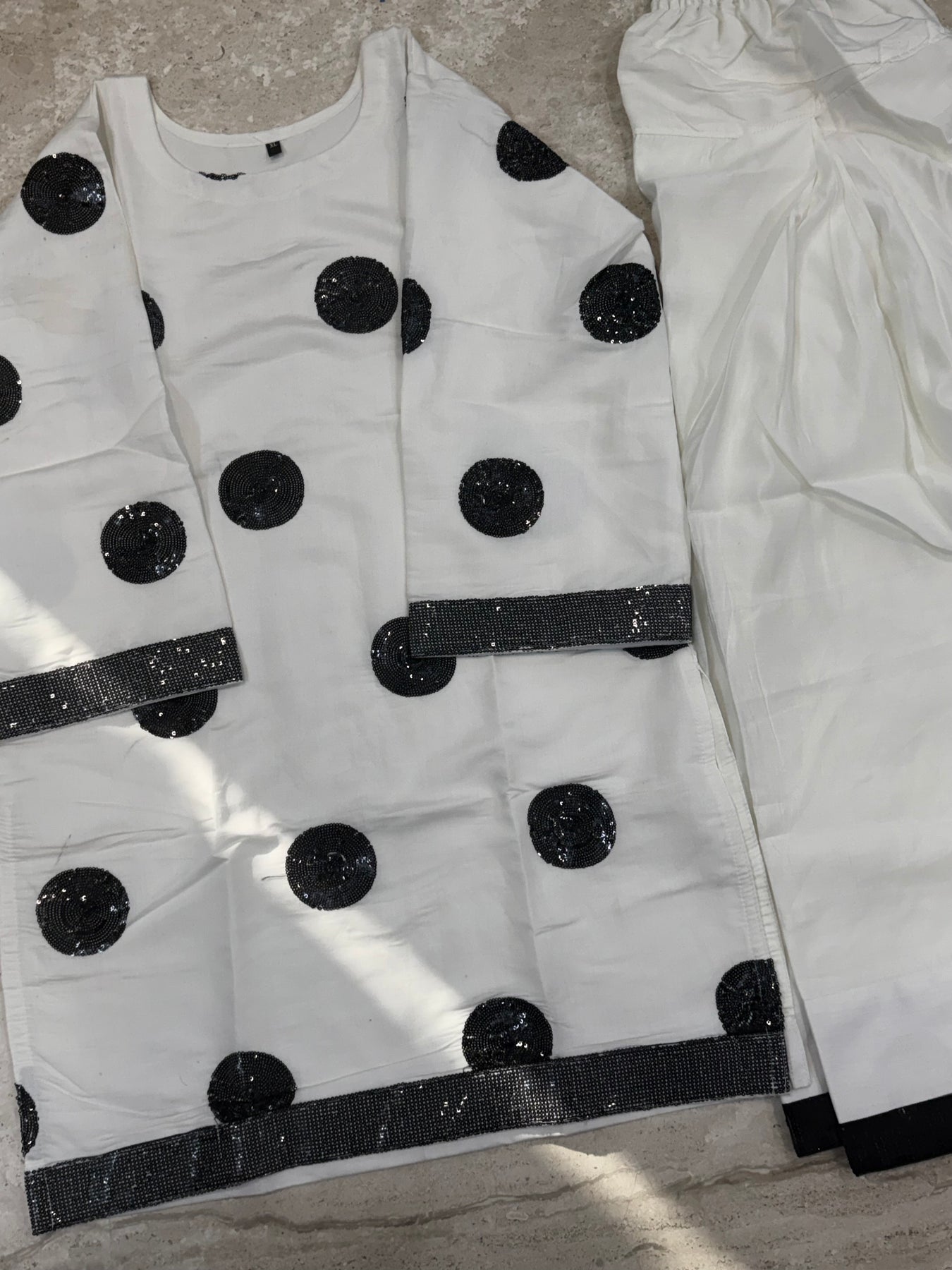 Top Cotton silk stitched with lining....beautiful sequence work circles and lace on sleeves 20 inches and front .lenght 36 Inches.
