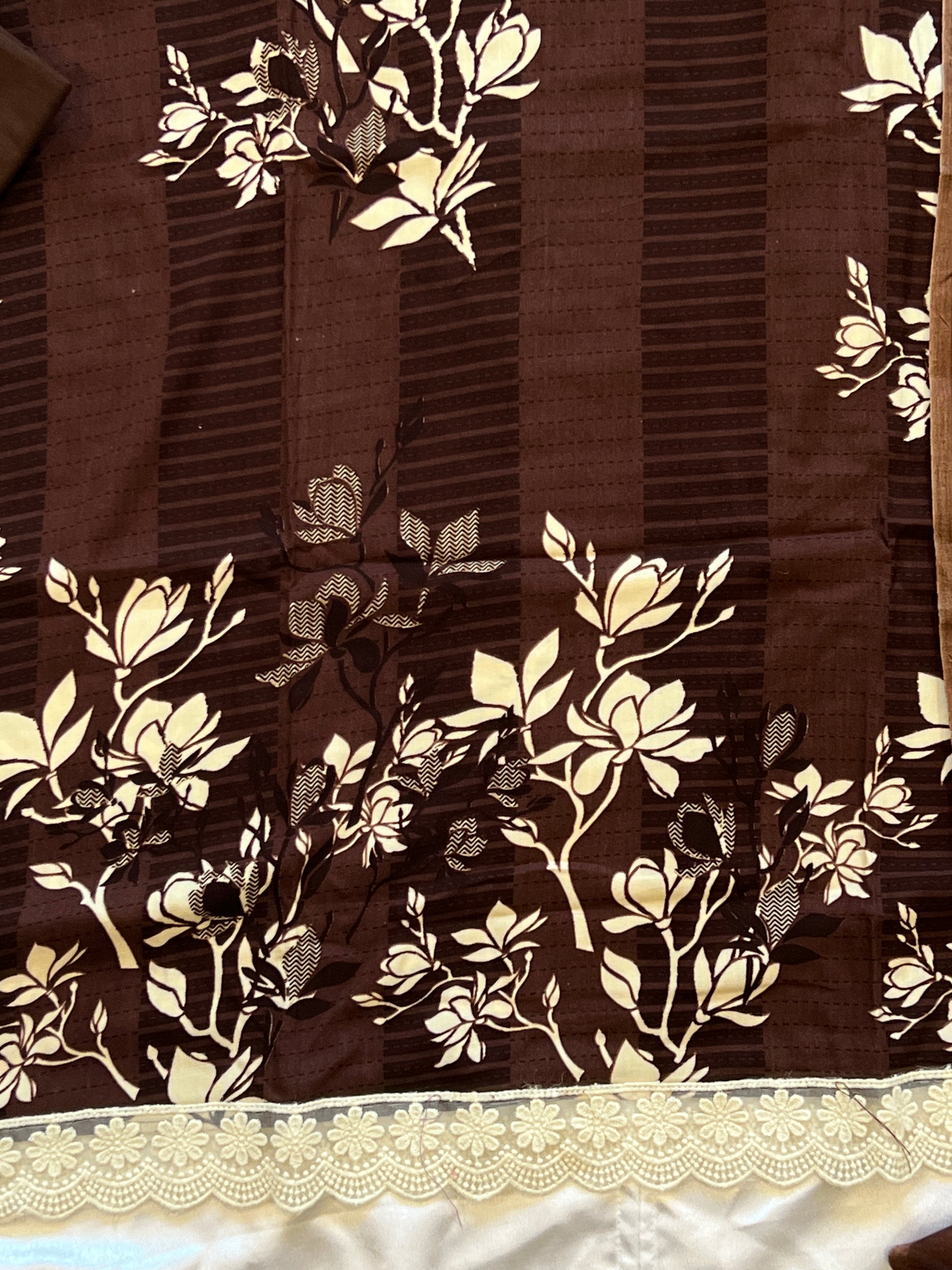 Top cotton Mill printed... beautiful embroidery on neck with beads…beautiful lace on Daman and sleeves ...Top length 48 Inches