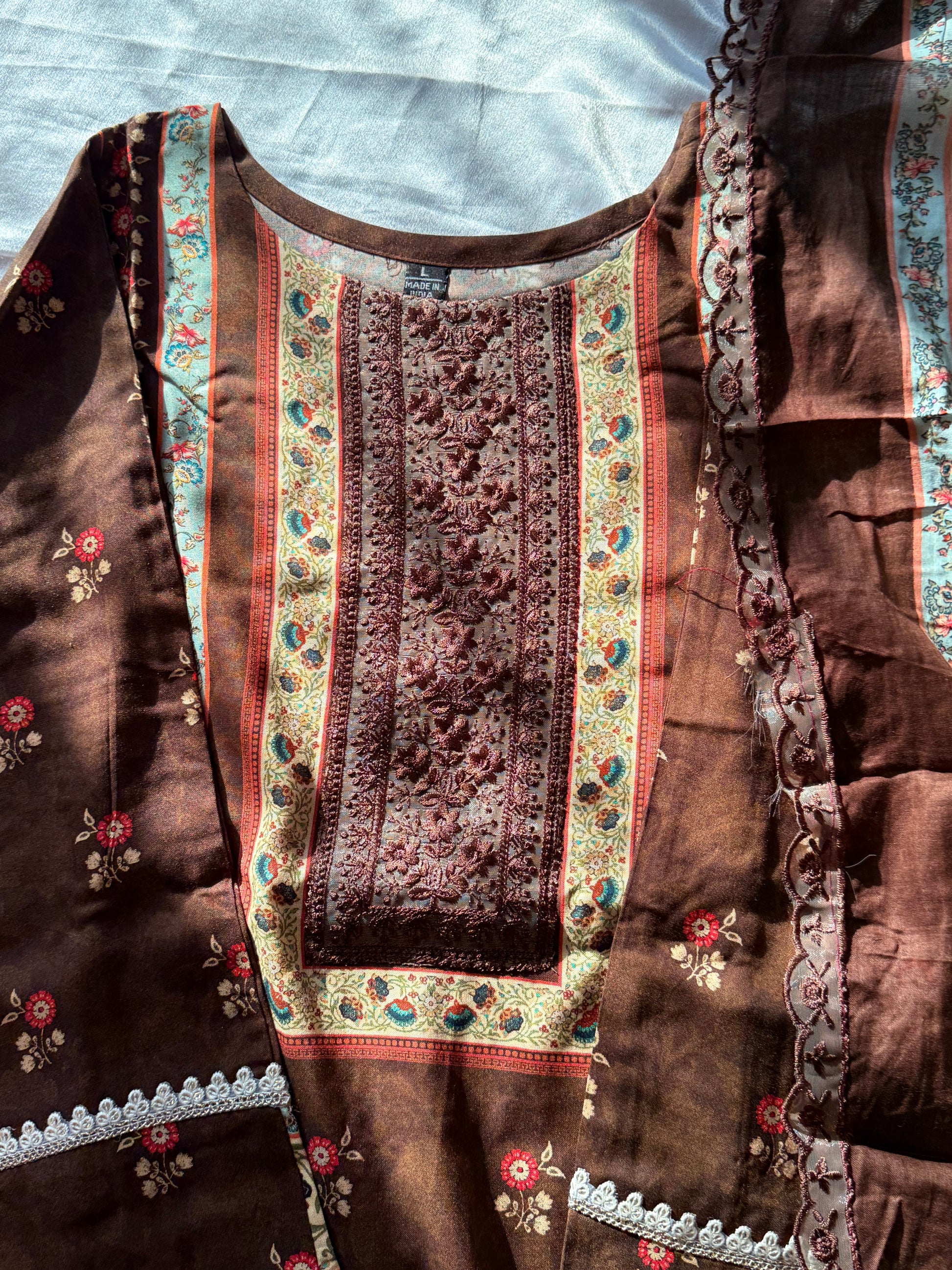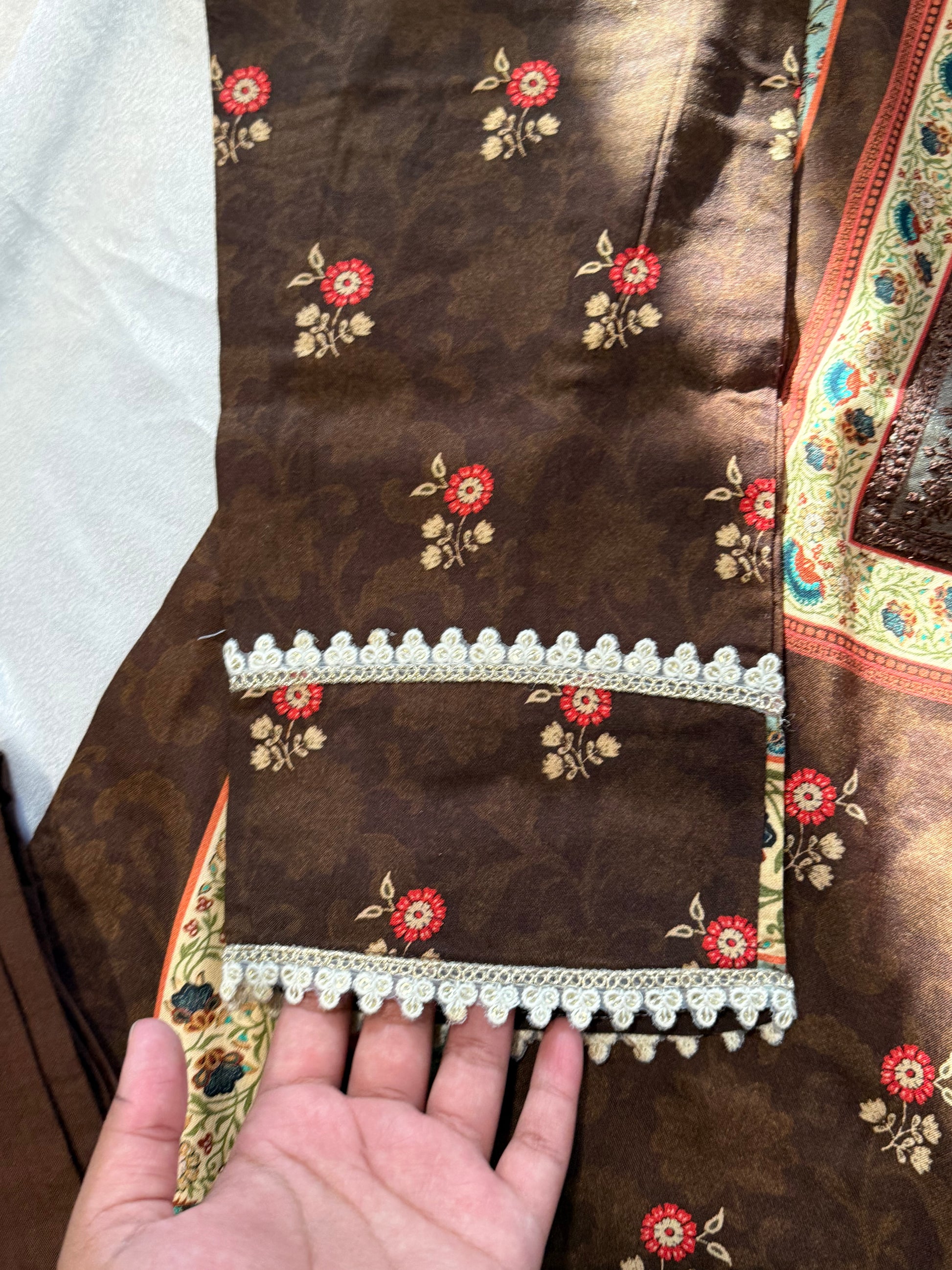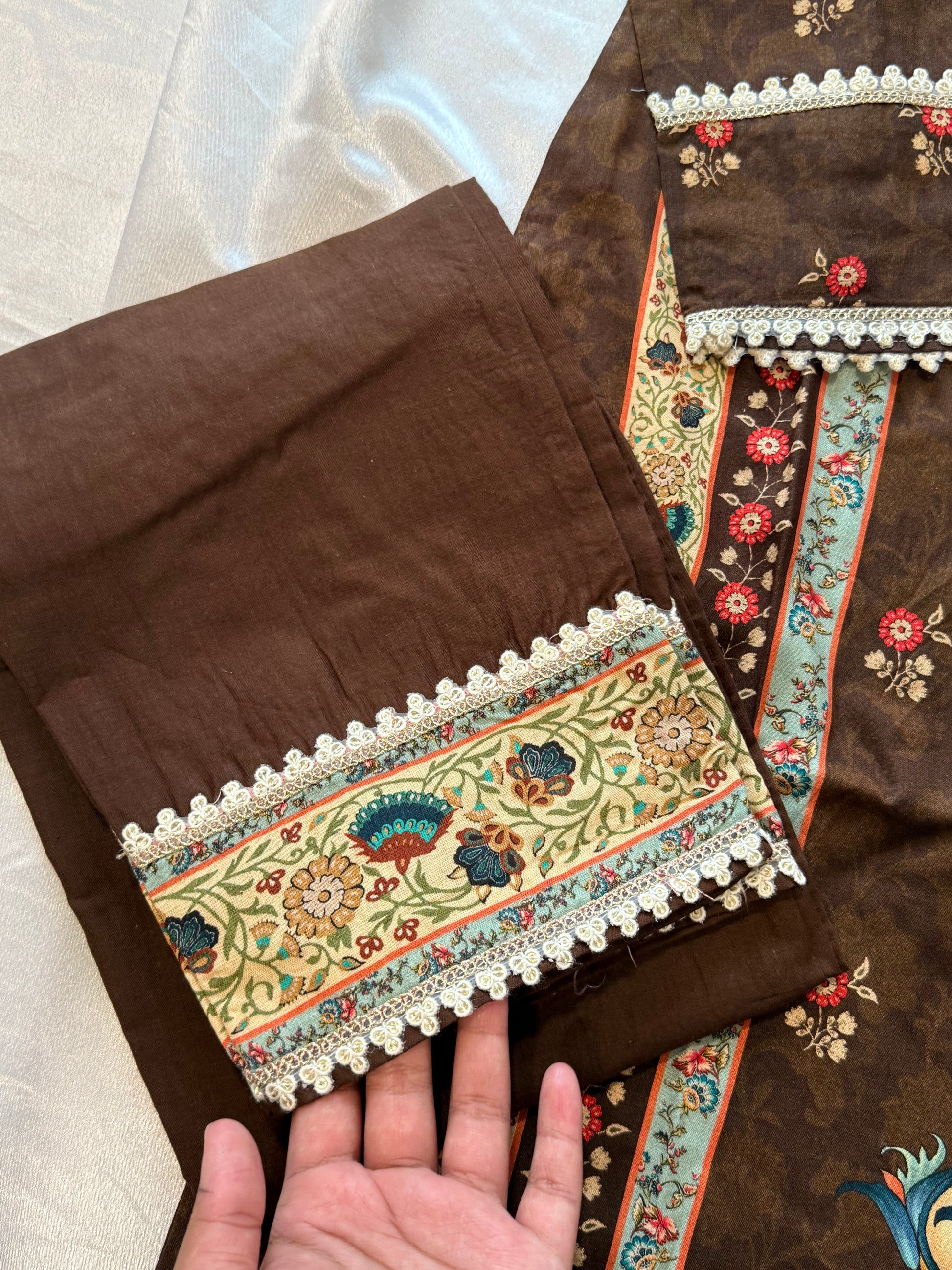 Top cotton Digital printed....Embroidery patch on Neck...... beautiful embroidery lace on front...