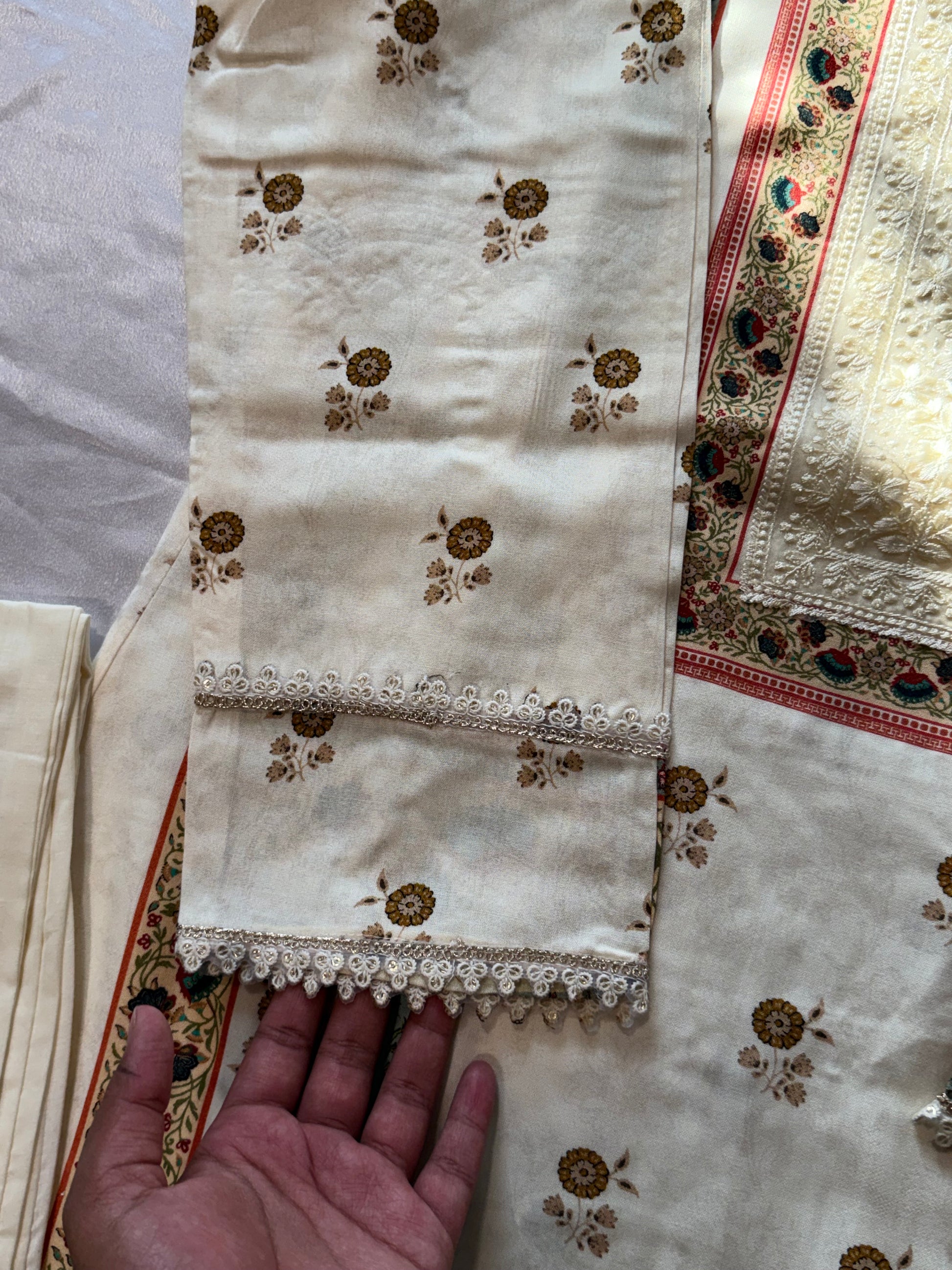 Cotton stitched pant with patch and lace .... length 37 inches