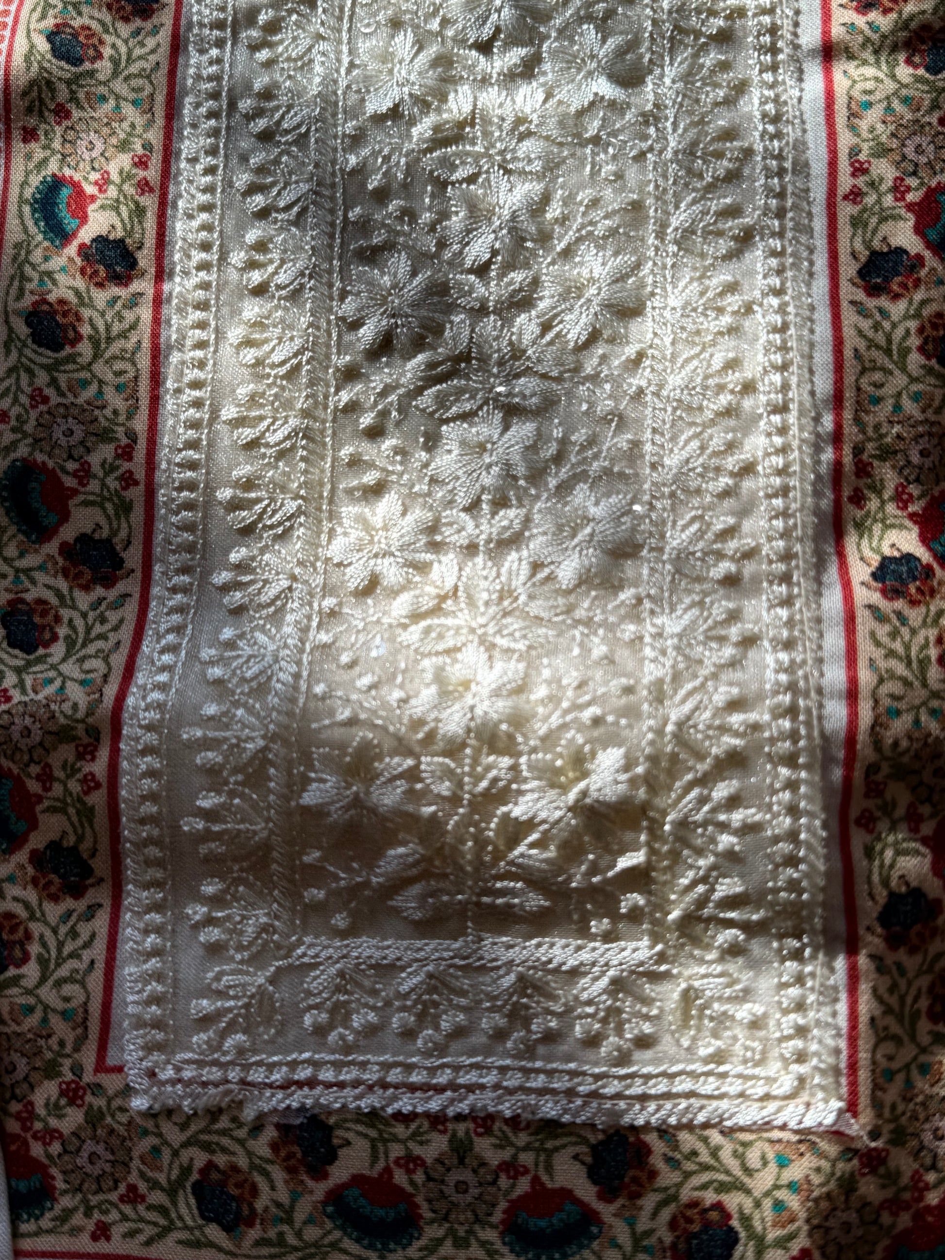 Top cotton Digital printed....Embroidery patch on Neck...... beautiful embroidery lace on front...