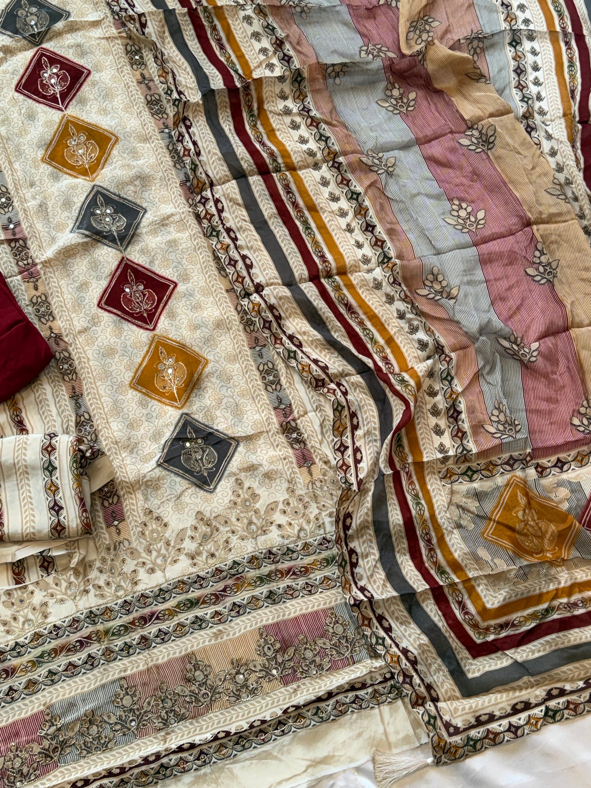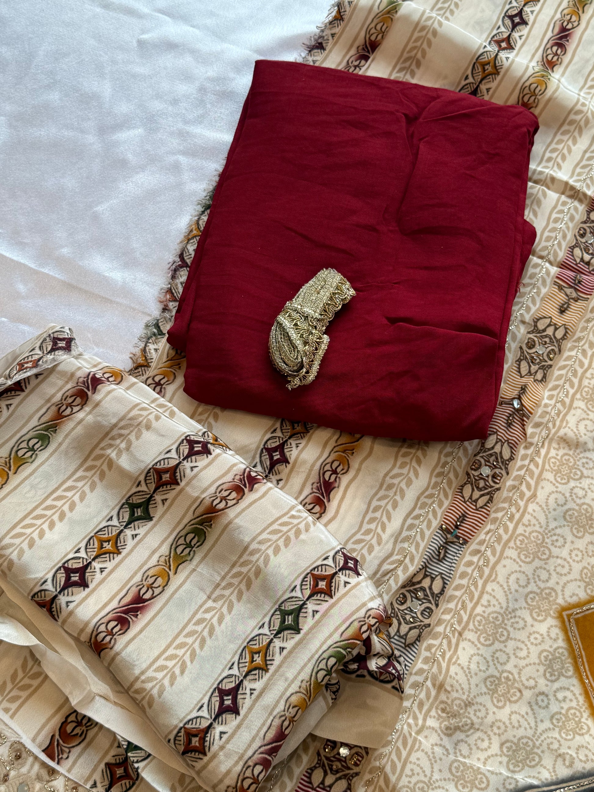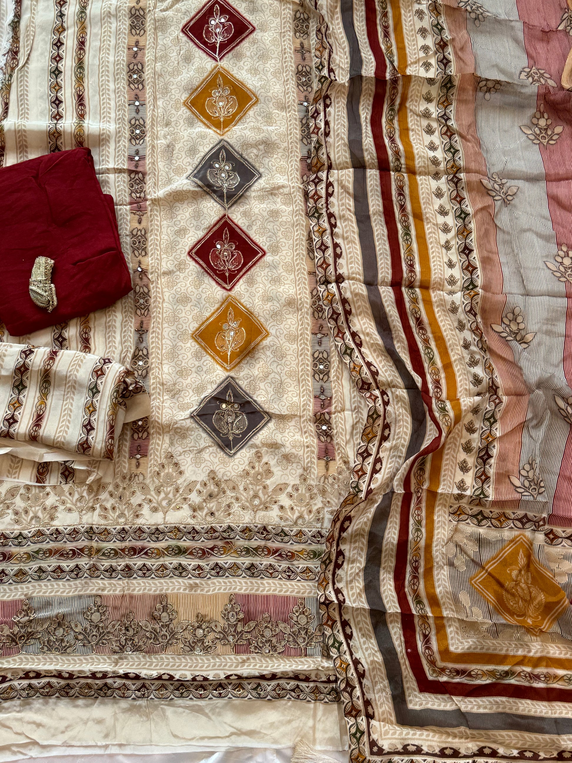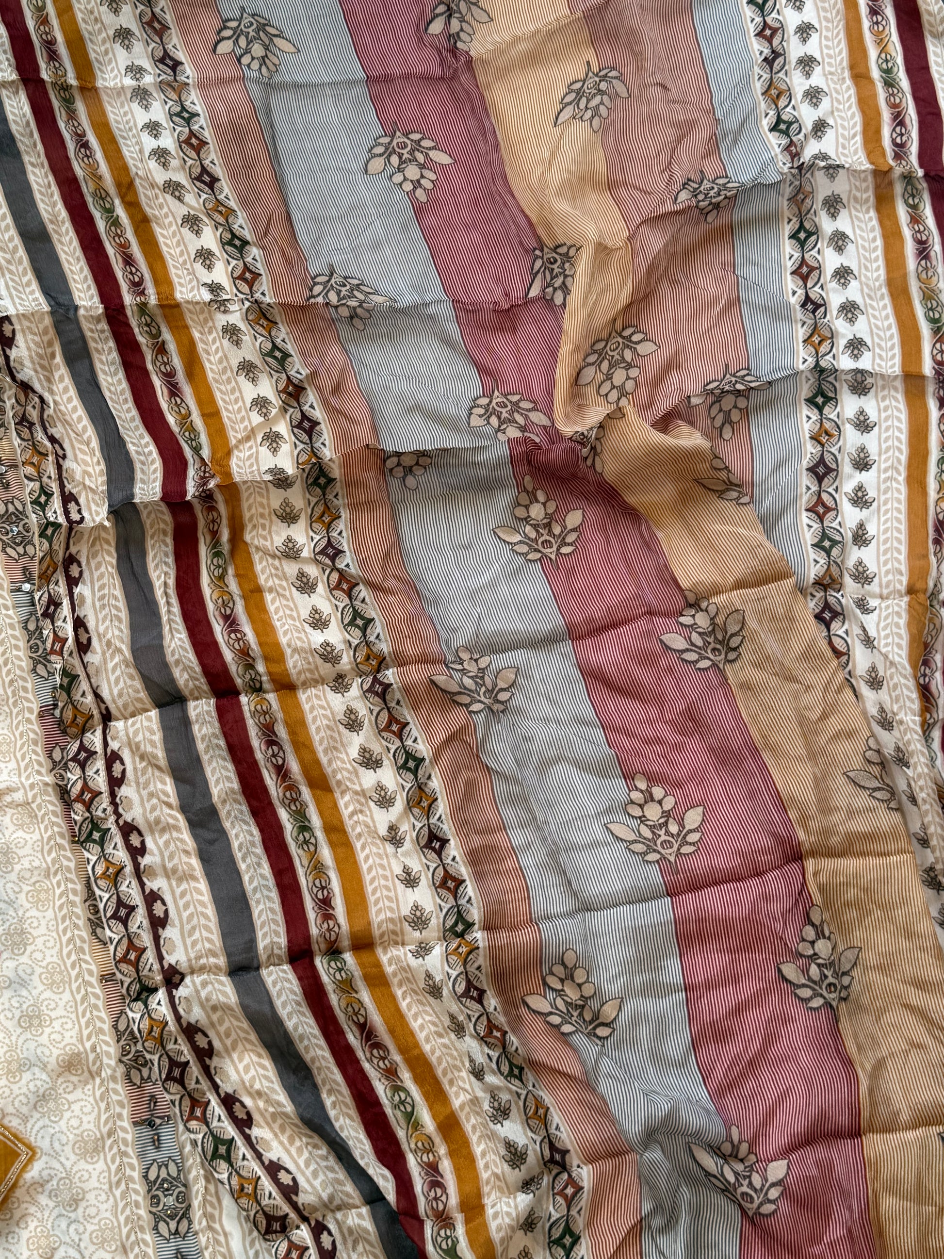 Top pure Crepe Digital printed.. beautiful Aari and Mirror hand work on front ...lenght 46 Inch..Bust 56 can be stitched....extra material for sleeves