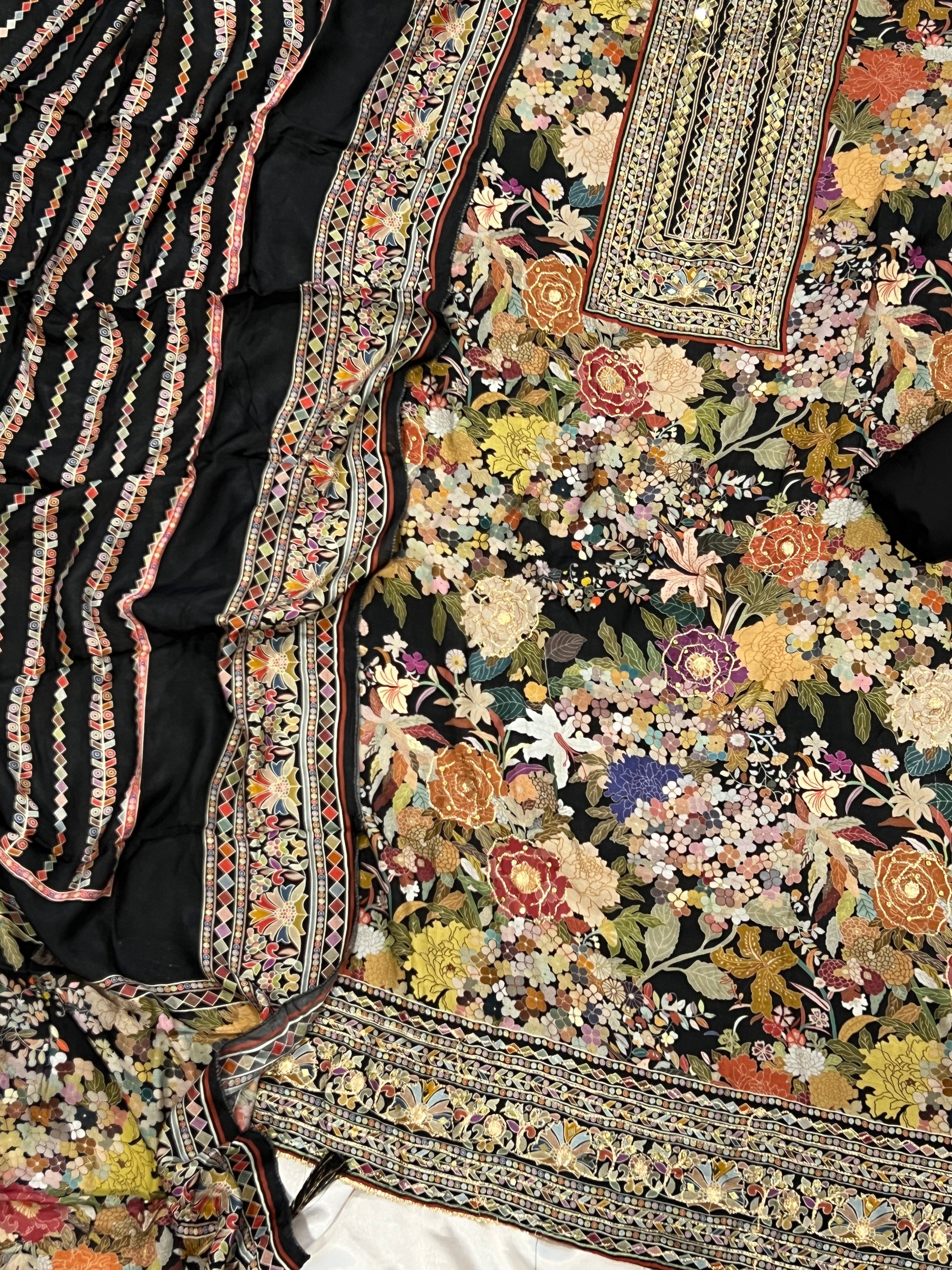 BLACK MUSLIN EMBROIDERY SUIT 234 Q