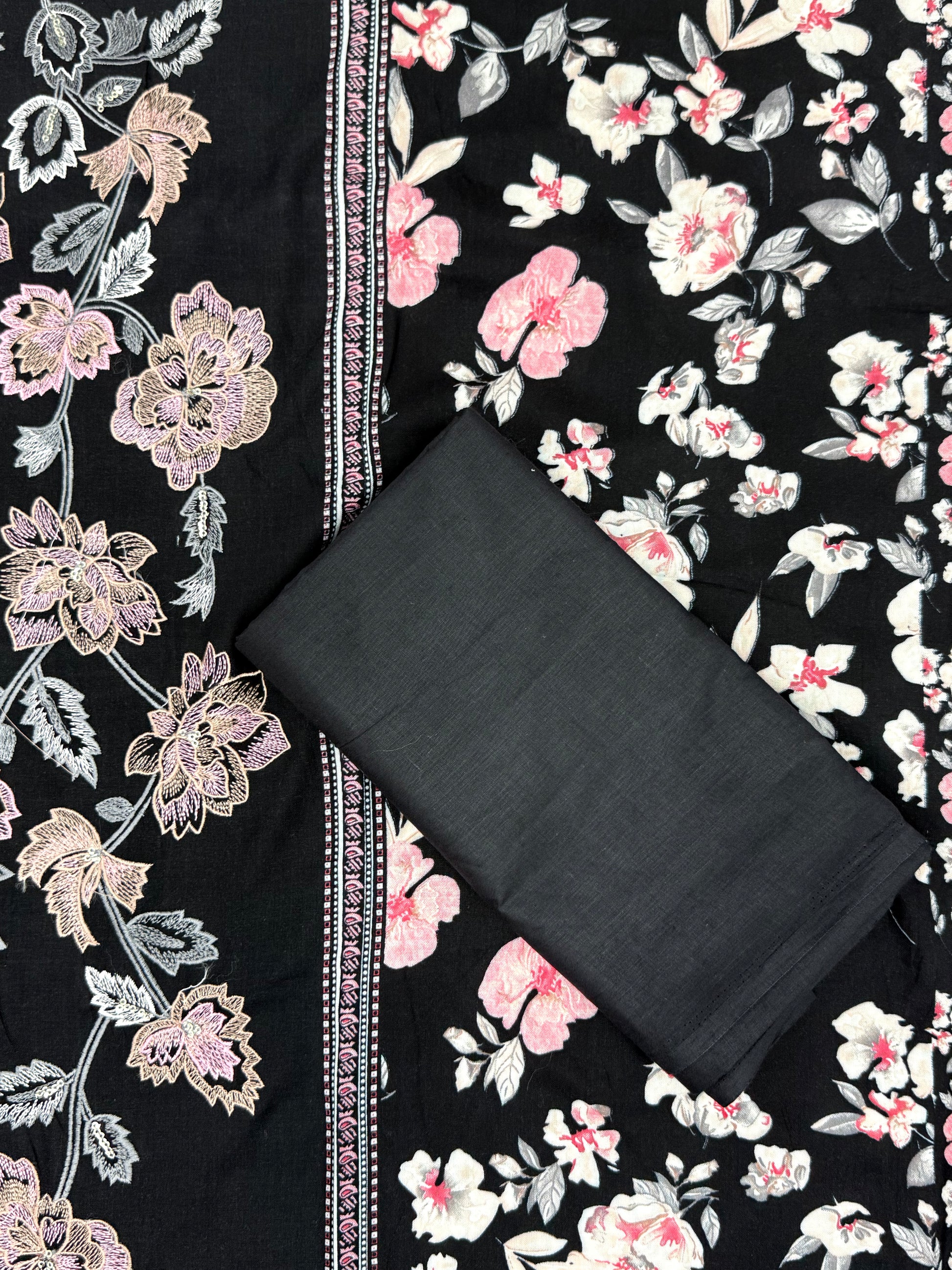 CASHMERE BLACK COTTON EMBROIDERY SUIT 1 Q