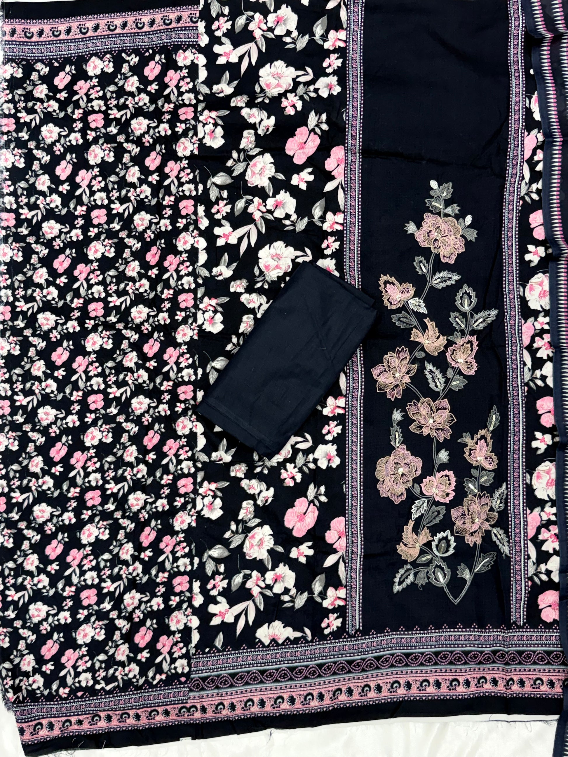 Top Lawn Cotton Mill Printed... beautiful cashmere embroidery on neck ...length 48 Inch..Bust 58 can be stitched
