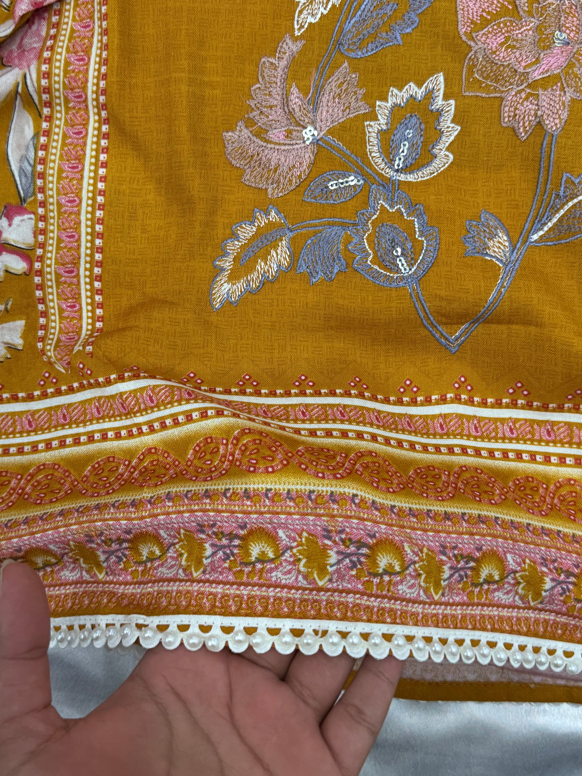 Top Lawn cotton Digital printed....kashmiri embroidery on Neck...... extra pearl lace on sleeves,neck and front...