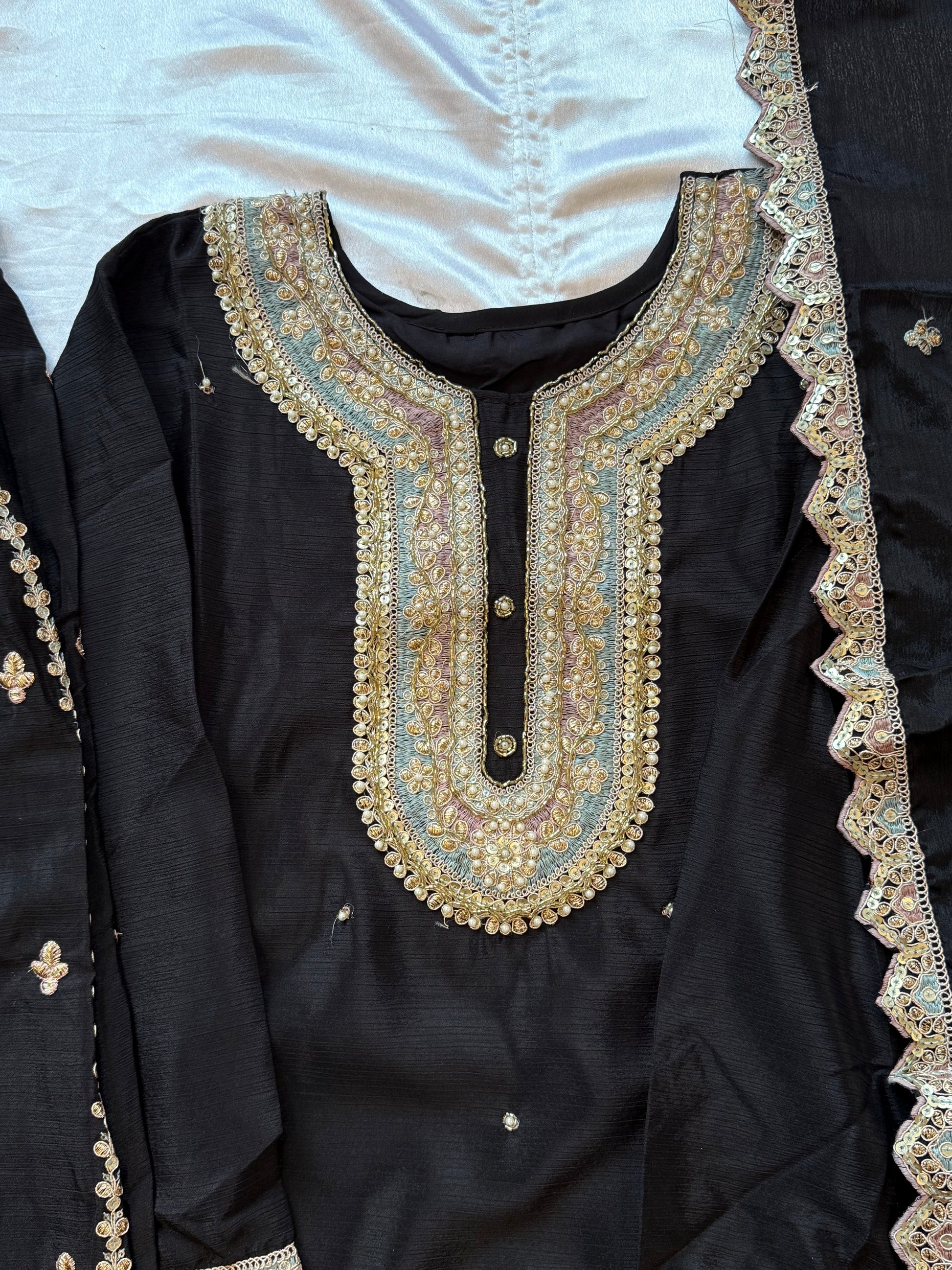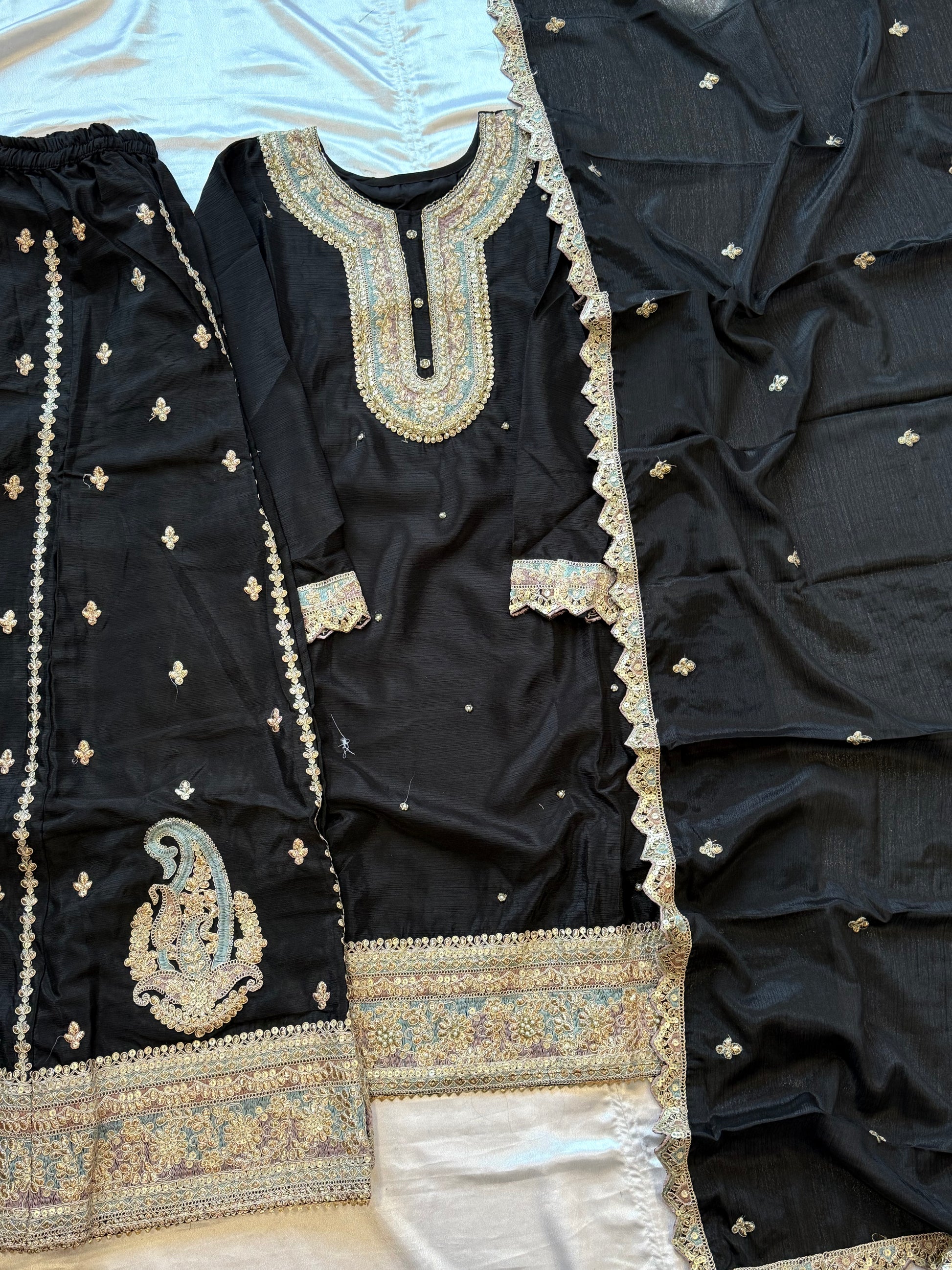 Designer Chinnon silk plazo worked and lining attached Bottom lenght 39