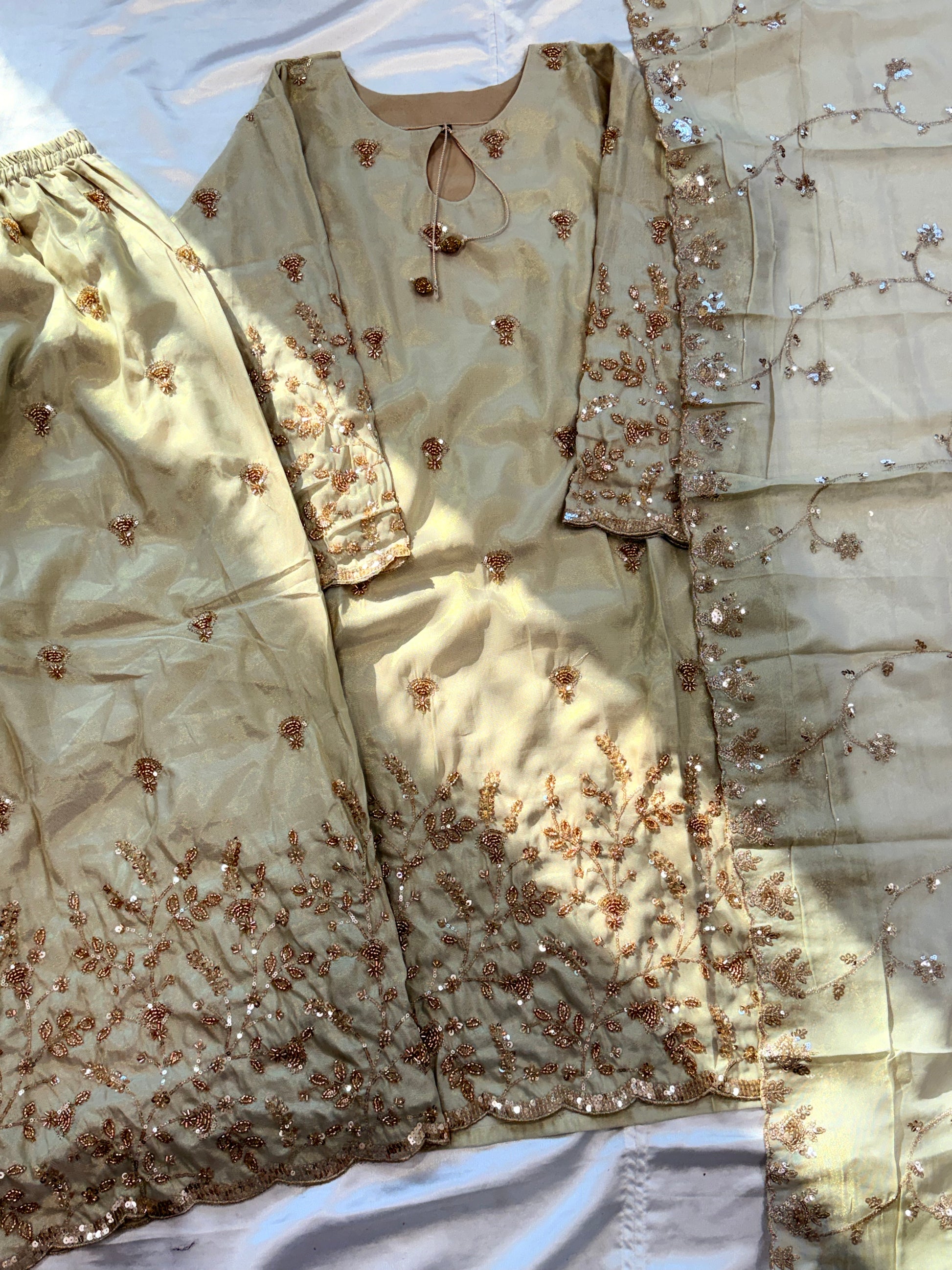 Cosmos silk Stitched plazo attached lining with handwork border... length 38