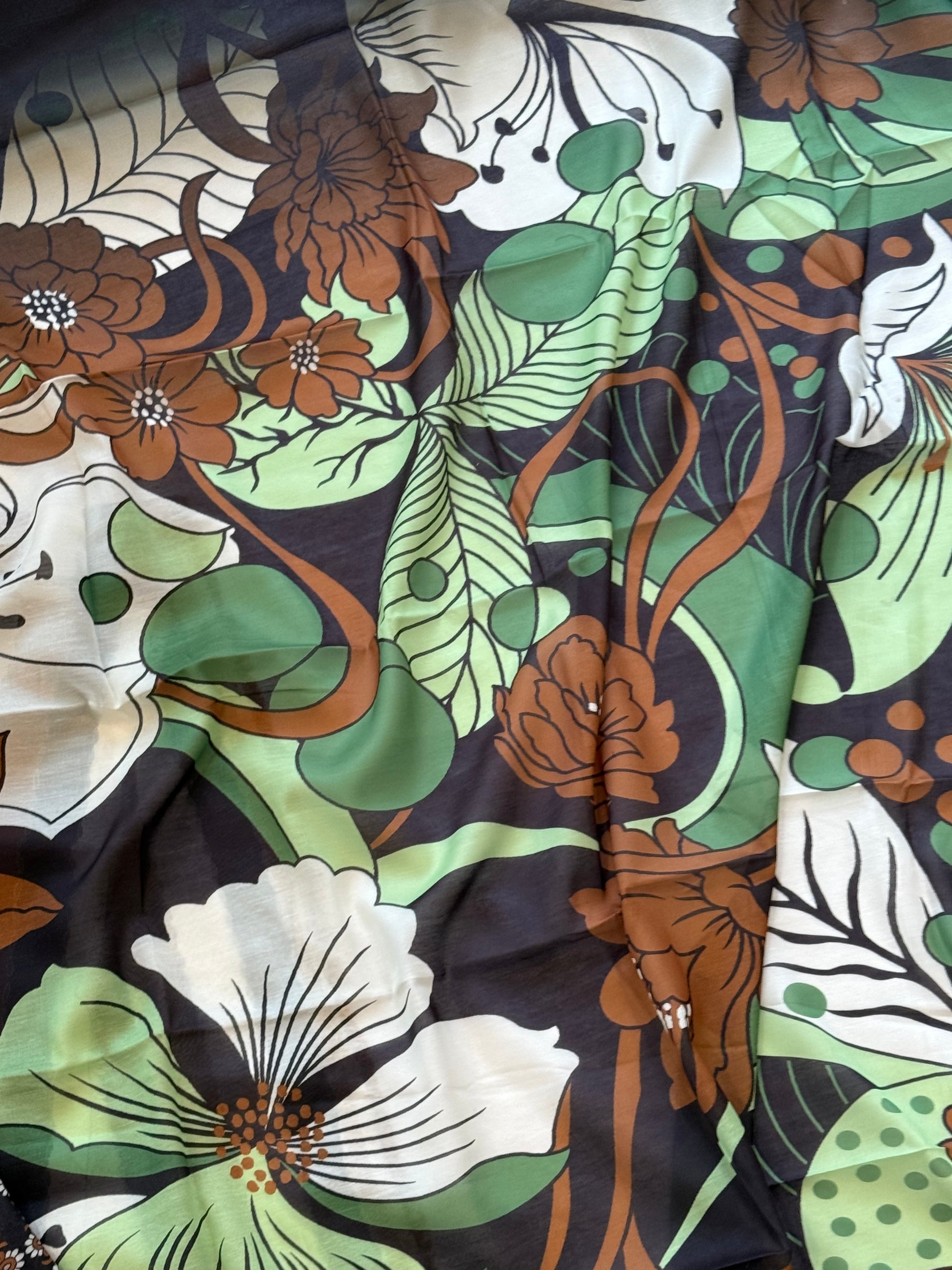 Top pure cotton Mill printed... beautiful embroidery on neck ...length 48 Inch..Bust 58 can be stitched