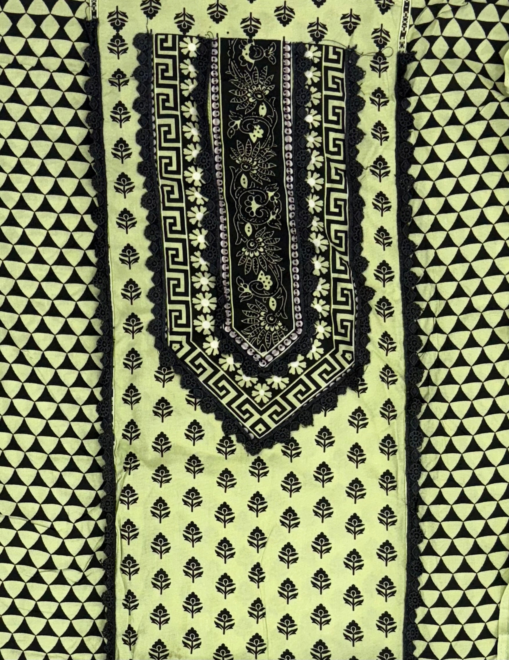 Top Lawn cotton Printed..... Neck embroidery ...Pakistani style neck made with lace...... extra lace detailing on front ,sleeves and daman....