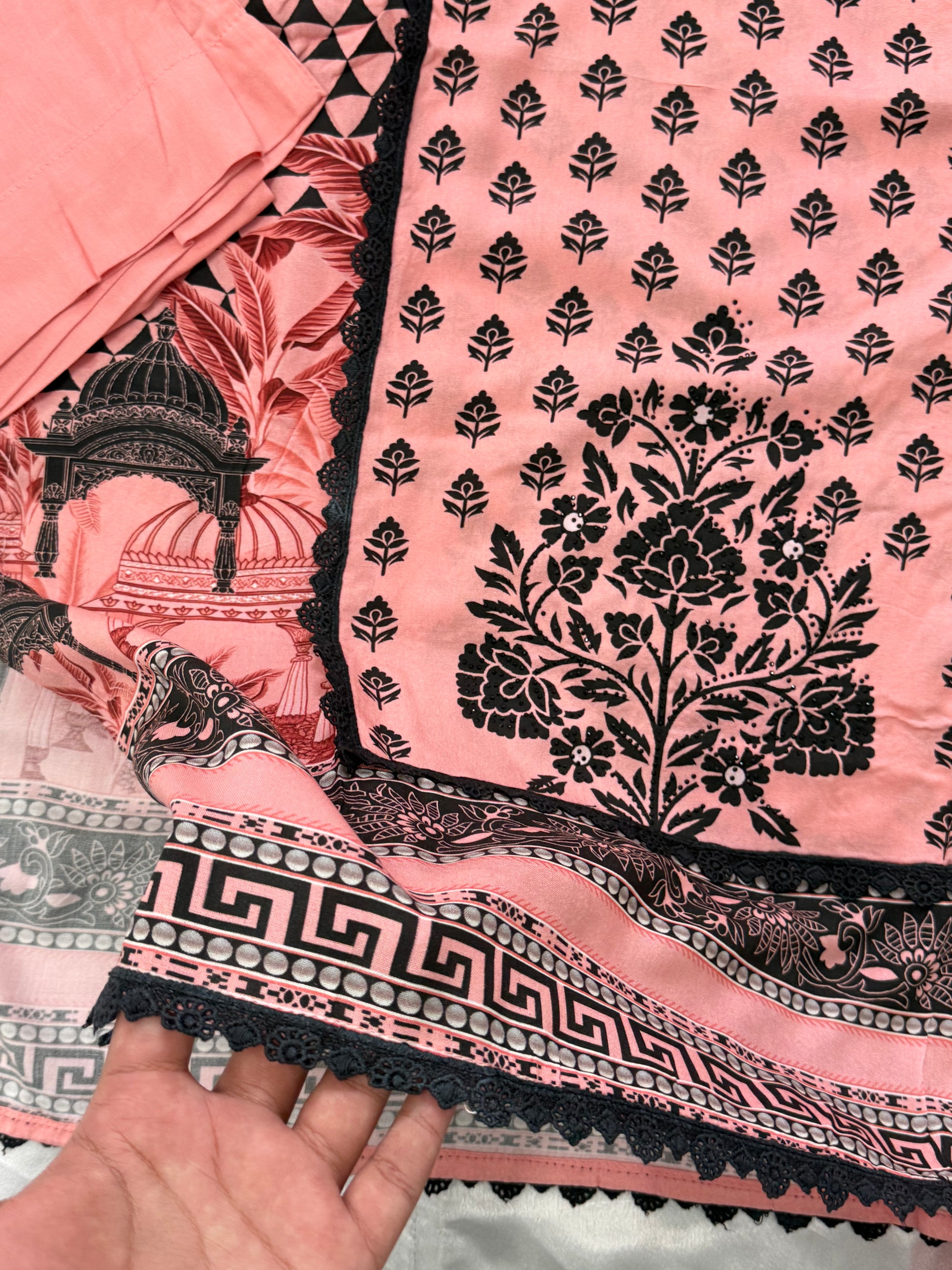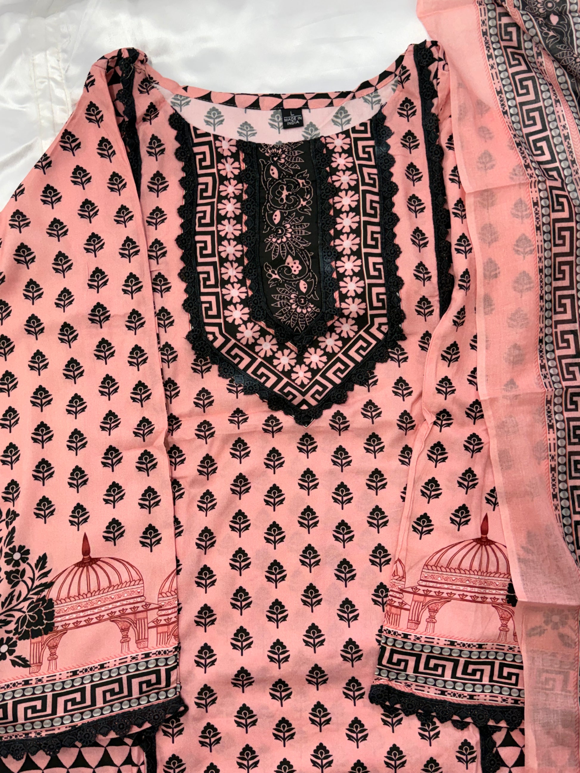 Top Lawn cotton Digital printed....embroidery on Neck...... extra lace detailing on sleeves,neck and front...