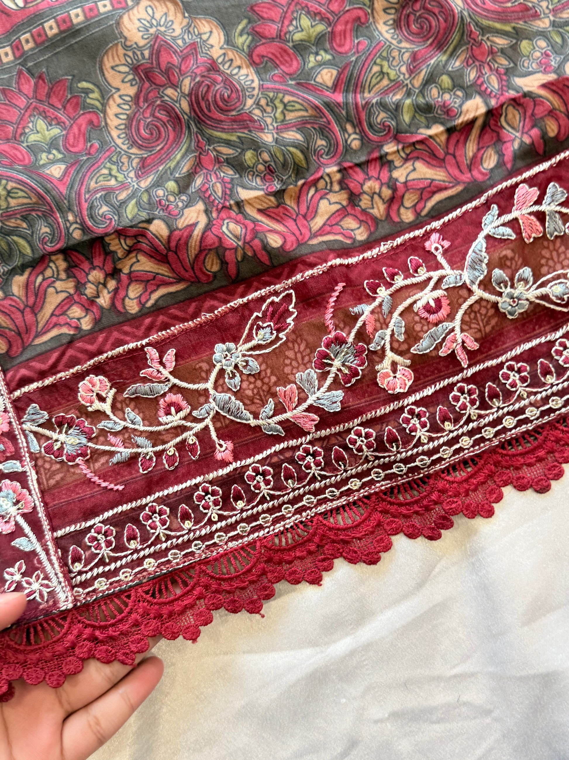 Printed shiffon Dupatta with laces..2.25 meter full width