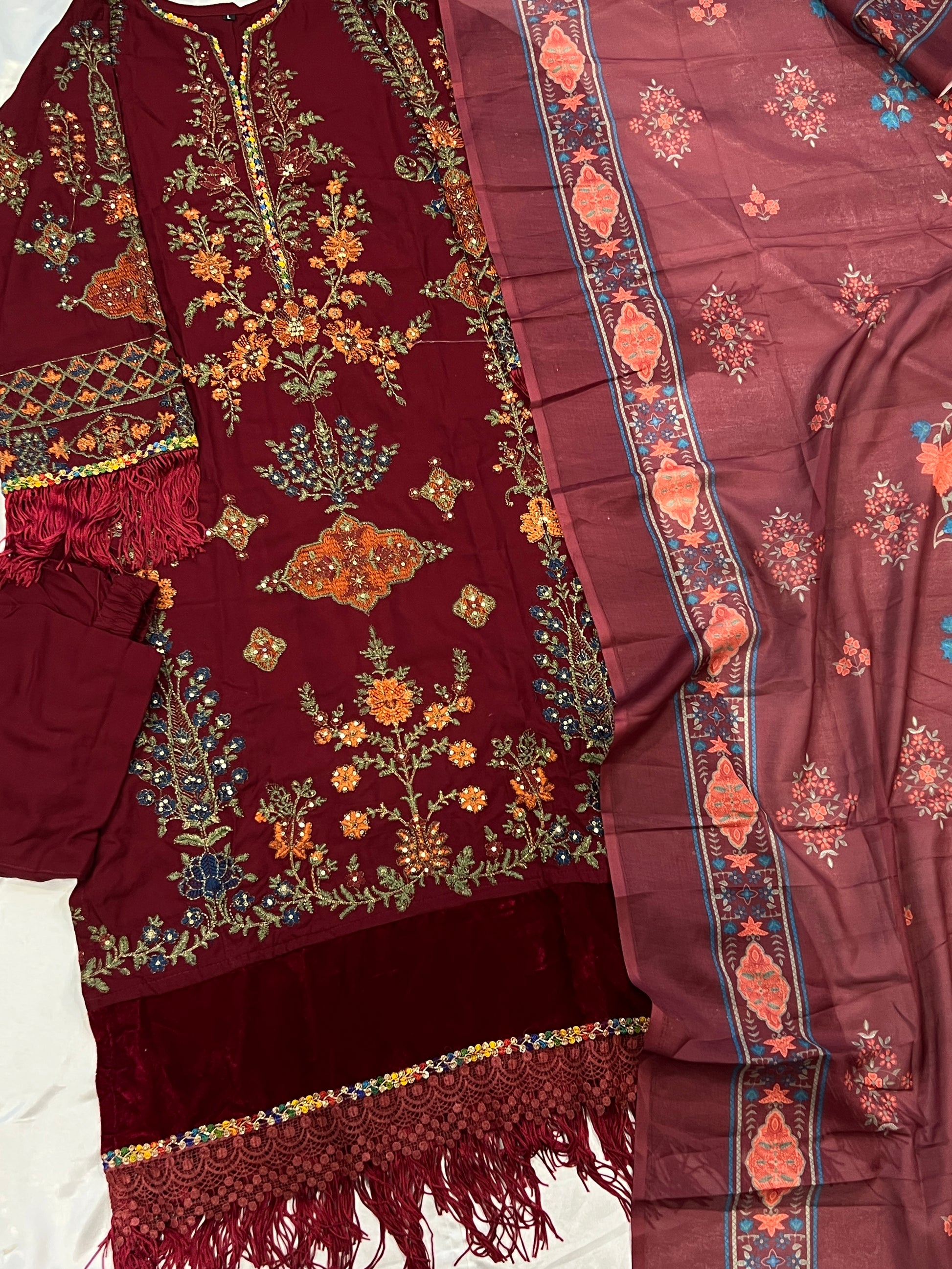 Top Rayon cotton Stitched exactly same as pakistani actress DUREFISHAN with same lace, velvet and heavy embroidery