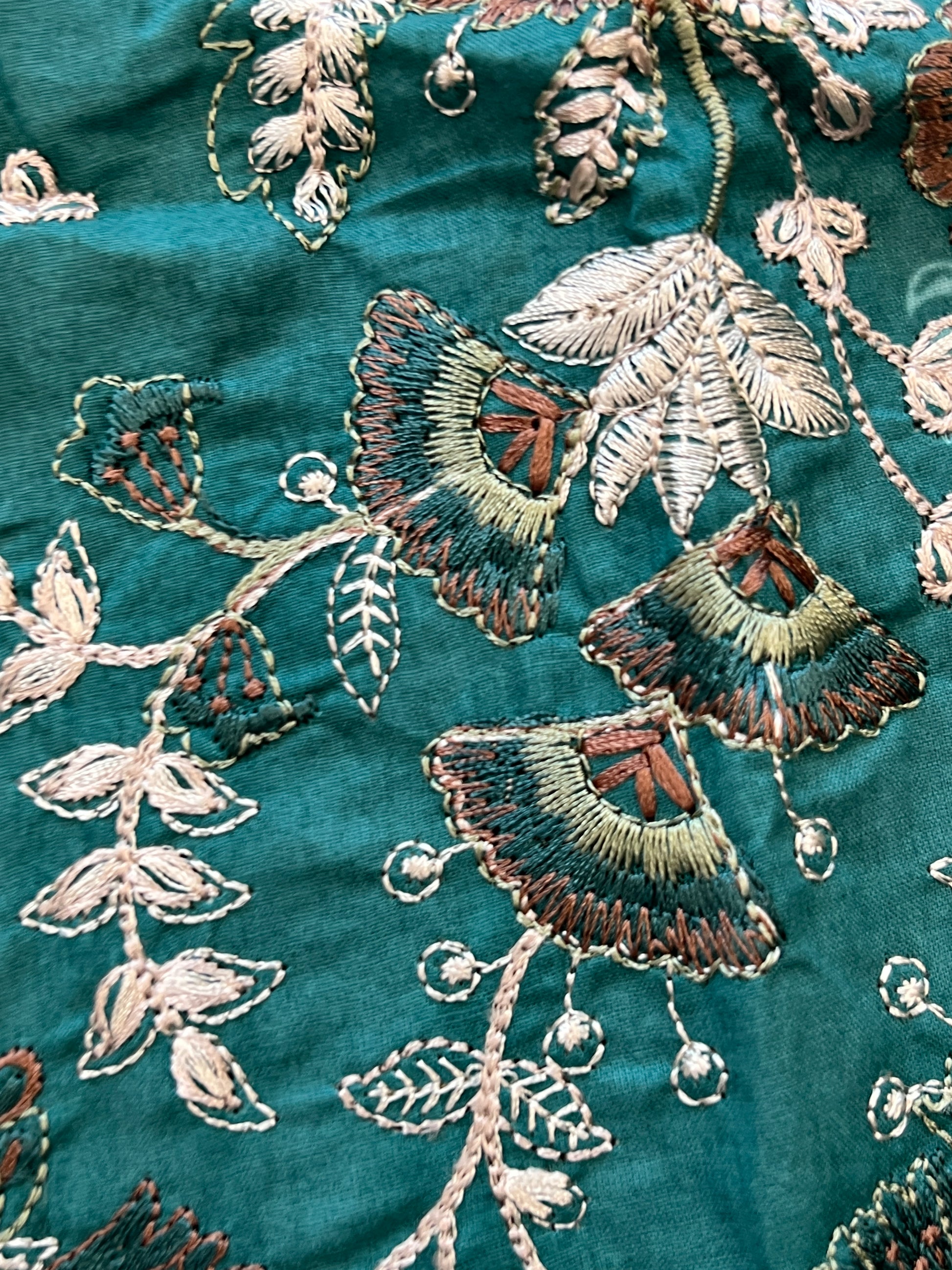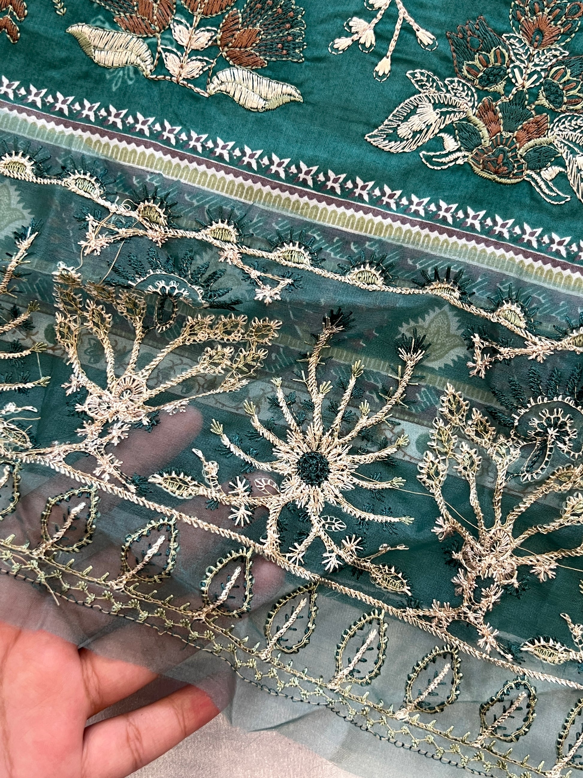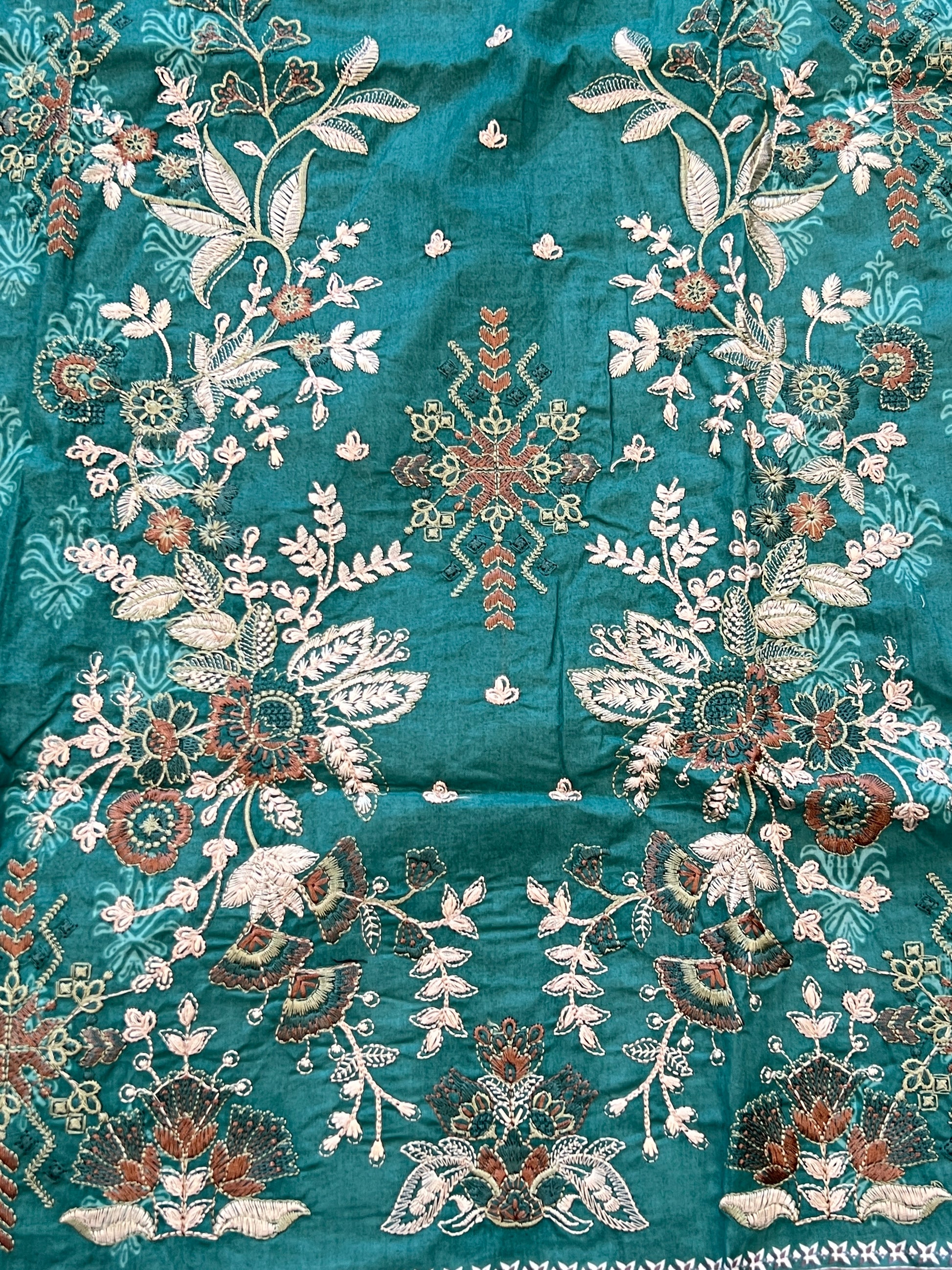 Top cotton un-stitched material with self embroidery ..beautiful patch for daman ...bust 50...lenght 45 extra material given for selves