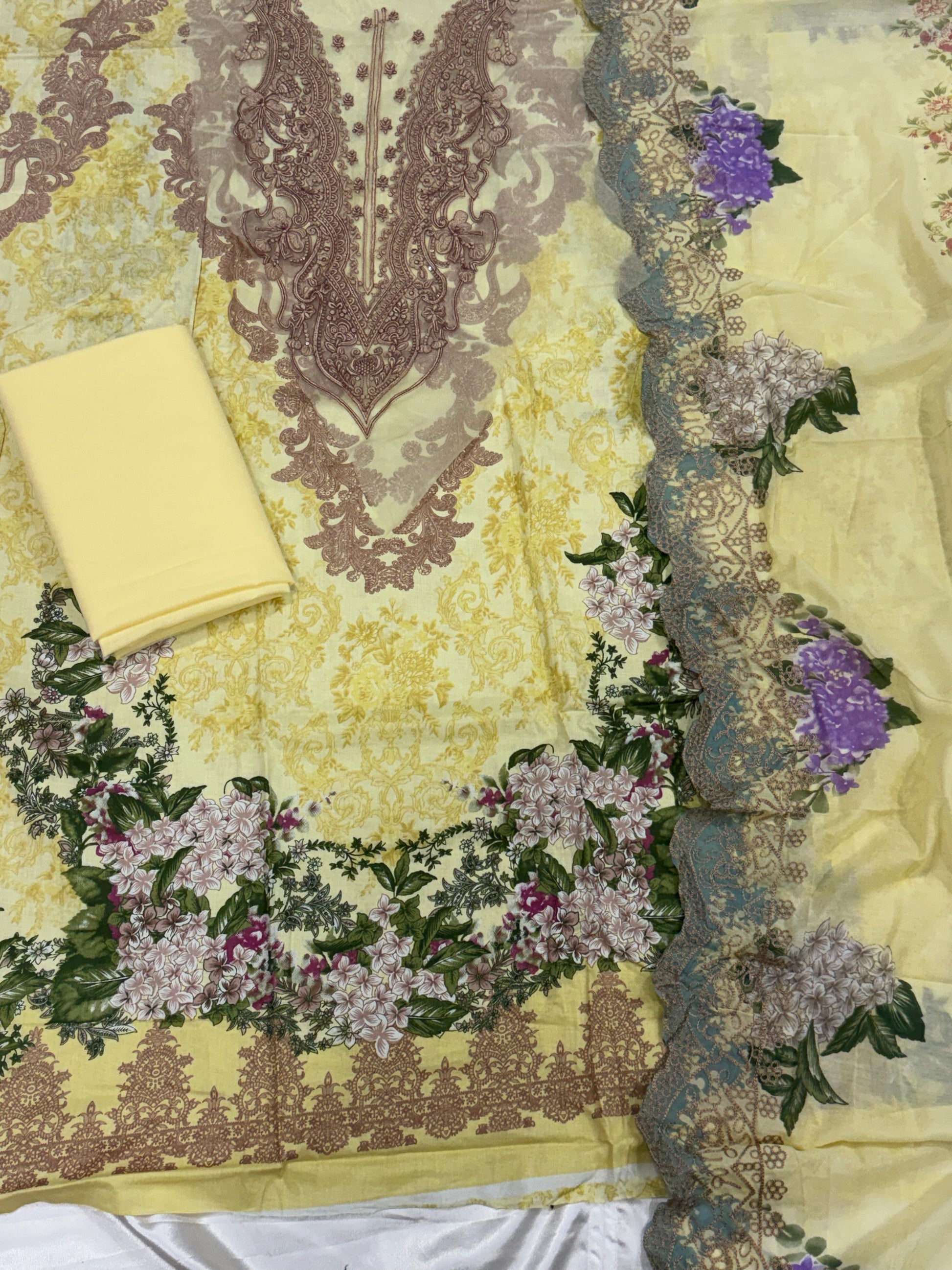Top Lawn cotton Digital printed... beautiful embroidery patch for neck ..lenght 48 Inch..Bust 58 can be stitched