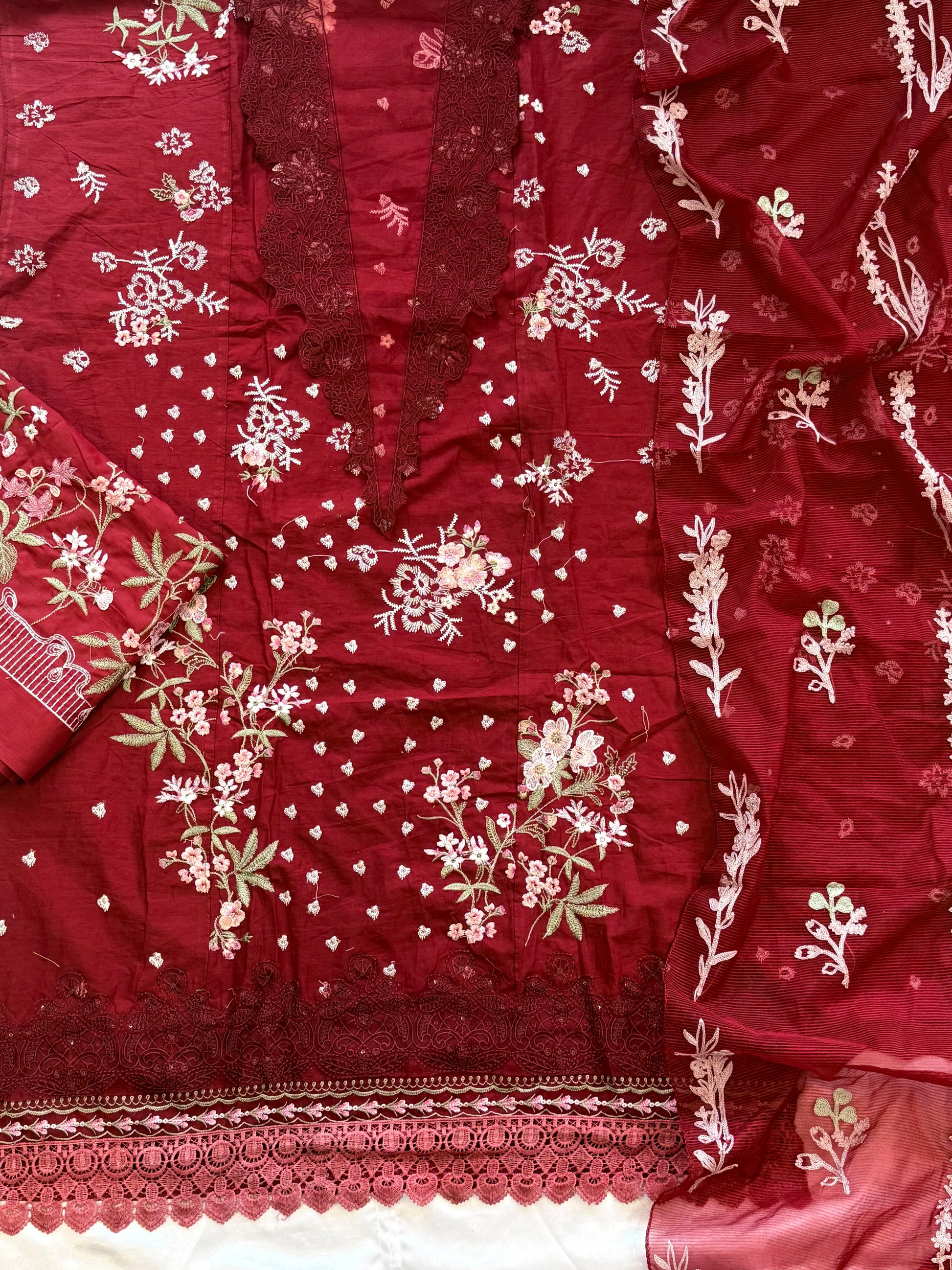 Top pure cotton designer .... beautiful self embroidery on front... ... Extra embroidery patch on neck and front top.....length 45 inches...