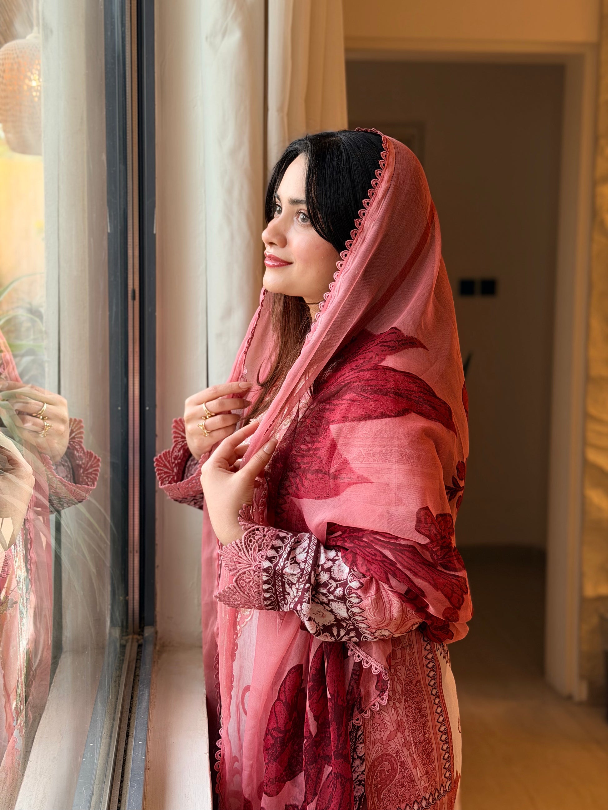 Chiffon Printed Dupatta with four side laces..2.25 meter full width