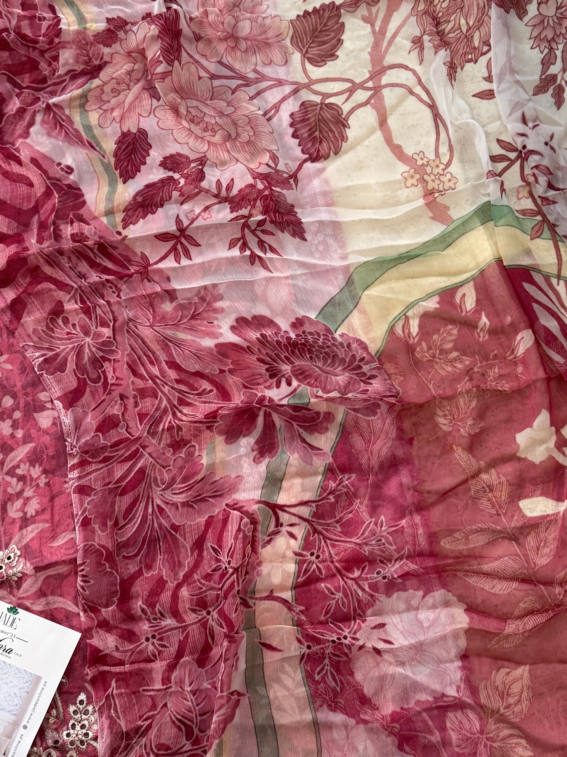 Dupatta soft pure shiffon Digital print with 2 side embroidery . 2.25 meter