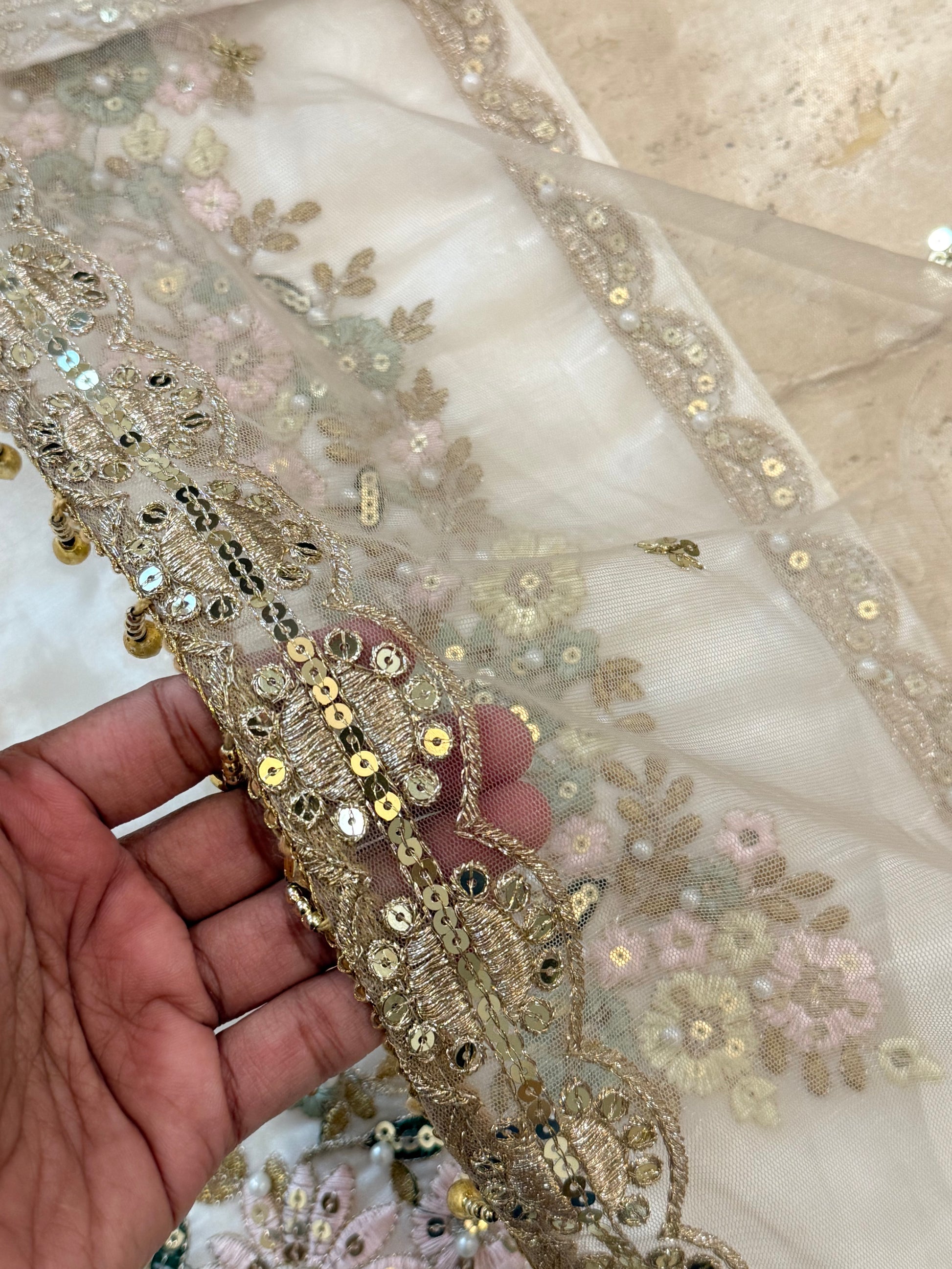 Dupatta Net with beautiful embroidery boarder and lace
