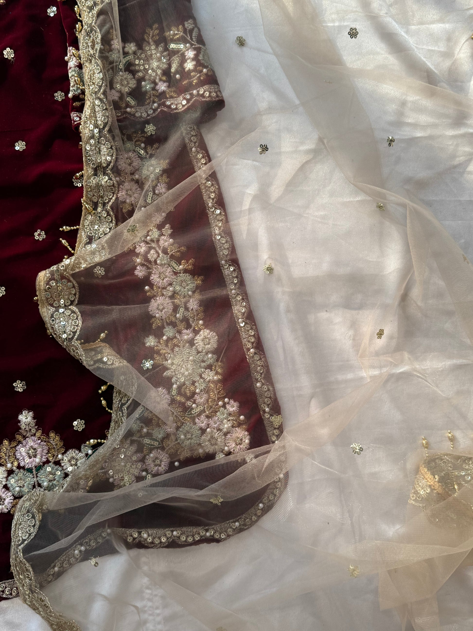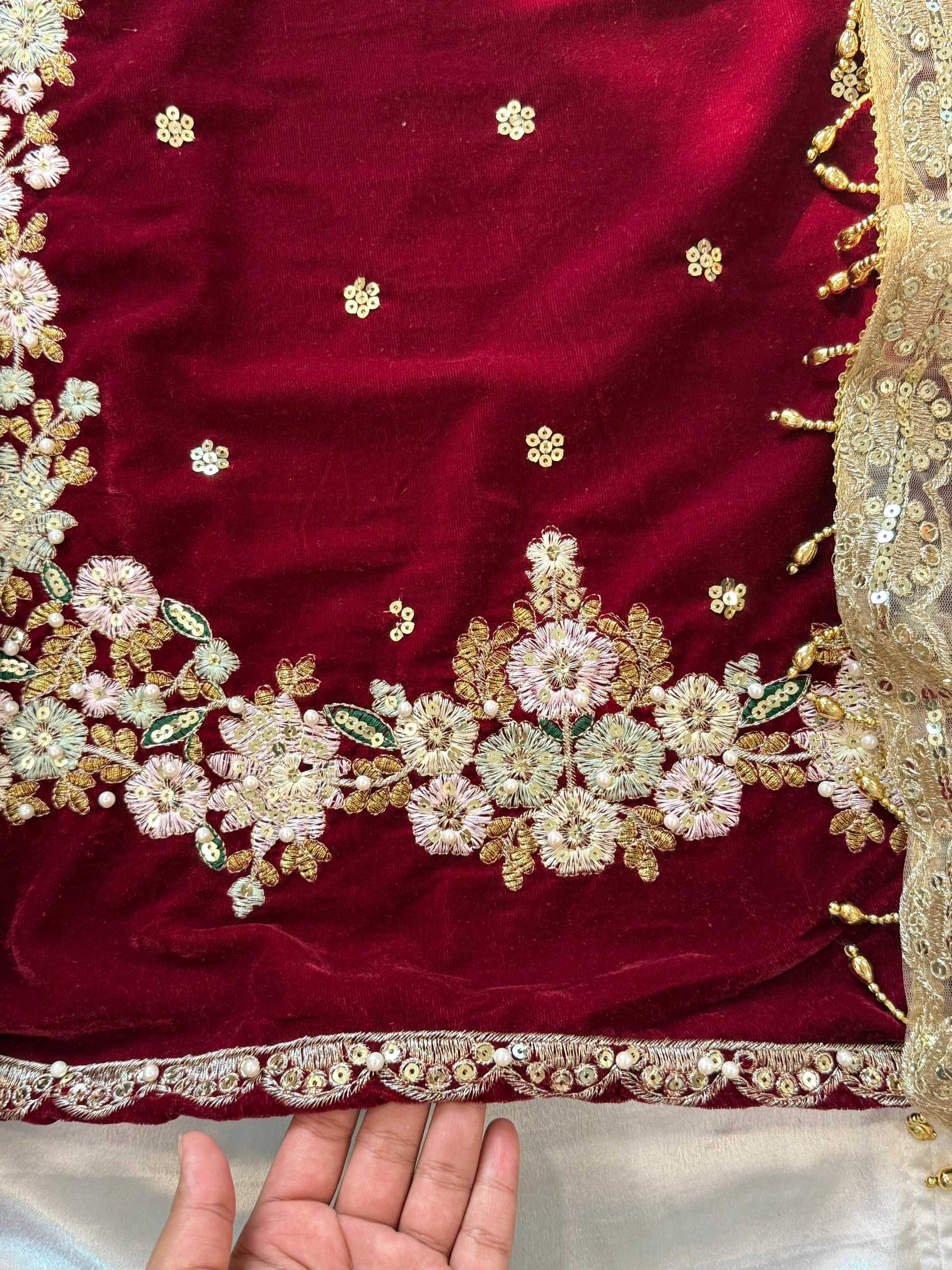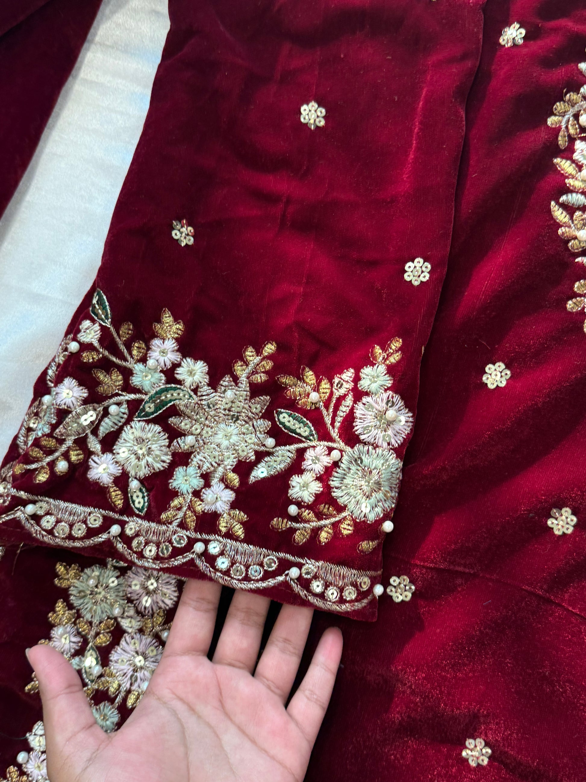 JIMMY CHOO MAROON VELVET READYMADE SUIT Q