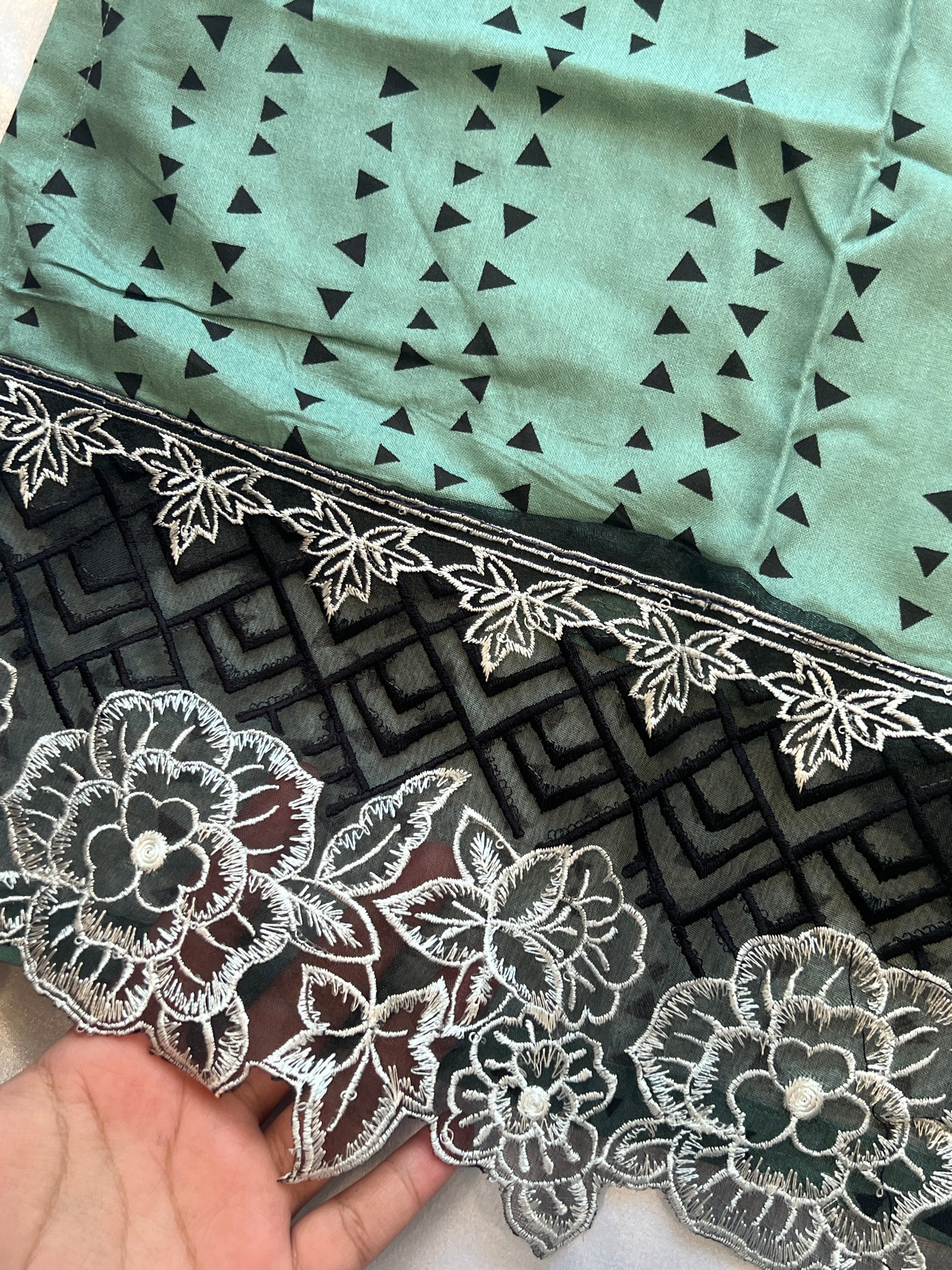 Sleeves printed with embroidery... length..22 inches