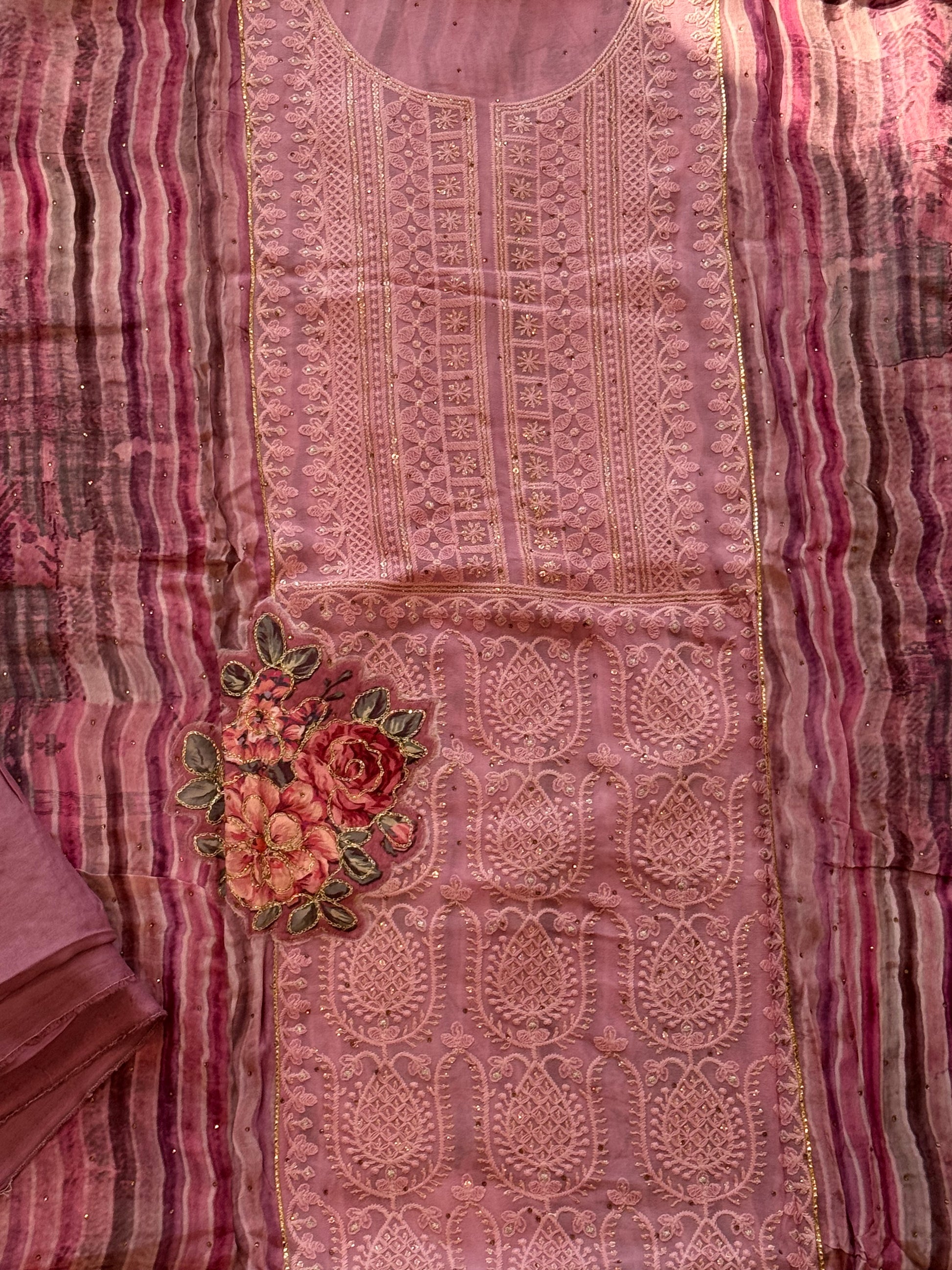 Top pure Crepe Digital printed.. Heavy embroidery panel with beautiful velvet patch work on front ...length 45 Inch..Bust 62 can be stitched....extra material for sleeves