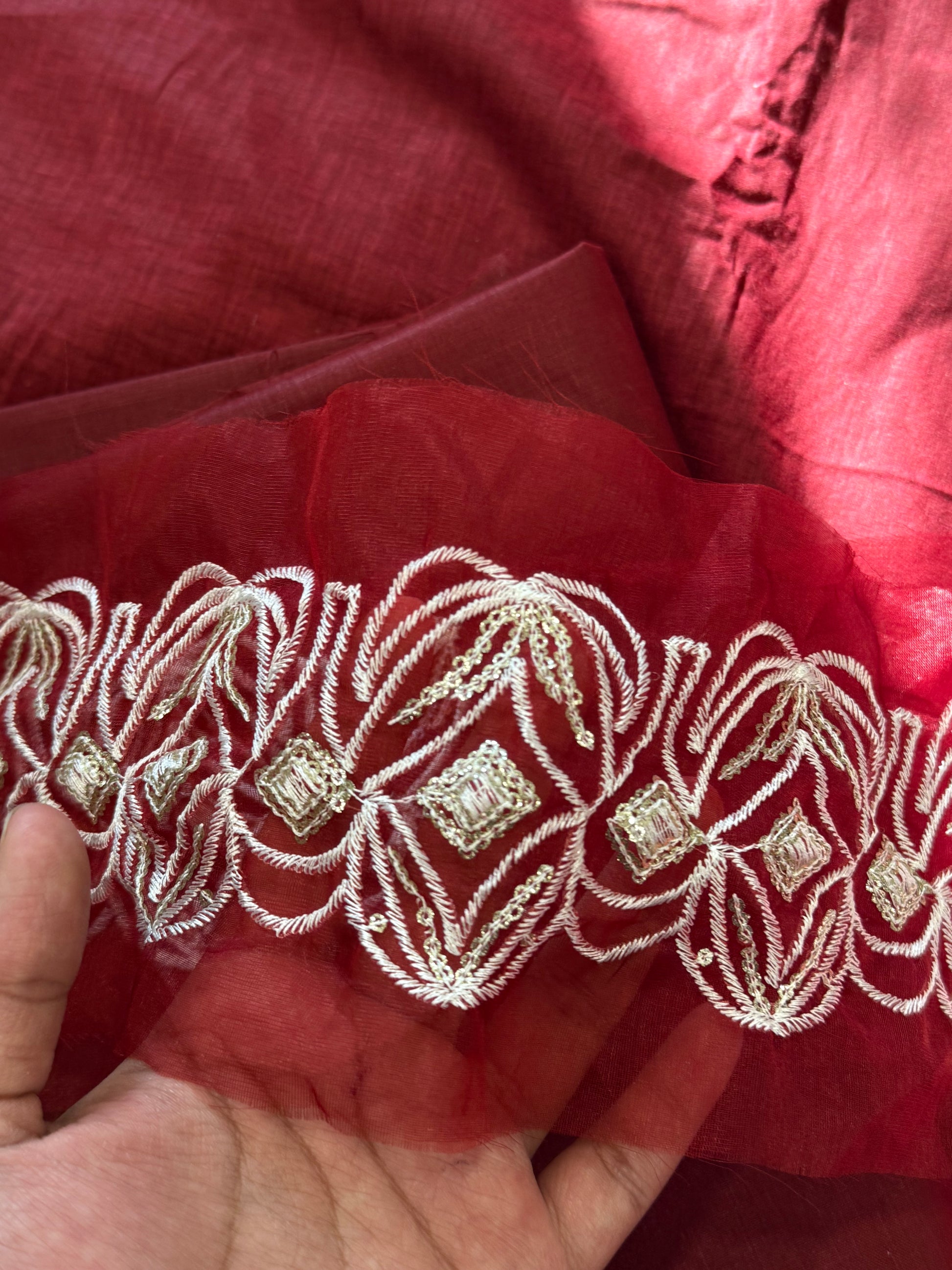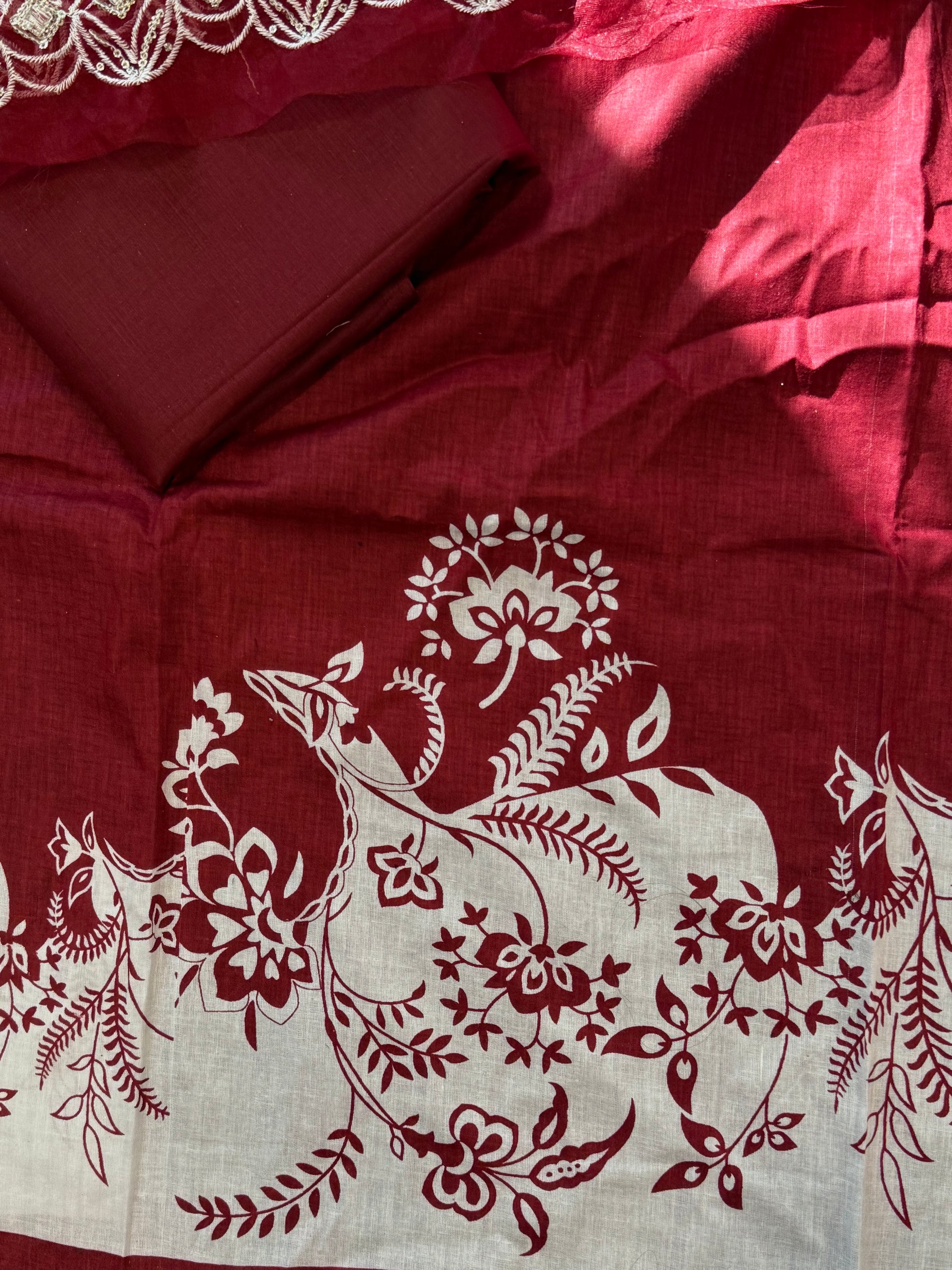 Top printed cotton designer un-stitched material with beautiful embroidery patches for neck and sleeves...