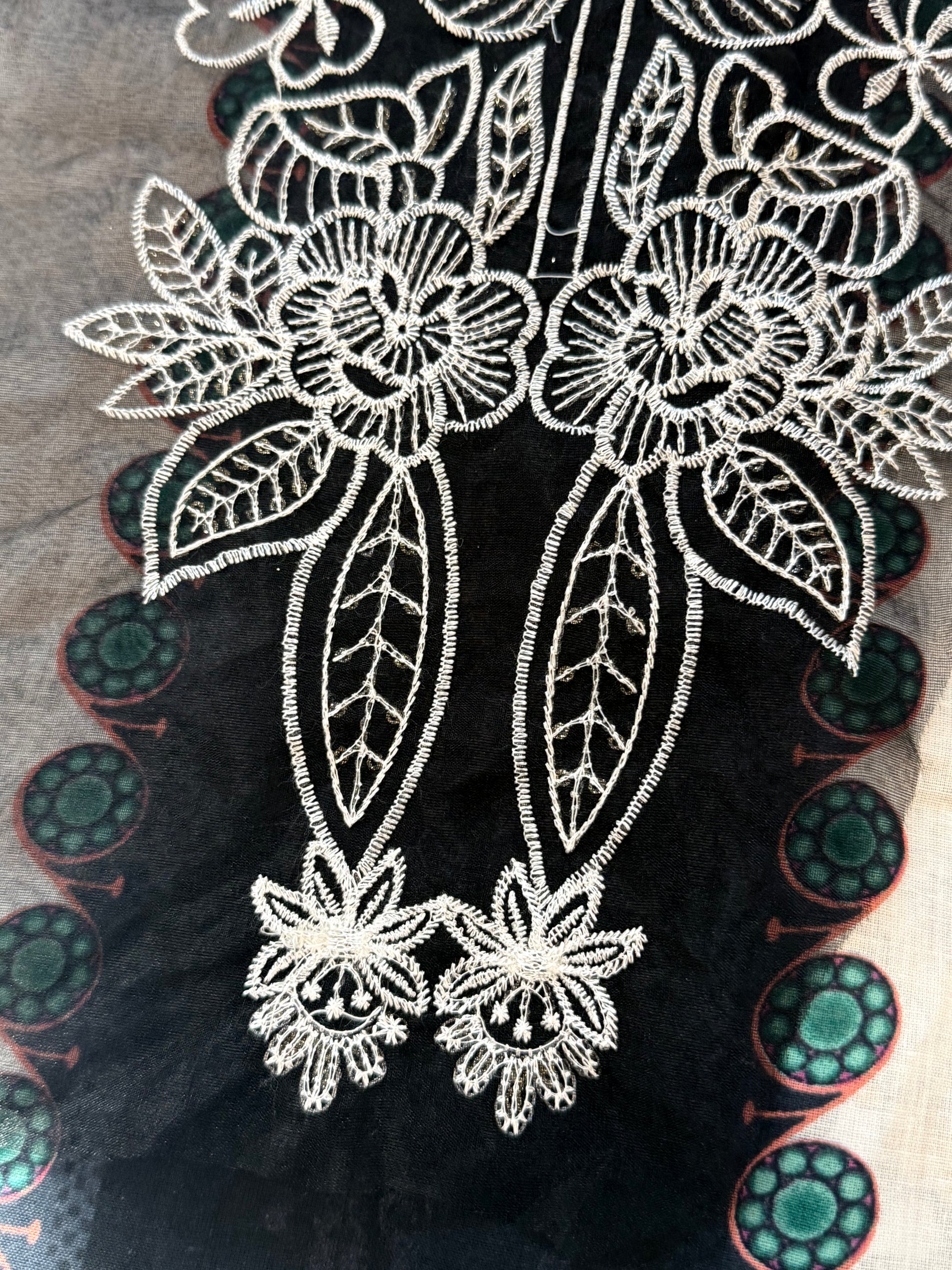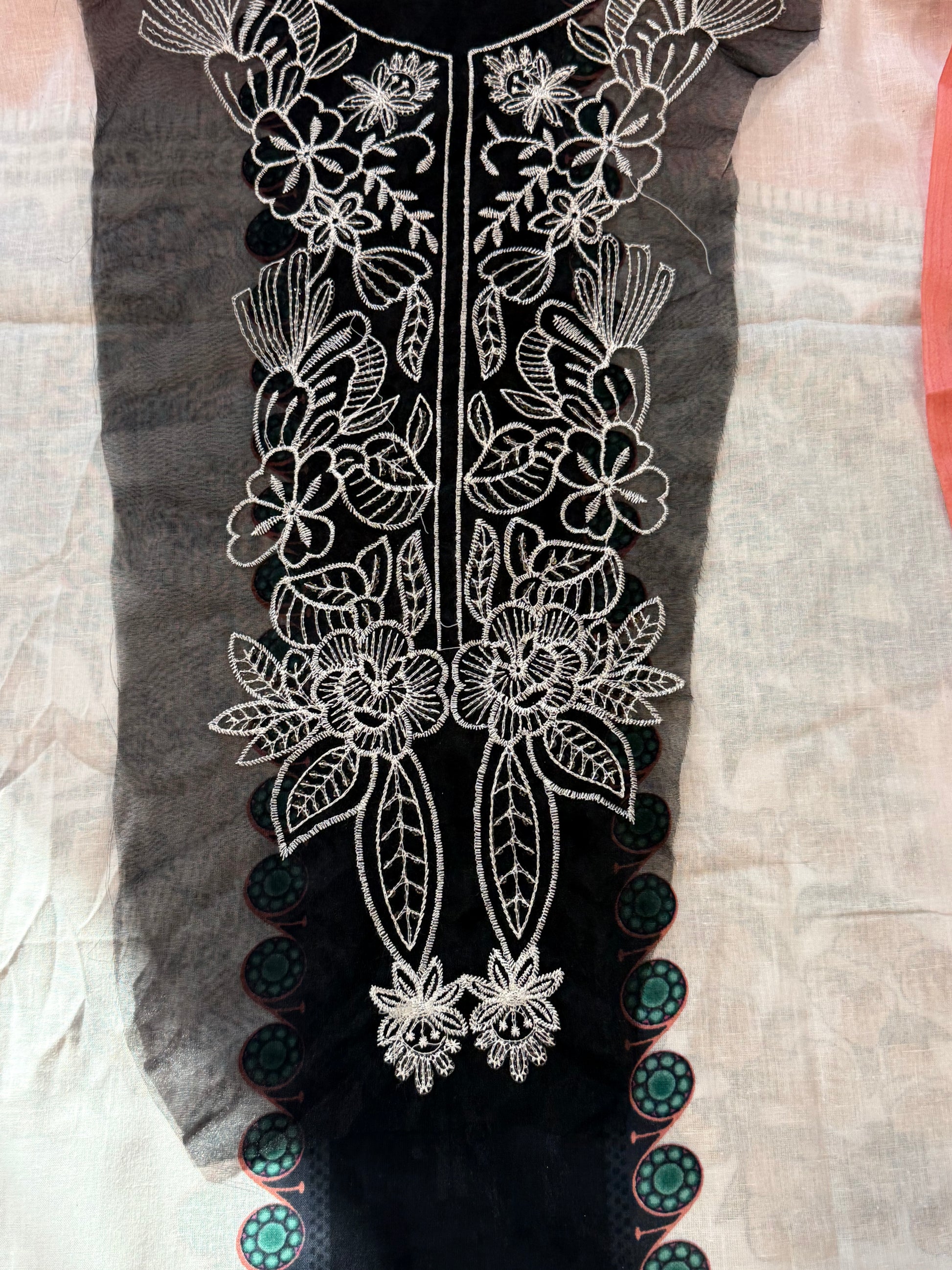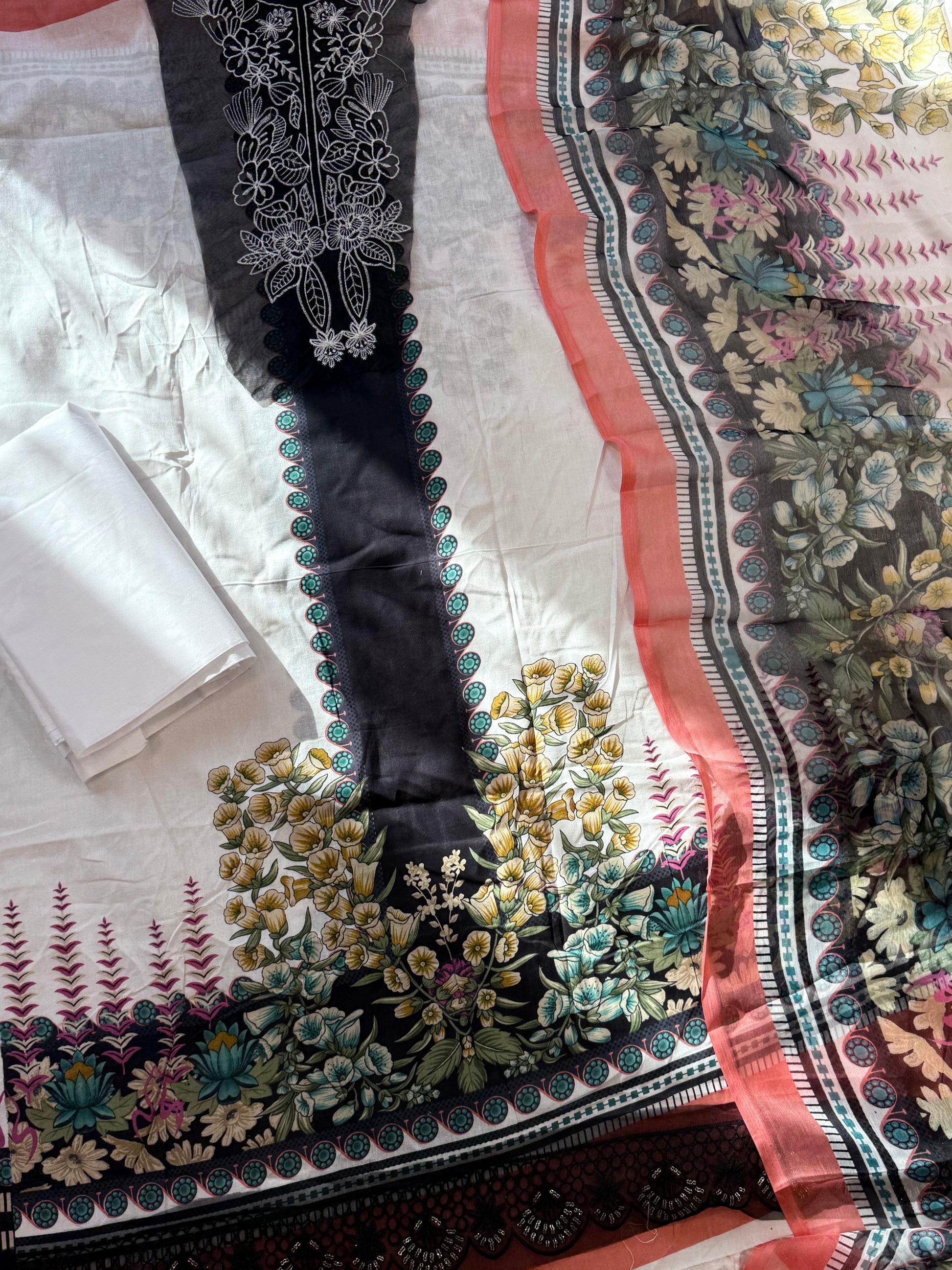Top printed cotton designer un-stitched material with beautiful embroidery patches for neck and sleeves...