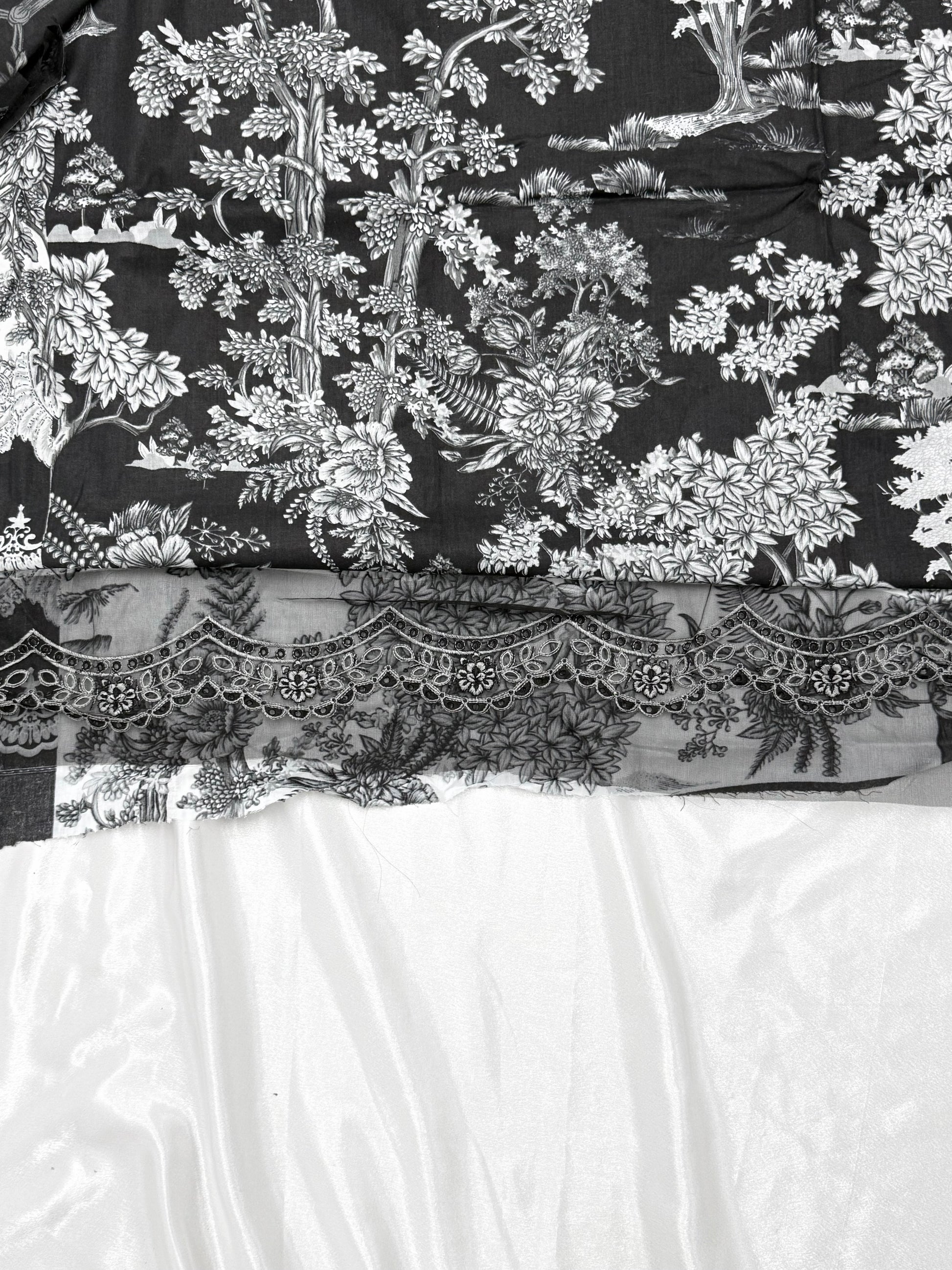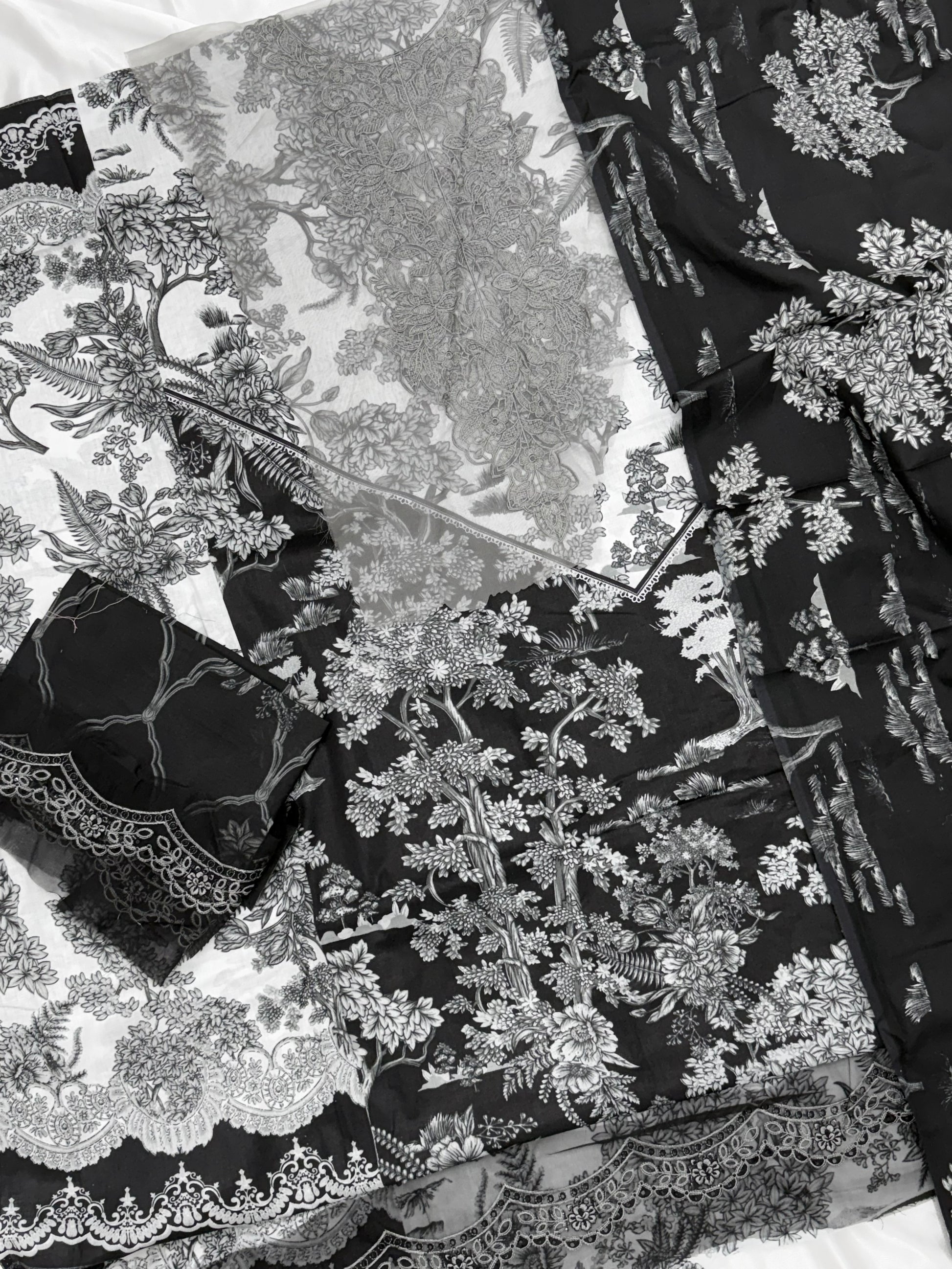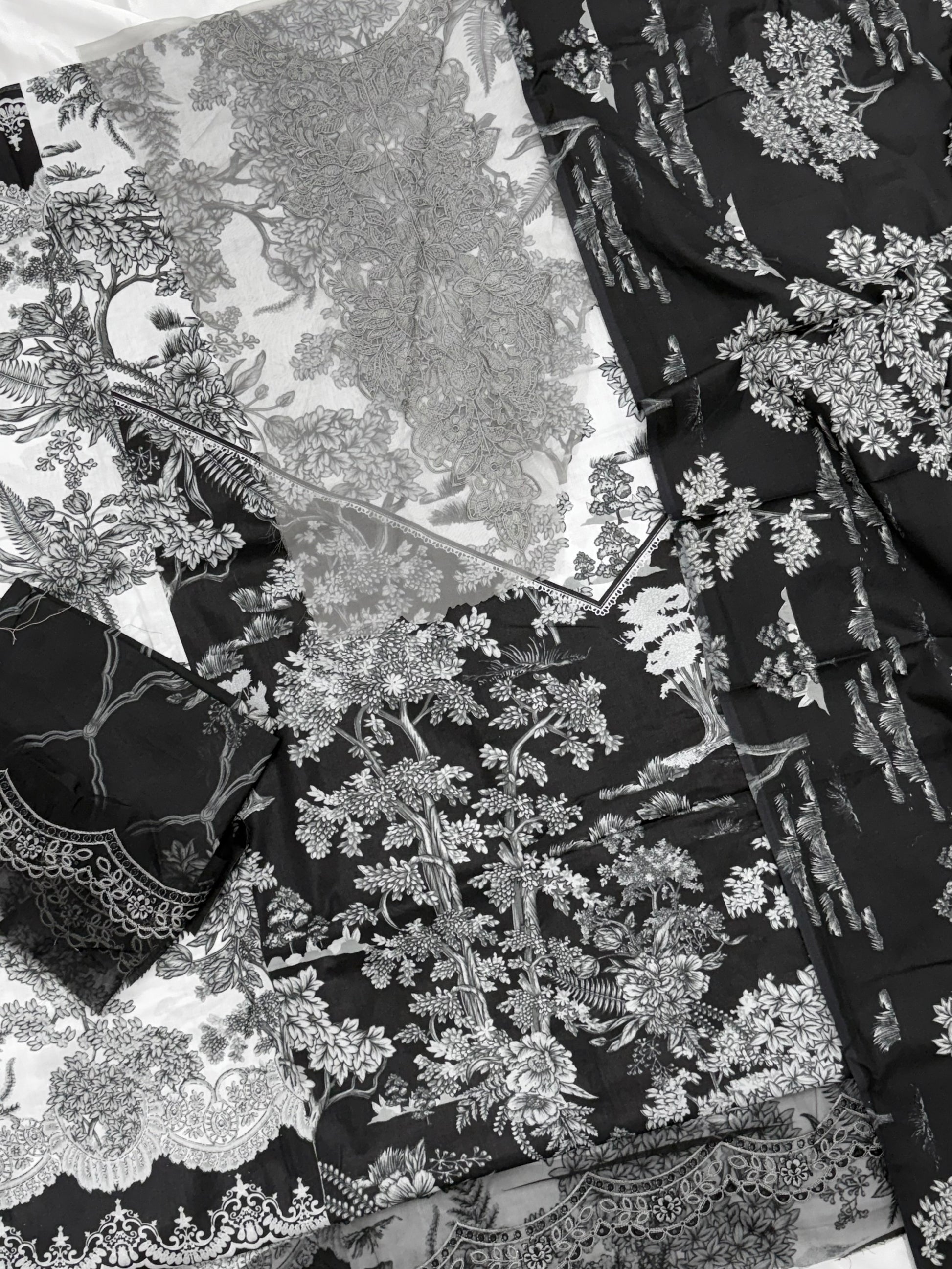 Top printed cotton designer un-stitched material with beautiful embroidery patches for neck and sleeves...