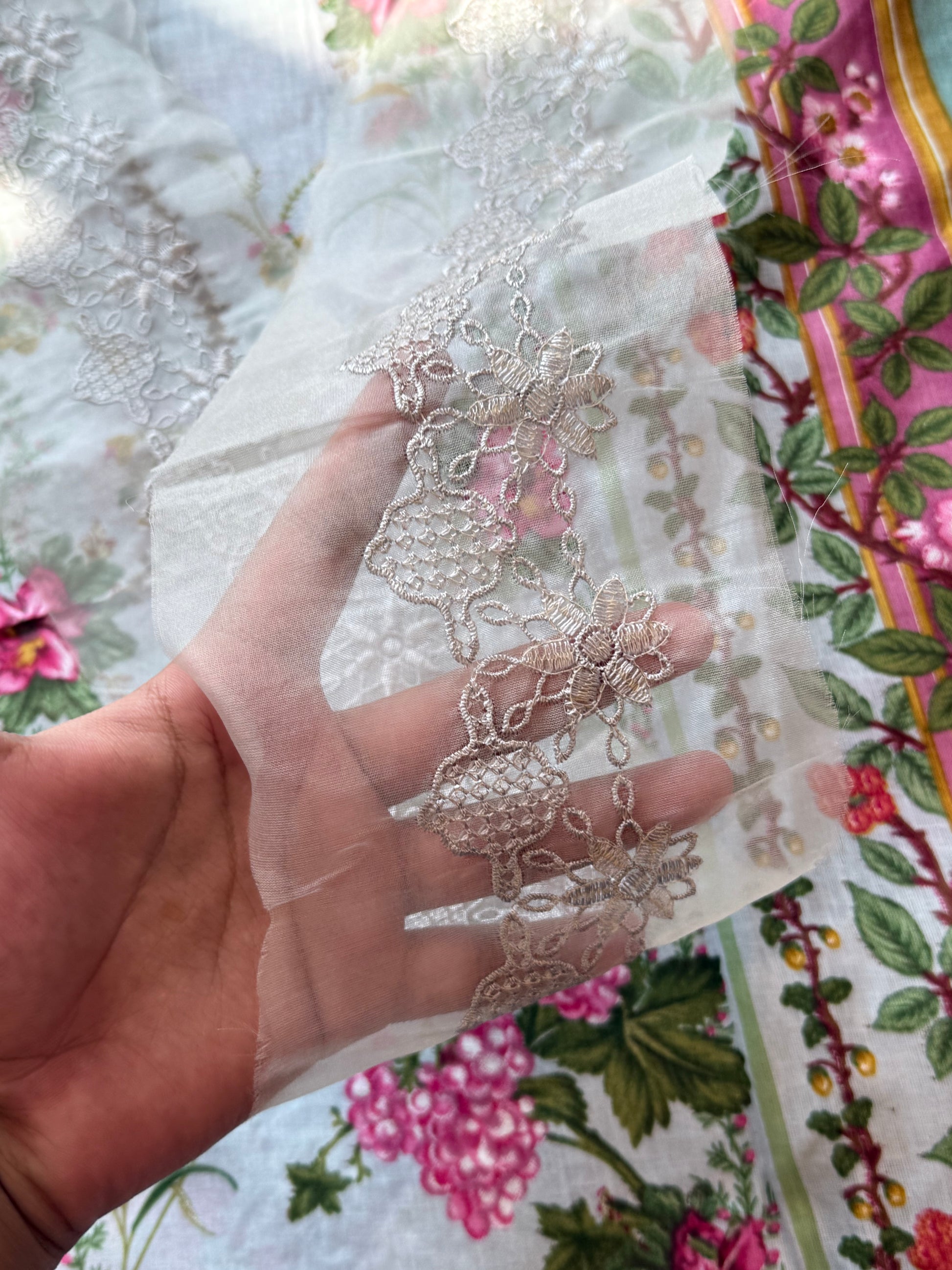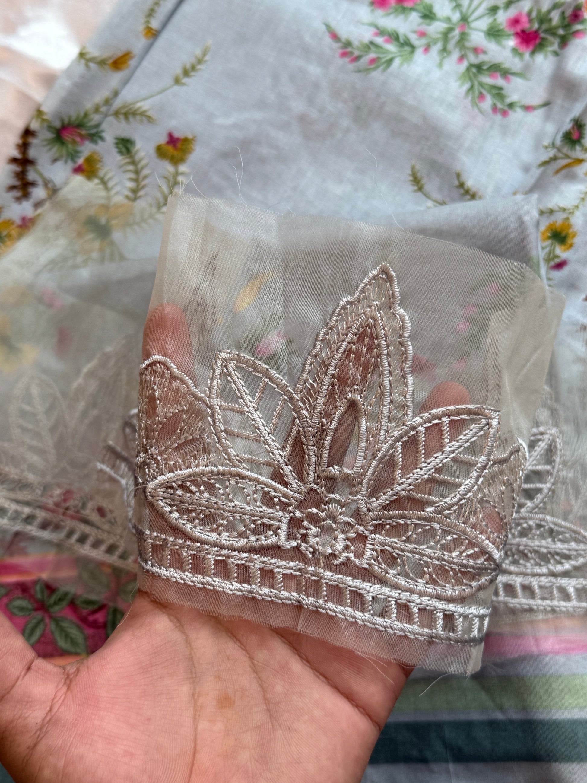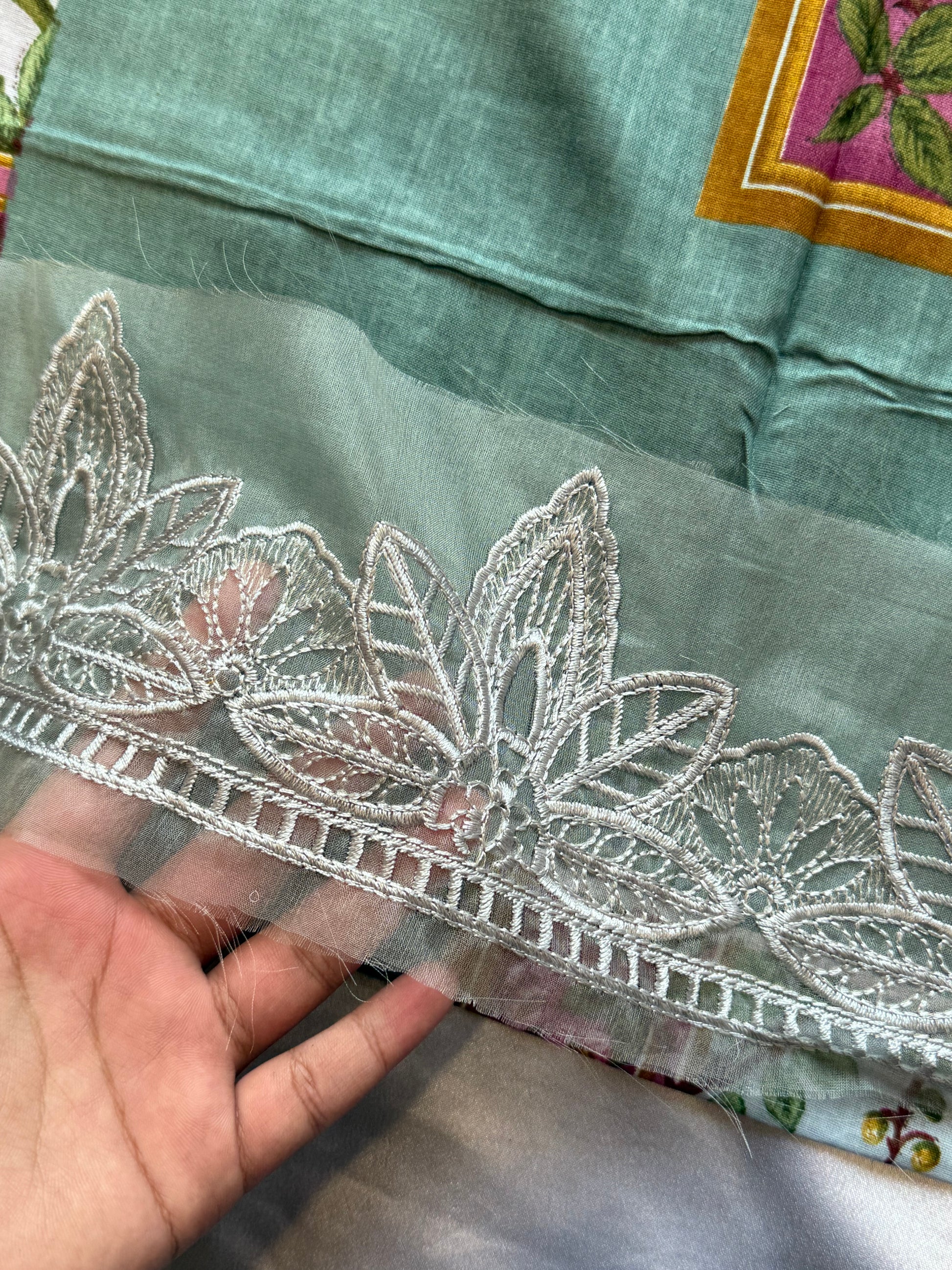 Top printed cotton designer un-stitched material with beautiful embroidery patches for neck and sleeves...