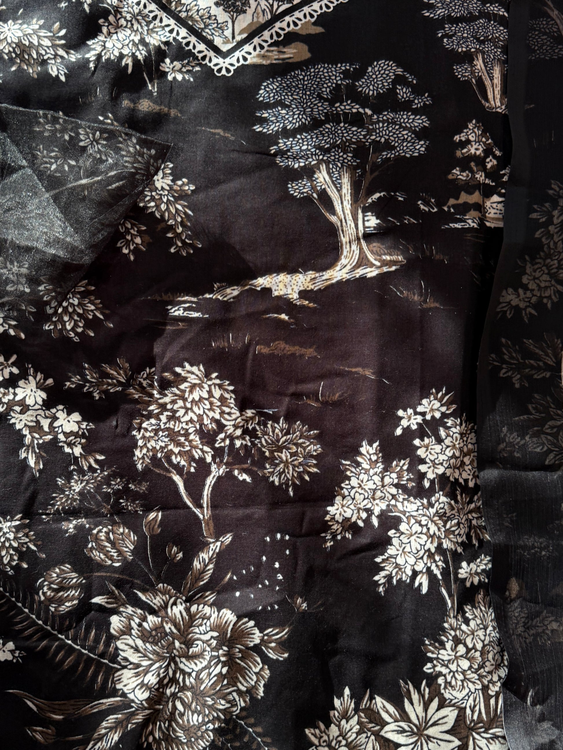 Top printed cotton designer un-stitched material with beautiful embroidery patches for neck and sleeves...