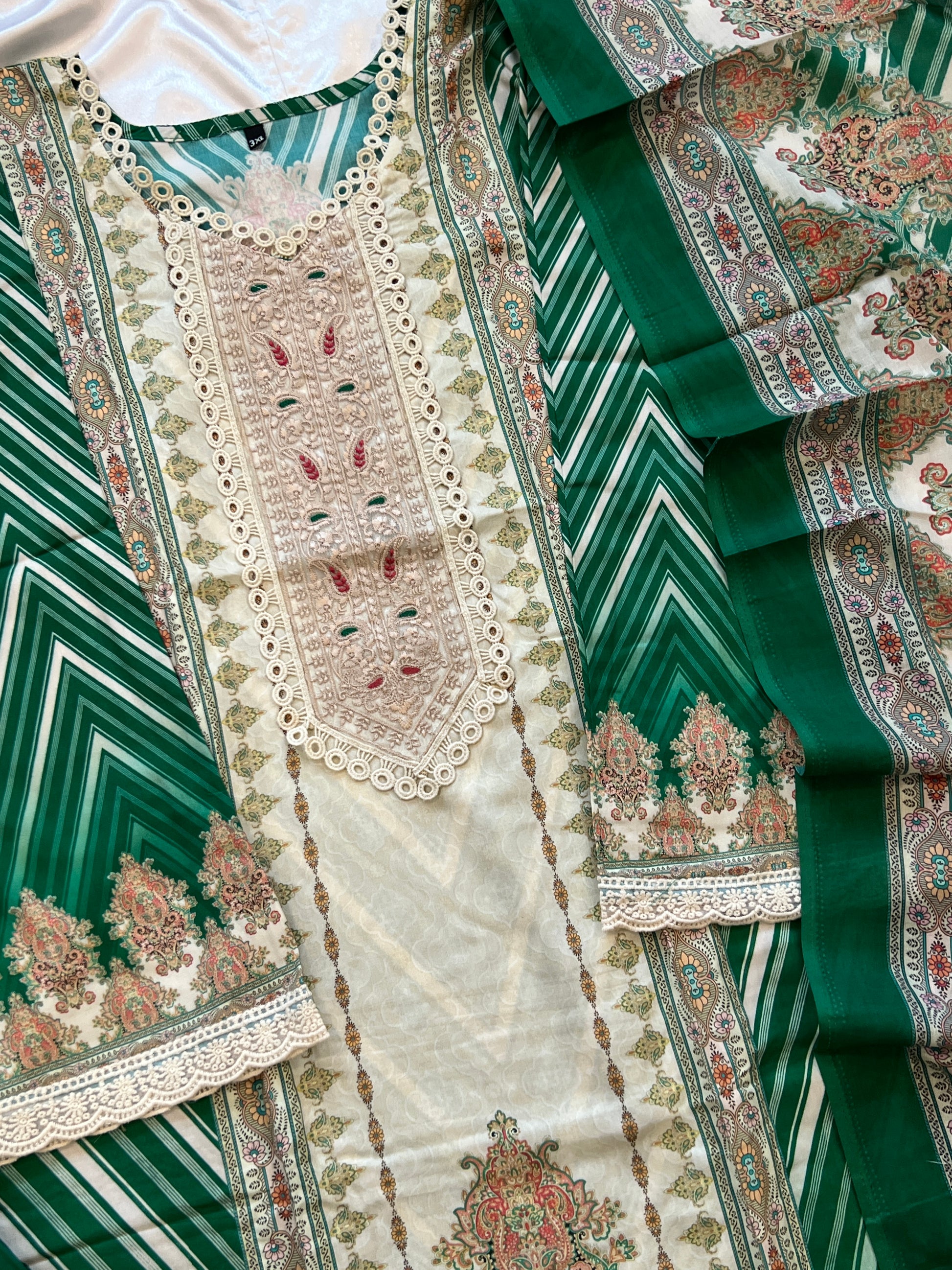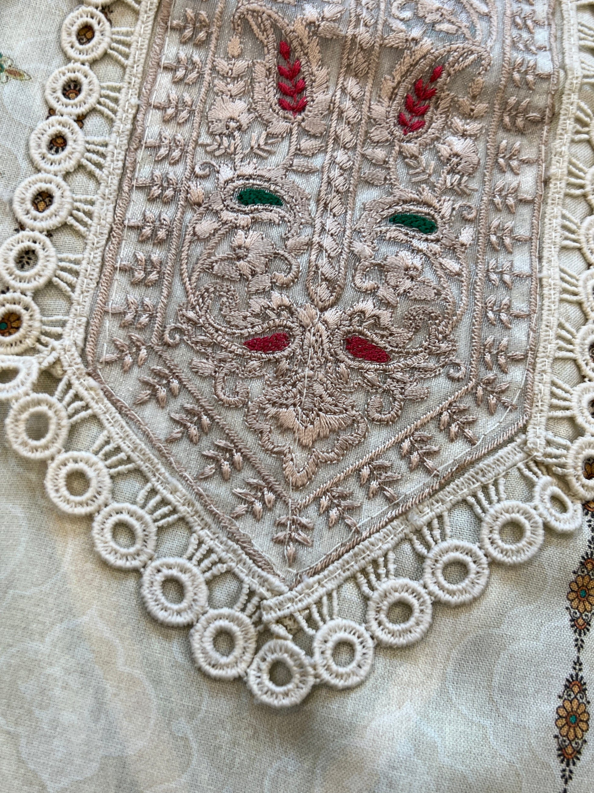 Top cotton Mill printed... beautiful embroidery on neck with beads…beautiful lace on Daman and sleeves ...Top length 48 Inches