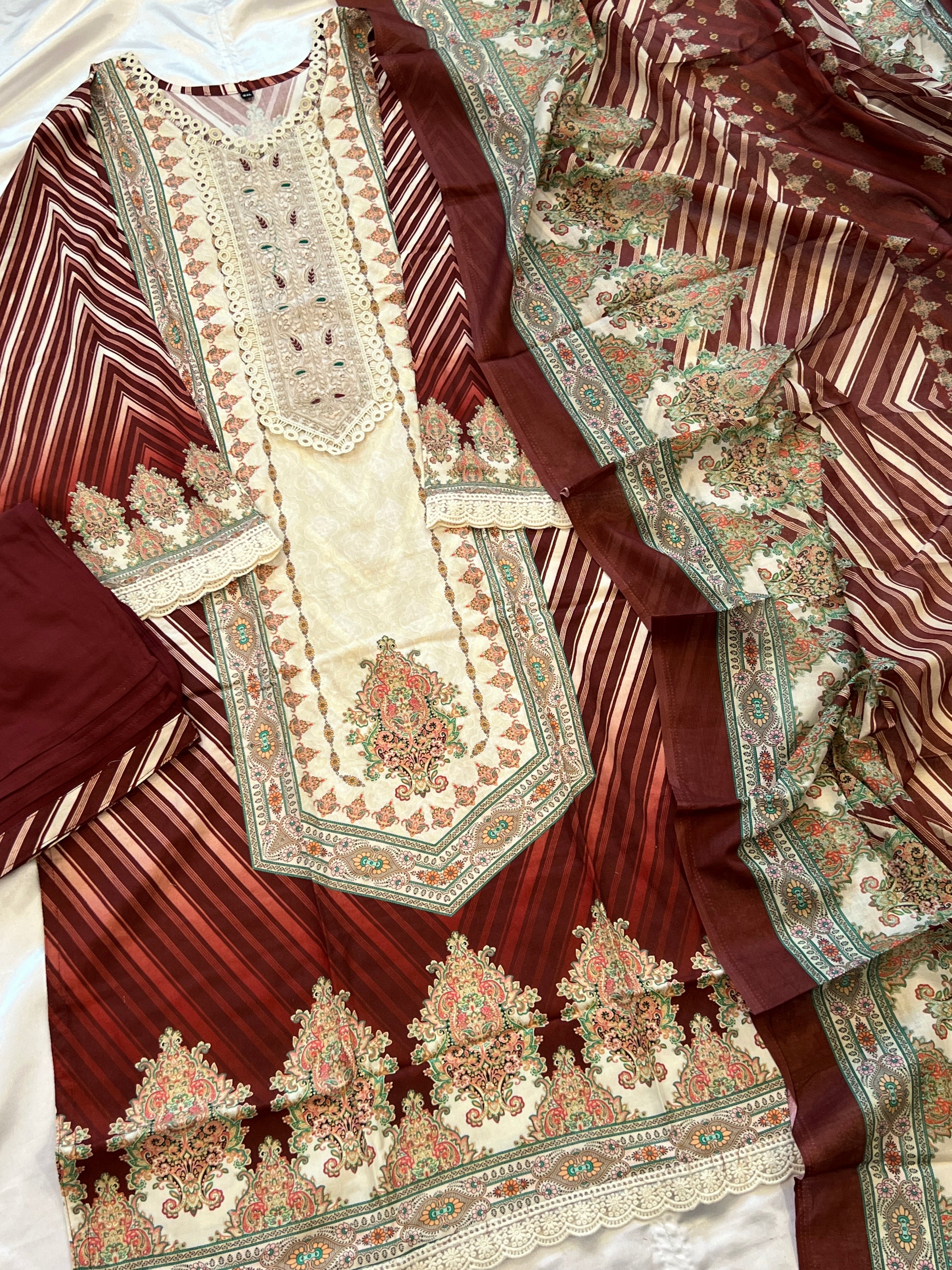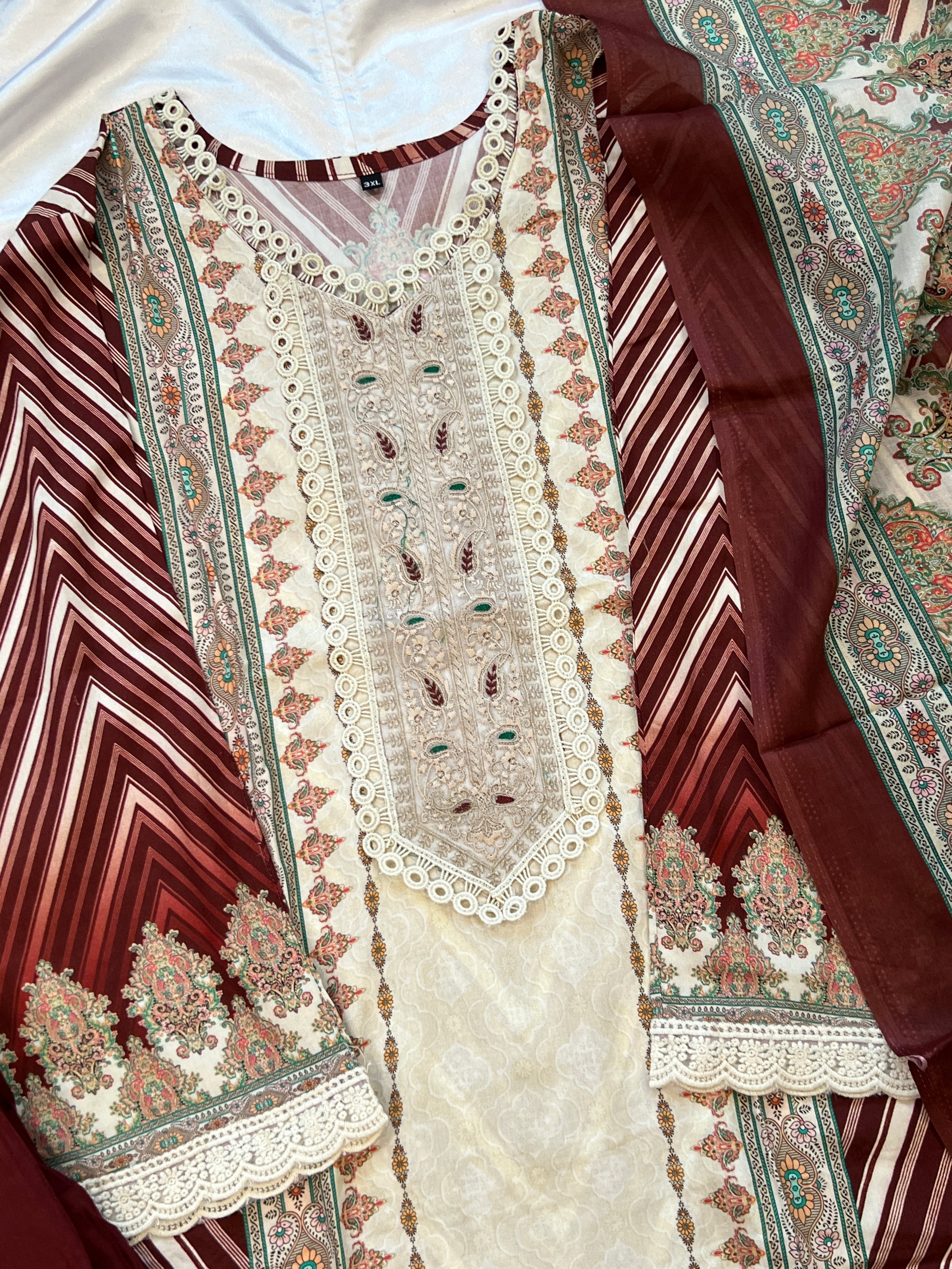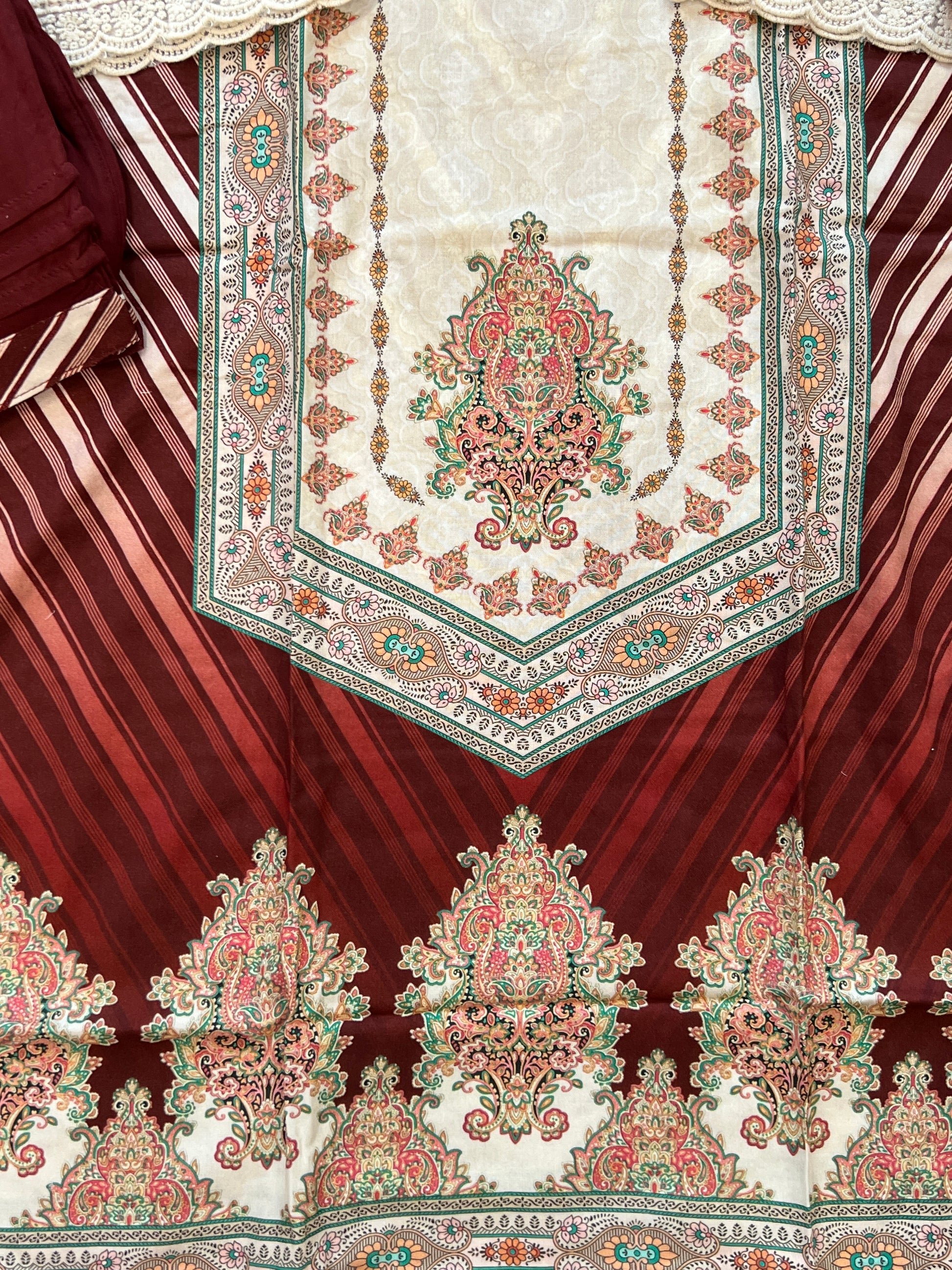 Top cotton Mill printed... beautiful embroidery on neck with beads…beautiful lace on Daman and sleeves ...Top length 48 Inches