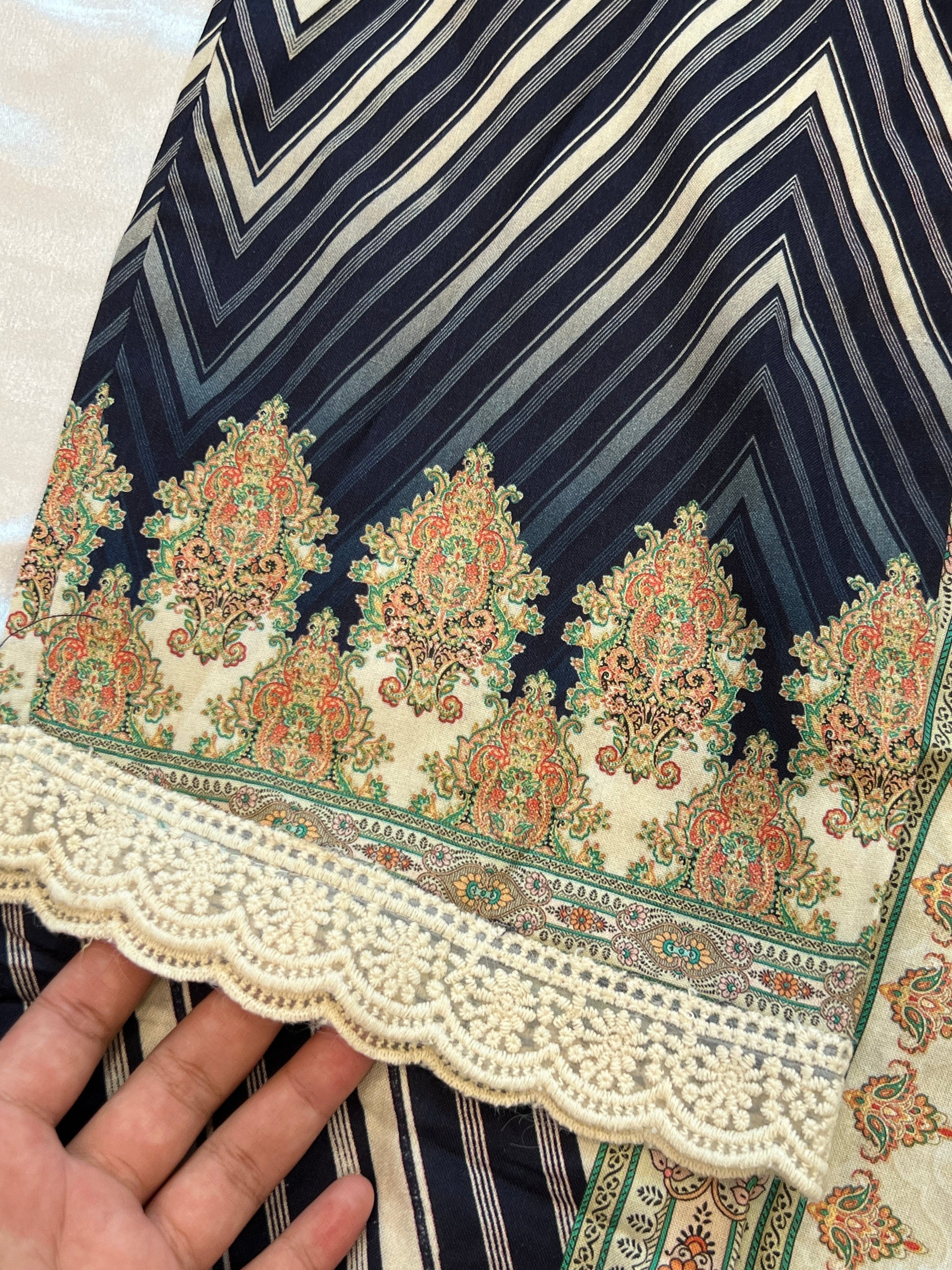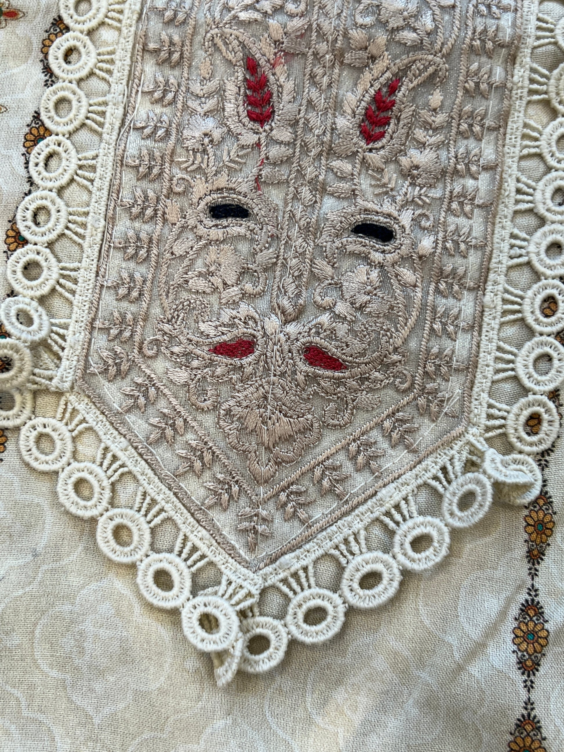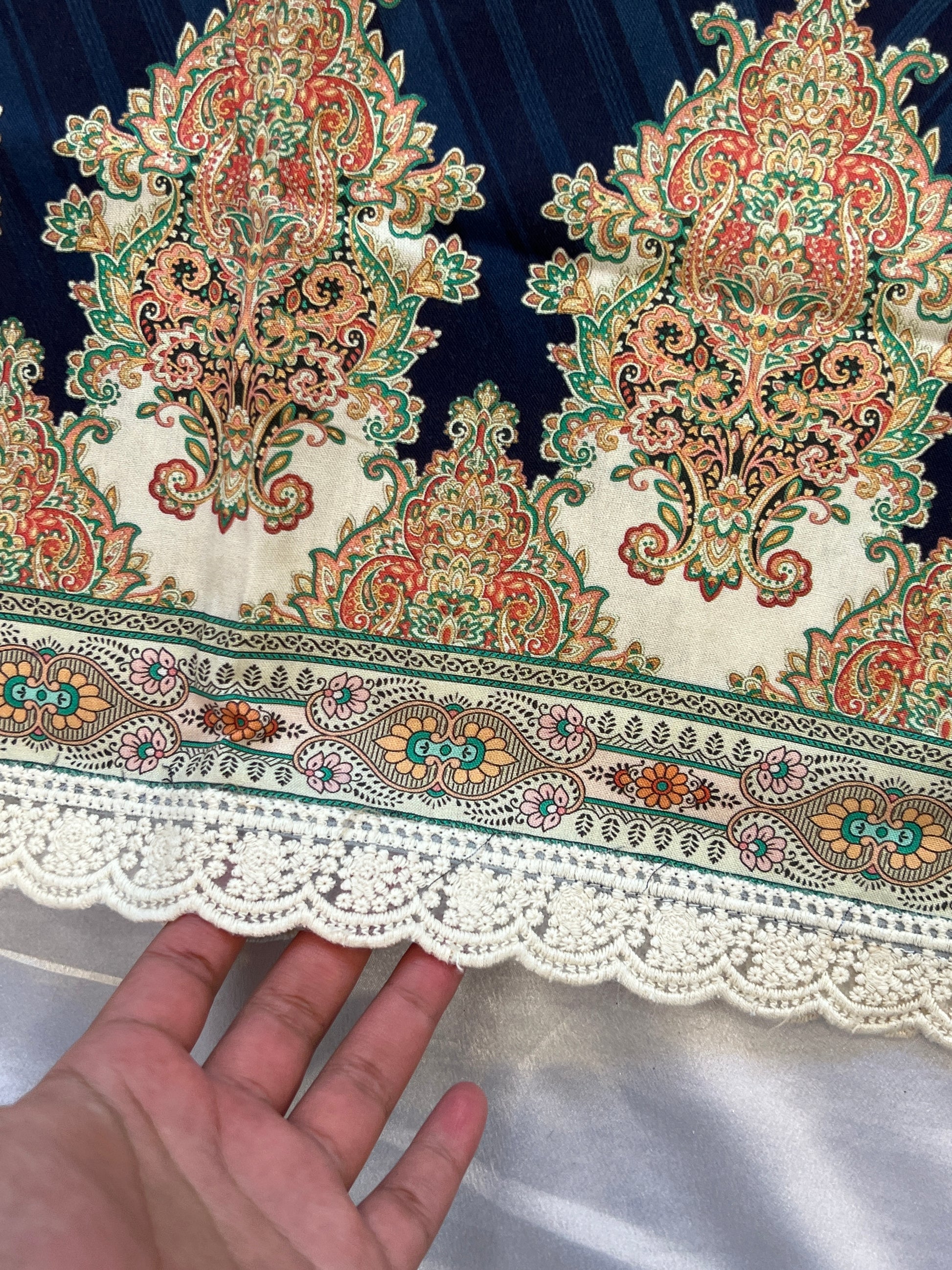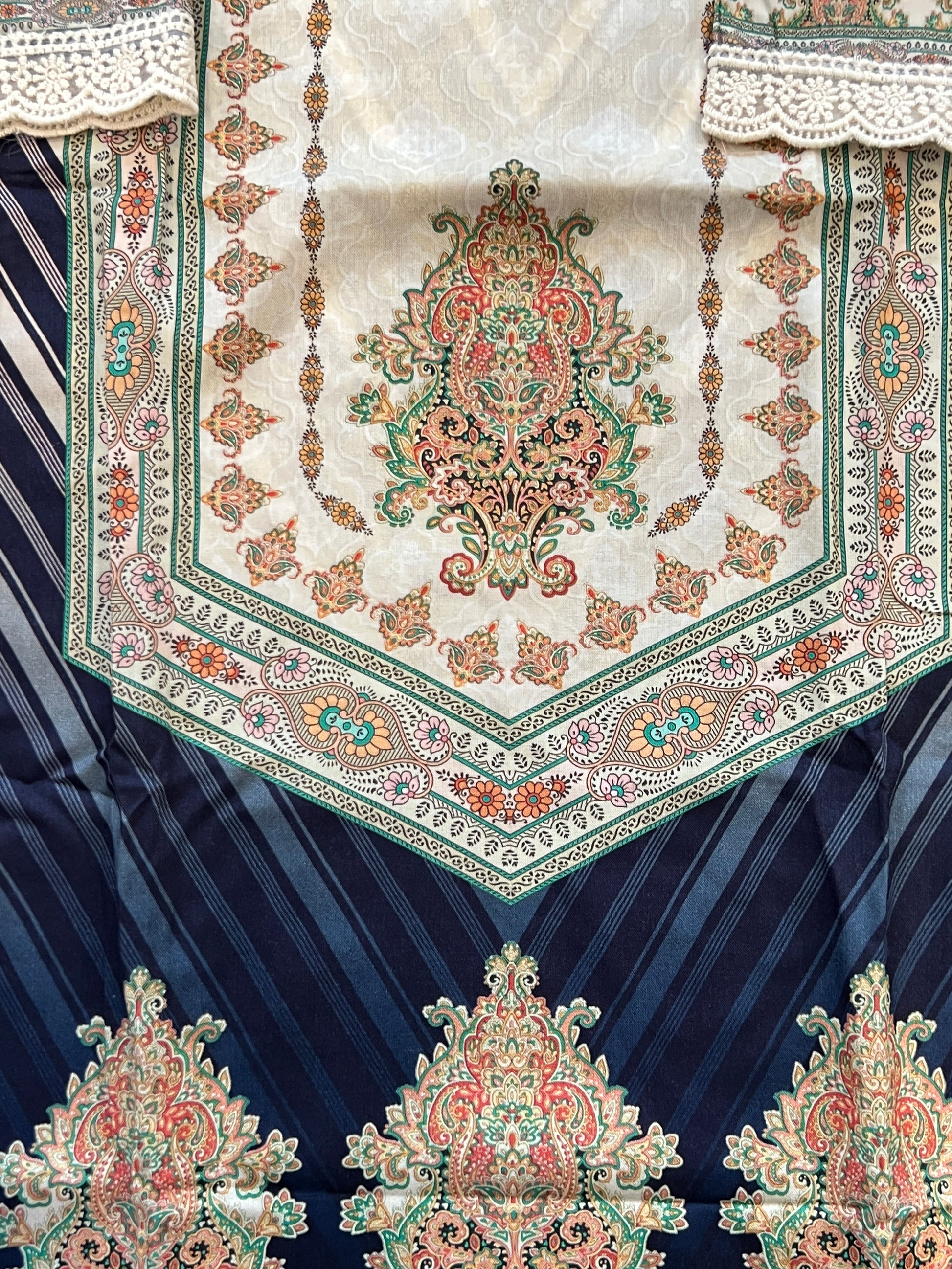 Top cotton Mill printed... beautiful embroidery on neck with beads…beautiful lace on Daman and sleeves ...Top length 48 Inches