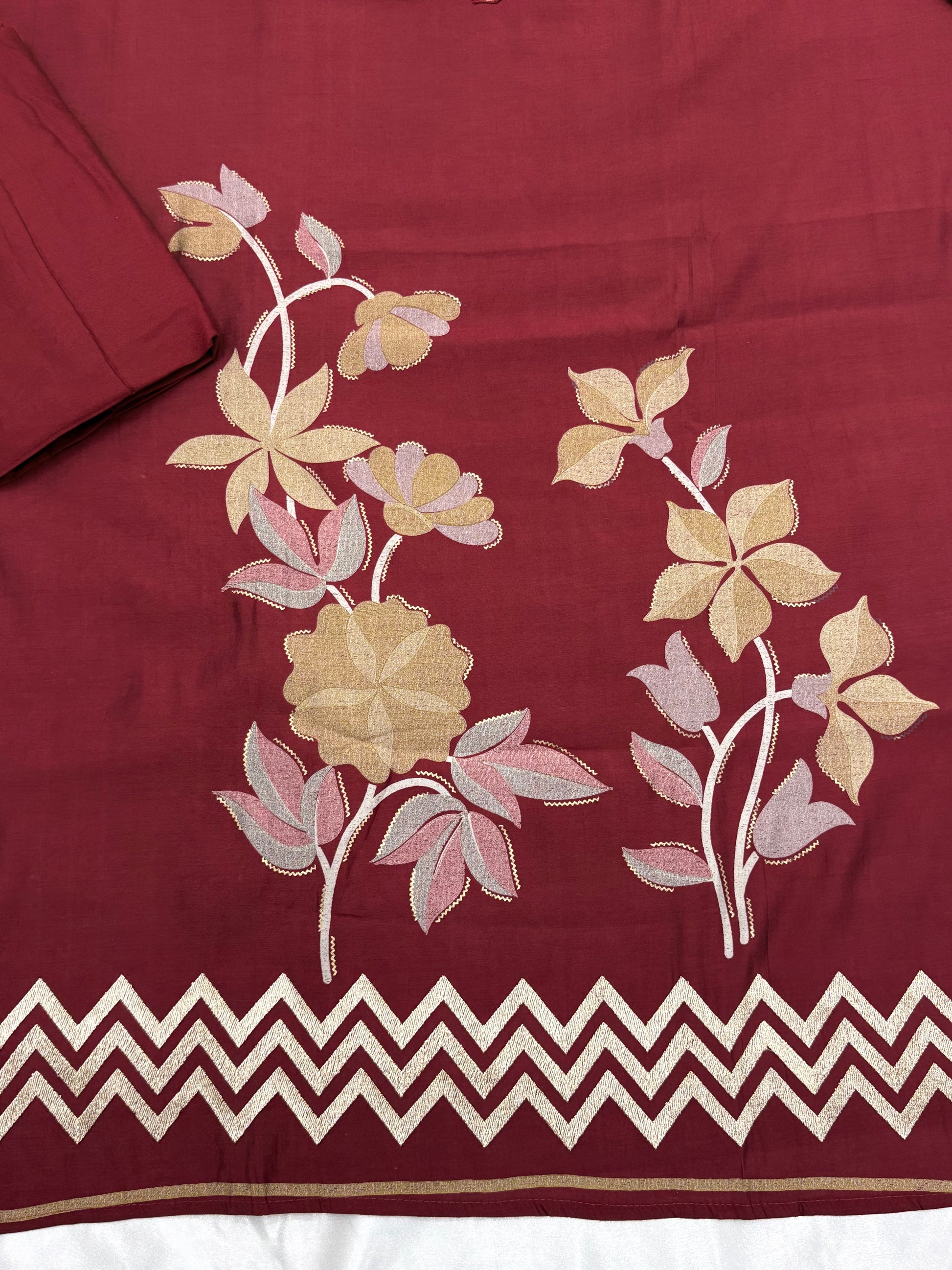 MAROON MUMTAZ MUSLIN EMBROIDERY SUIT Q