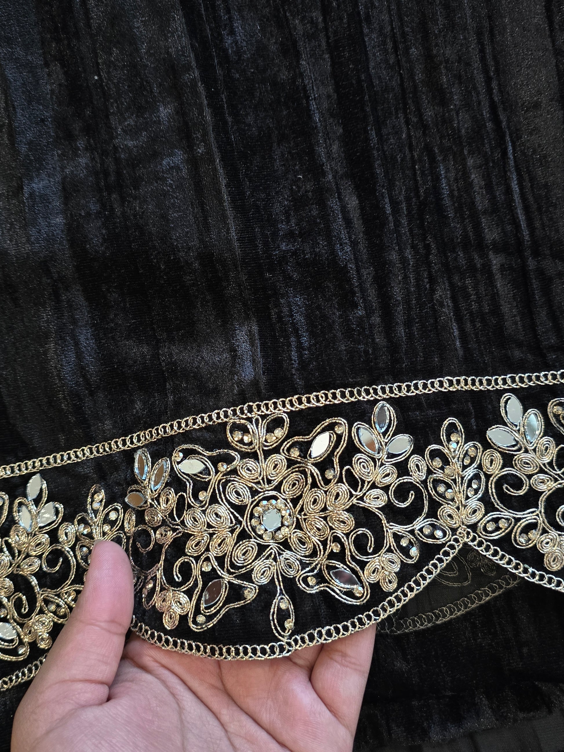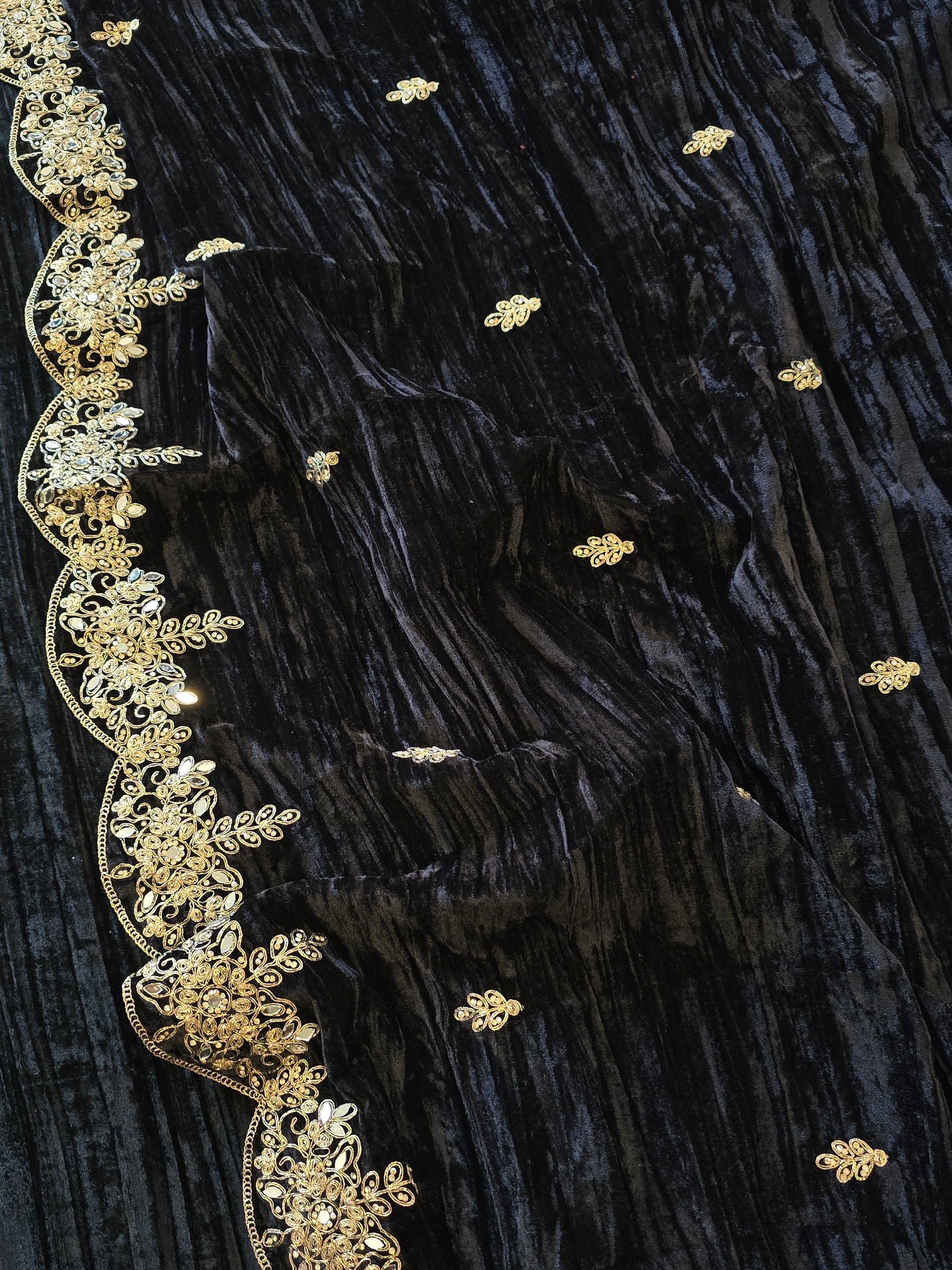 Velvet dupatta with heavy embroidery boarder 2.25 meter