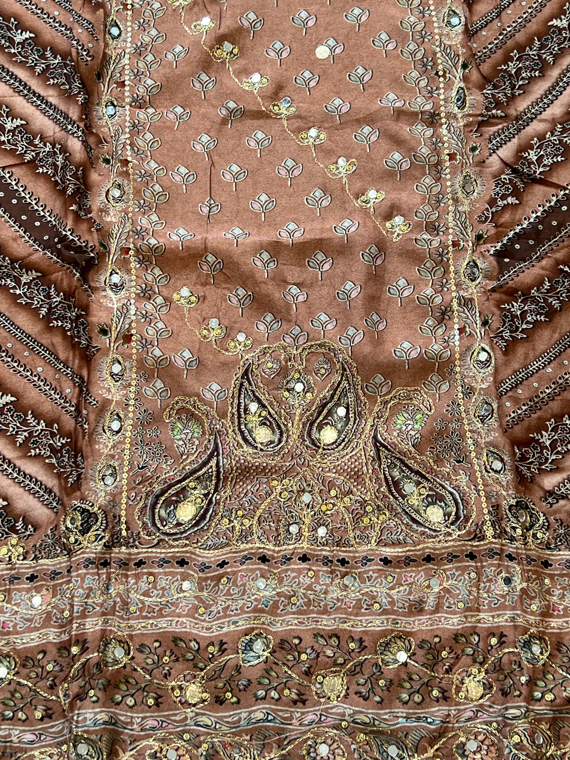 BROWN MUSLIN EMBROIDERY SUIT 238 Q