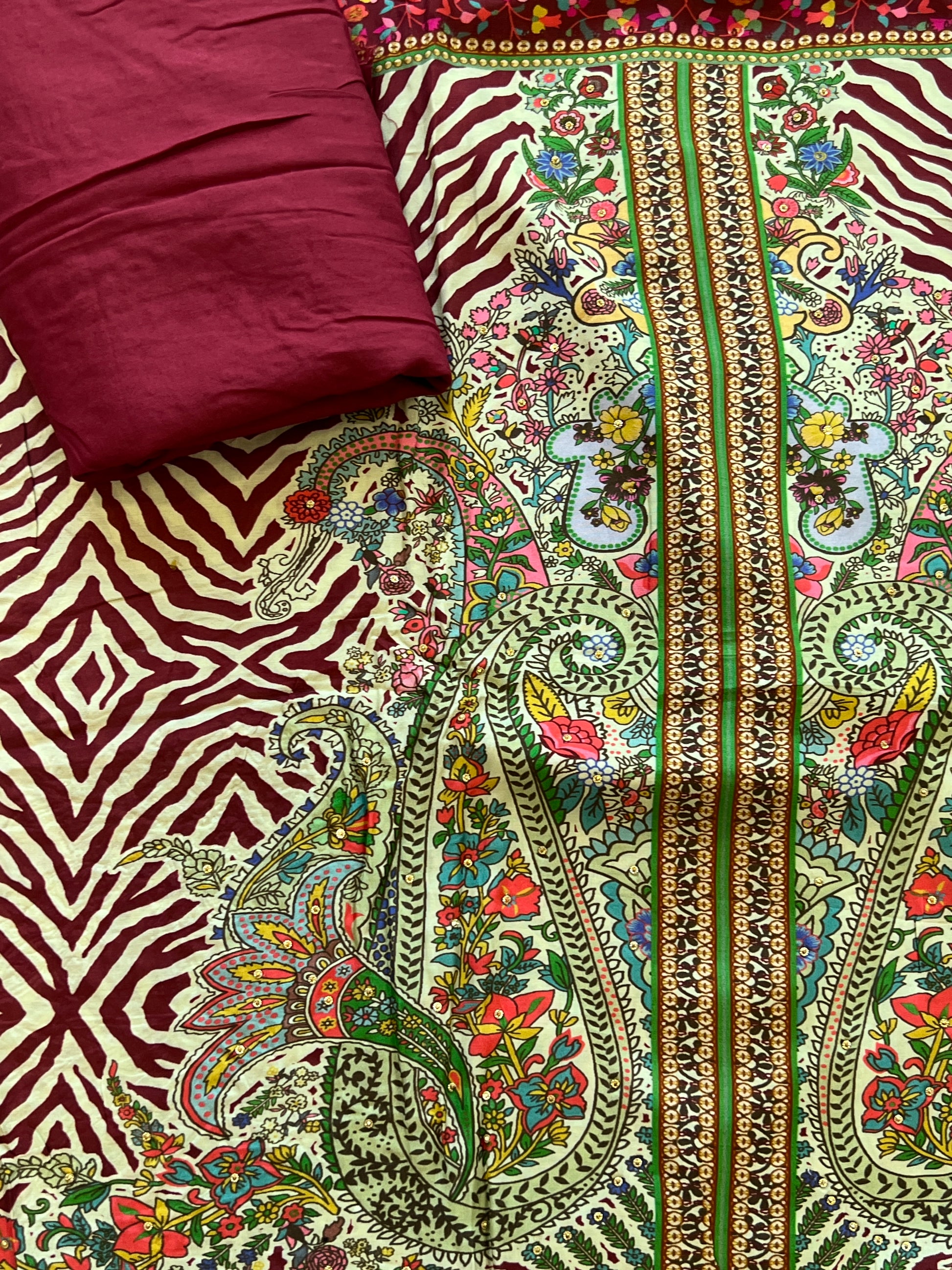Top Muslin Digital printed.. beautiful Patch work and handwork on front ...lenght 45 Inch..Bust 60 can be stitched....extra material for sleeves