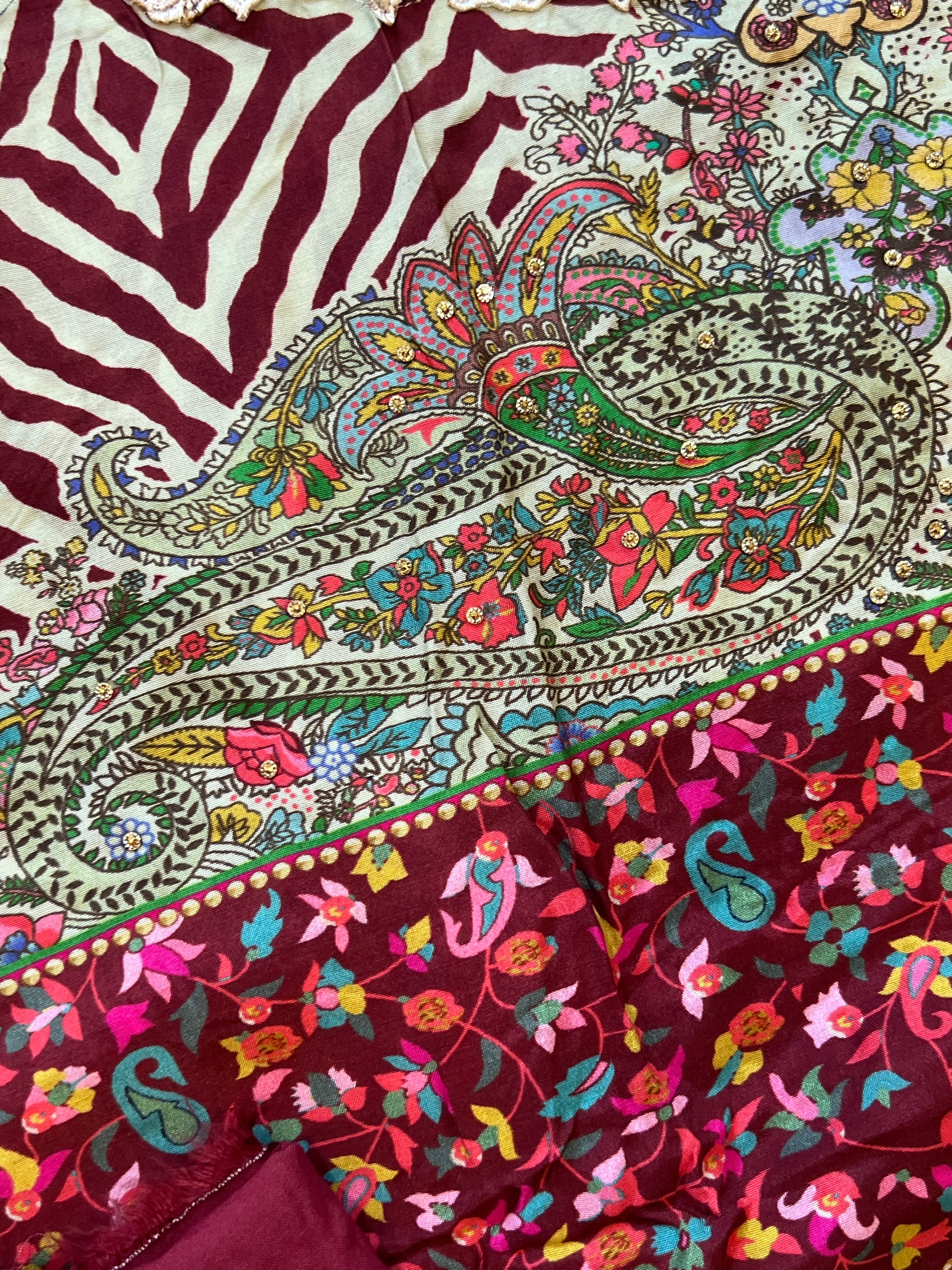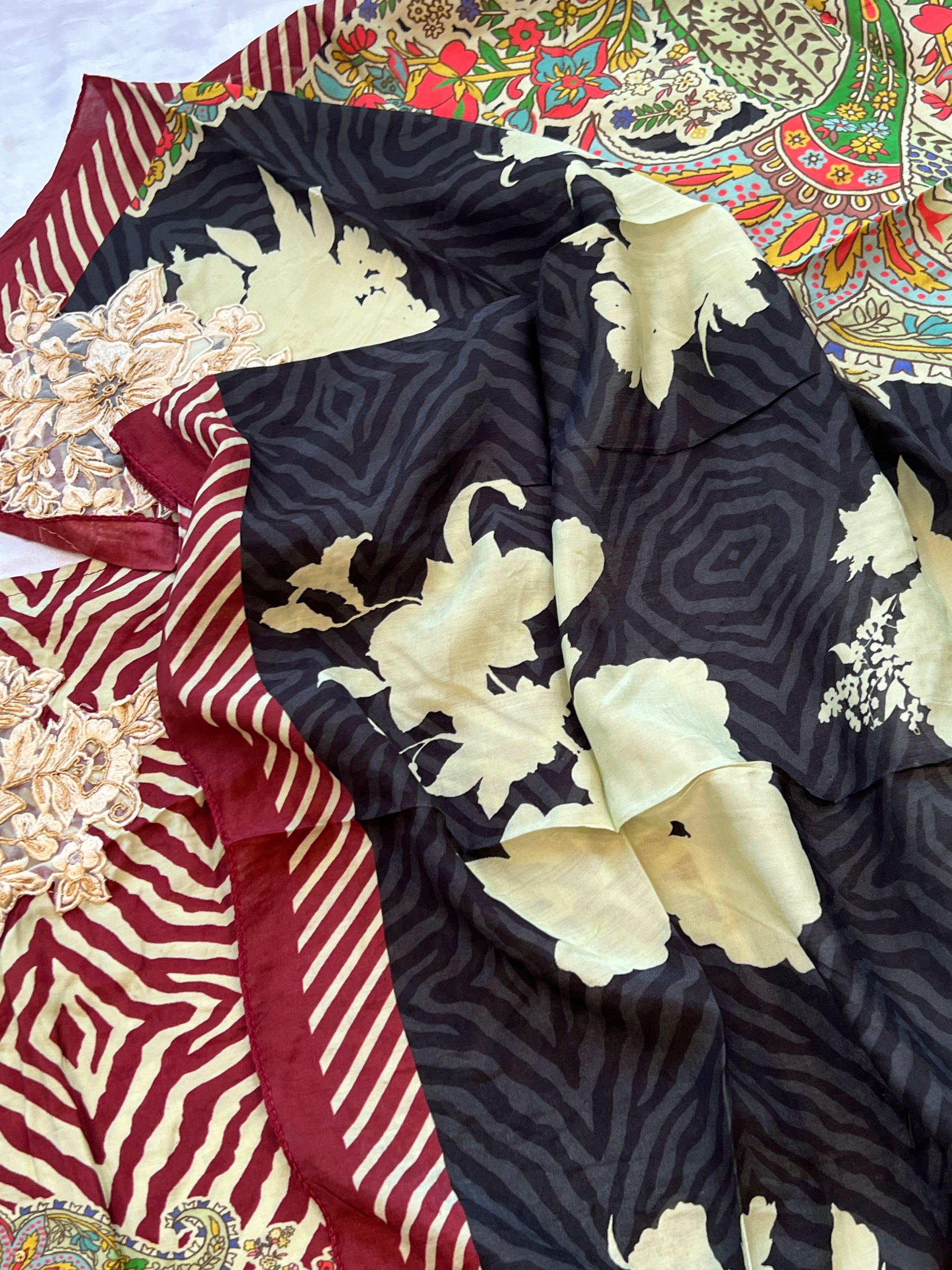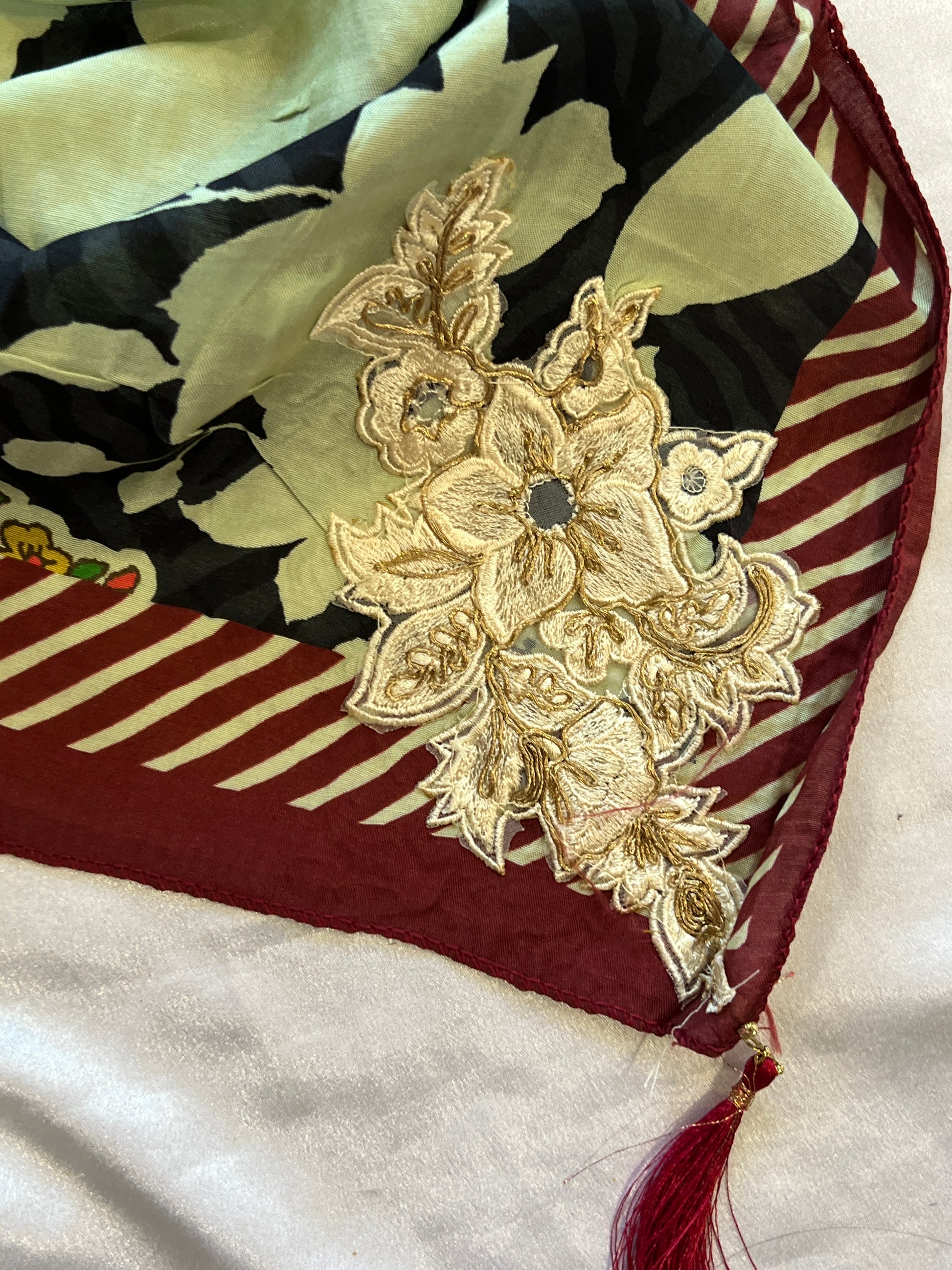 Dupatta Muslin printed with 2 side embroidery patch attached... 2.25 meter
