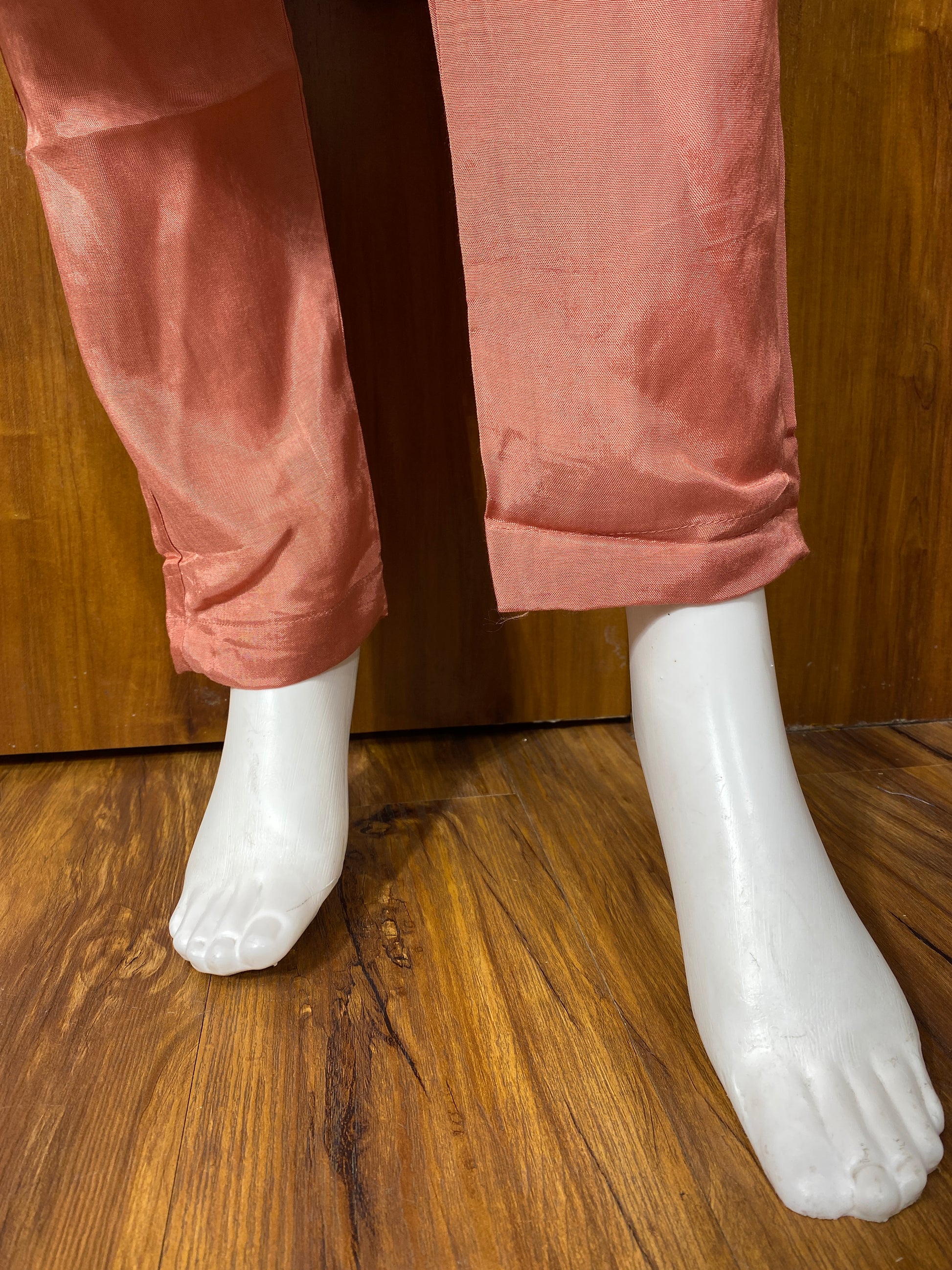 Top natural pure crepe with beautiful heavy embroidery and hand work...with attached lining... sleeves Length 17 inches... Length 44 Inches