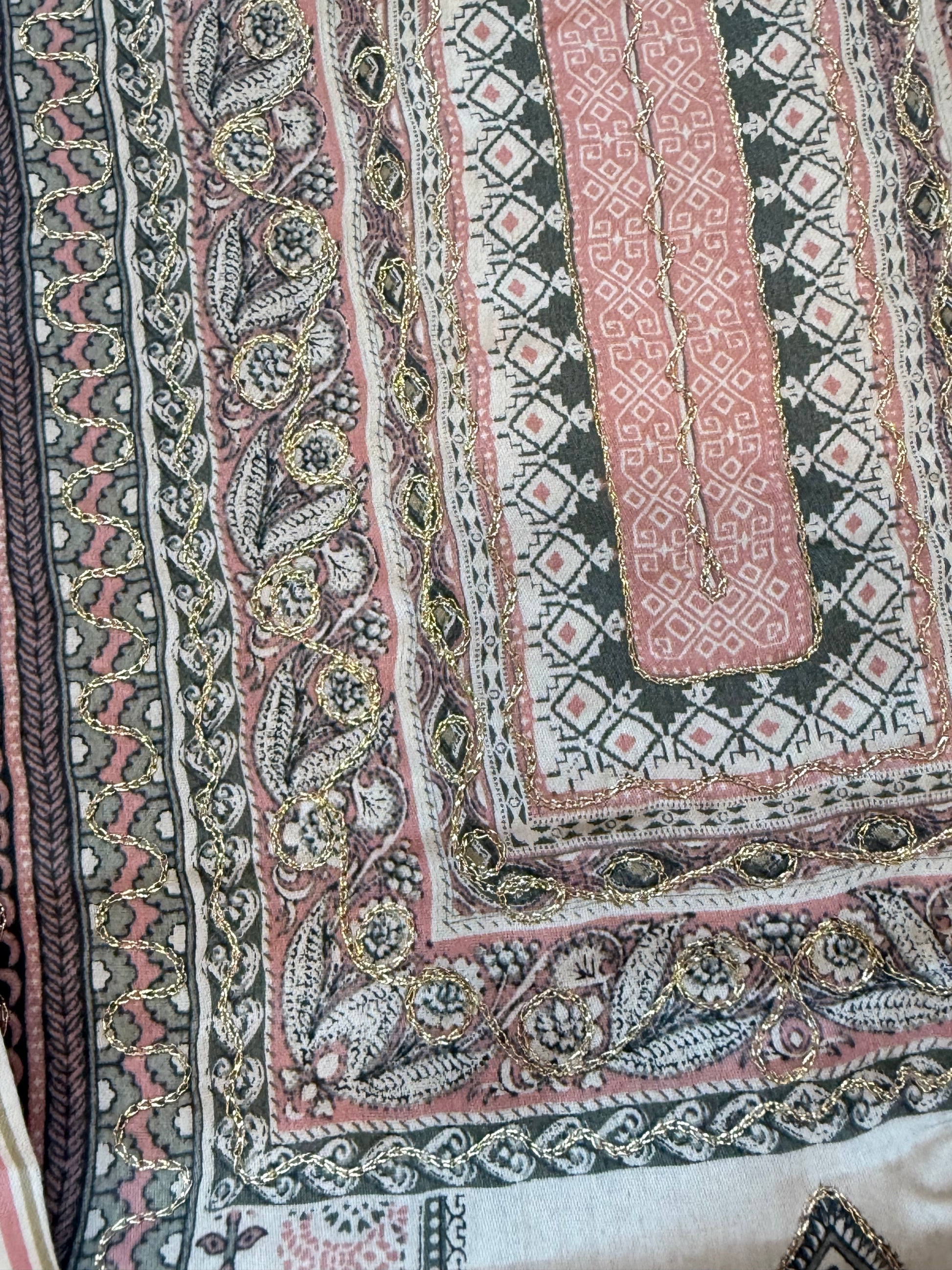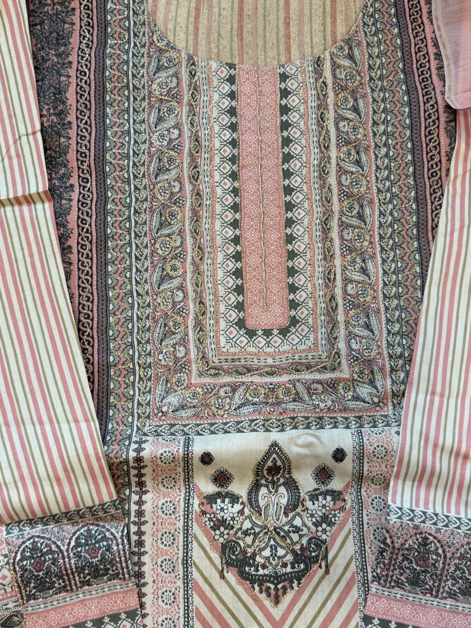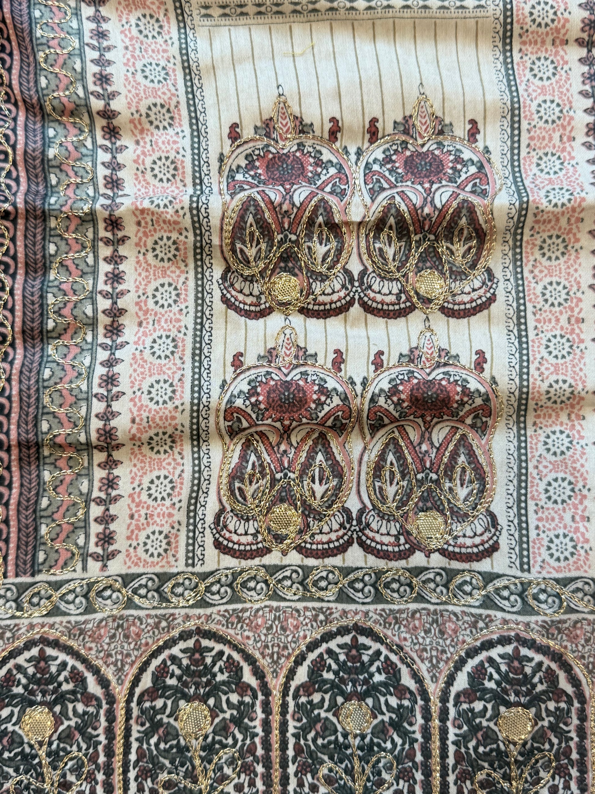 Top Lawn printed with golden thread work on neck and front.......length 43 inches