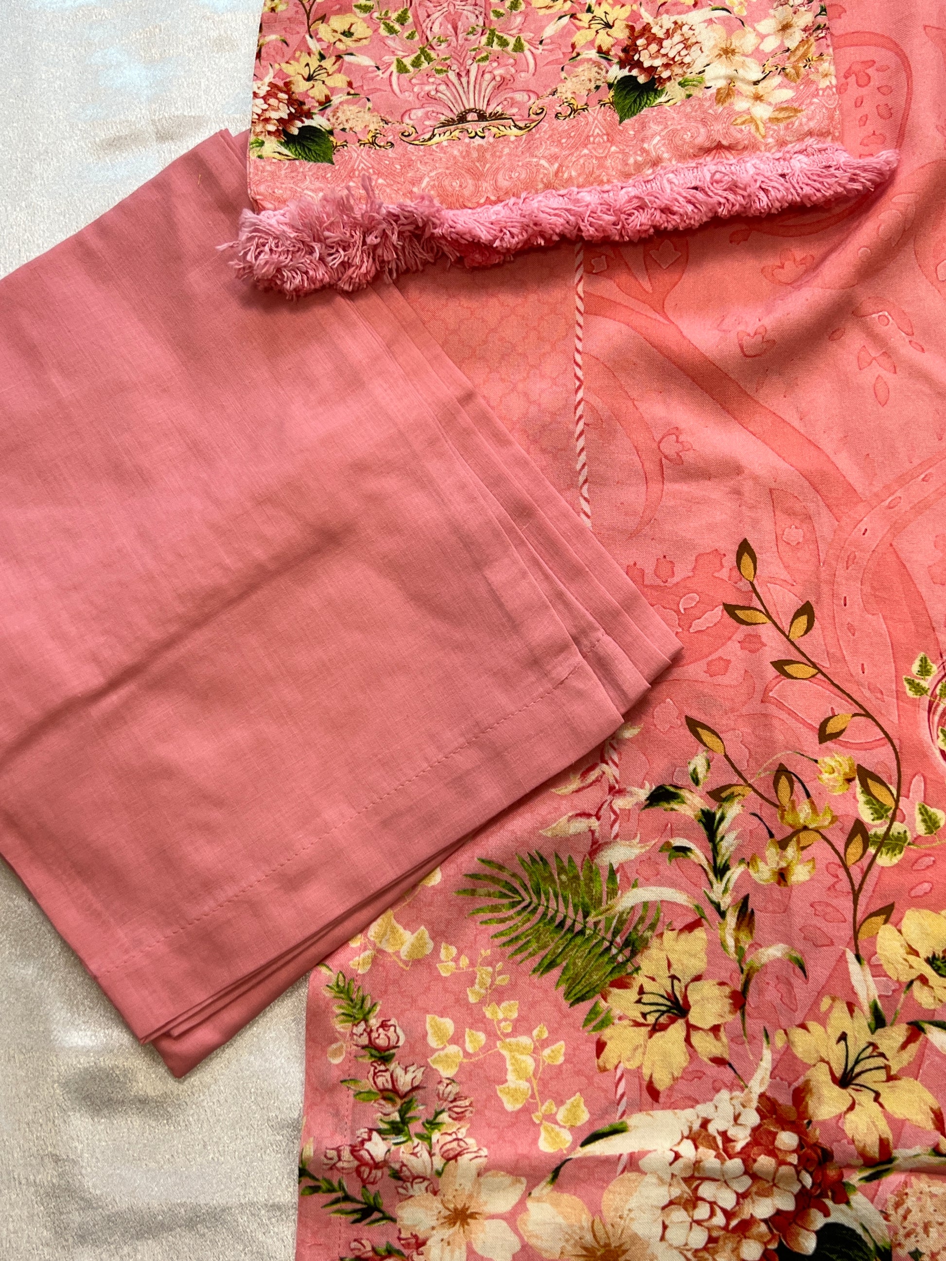 Top Lawn cotton Digital printed....Embroidery on Neck...... extra lace detailing sleeves and daman....