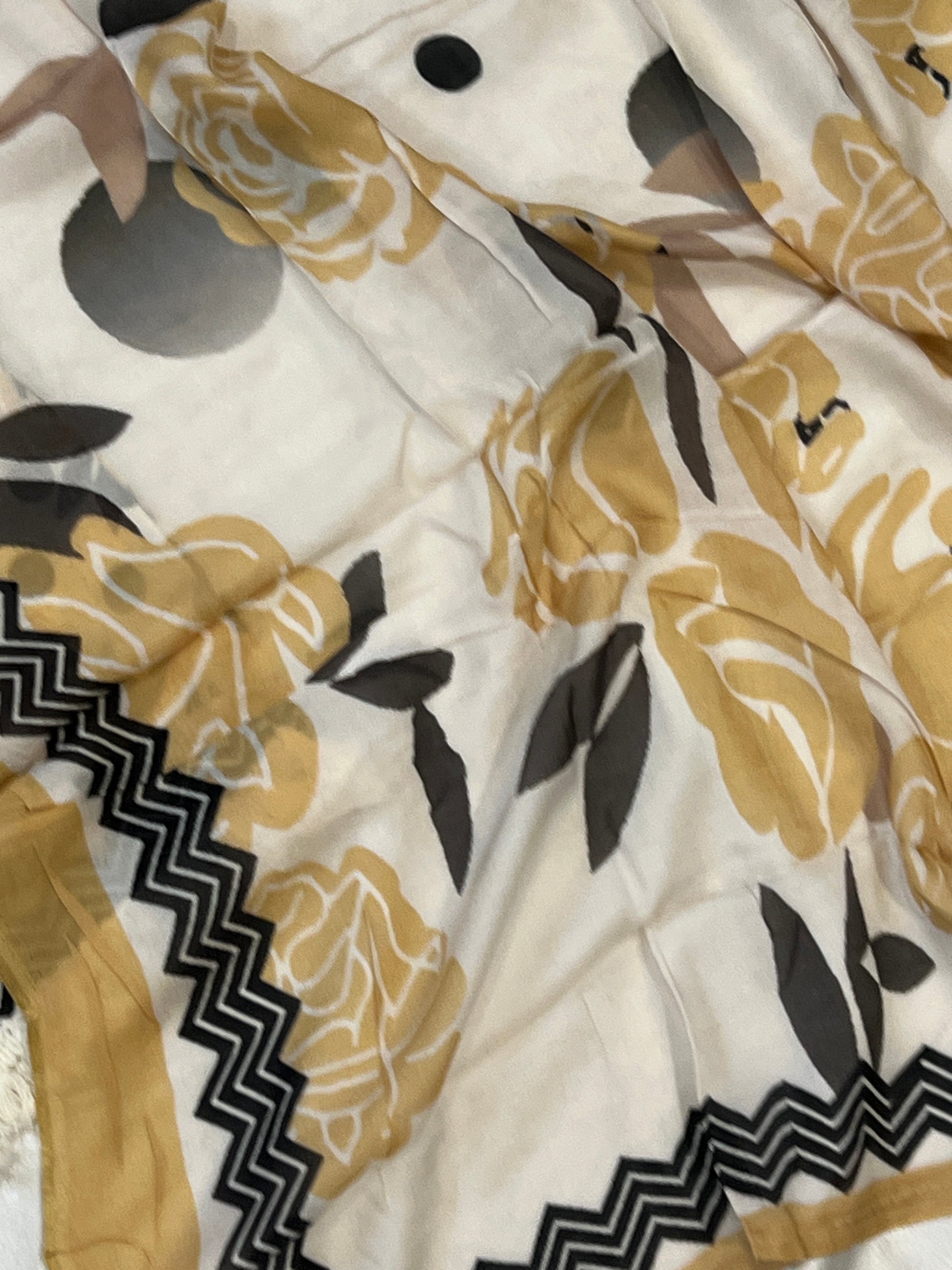 Top Lawn cotton printed..... Heavy self embroidery on neck ..... extra lace detailing on front ,sleeves and daman....