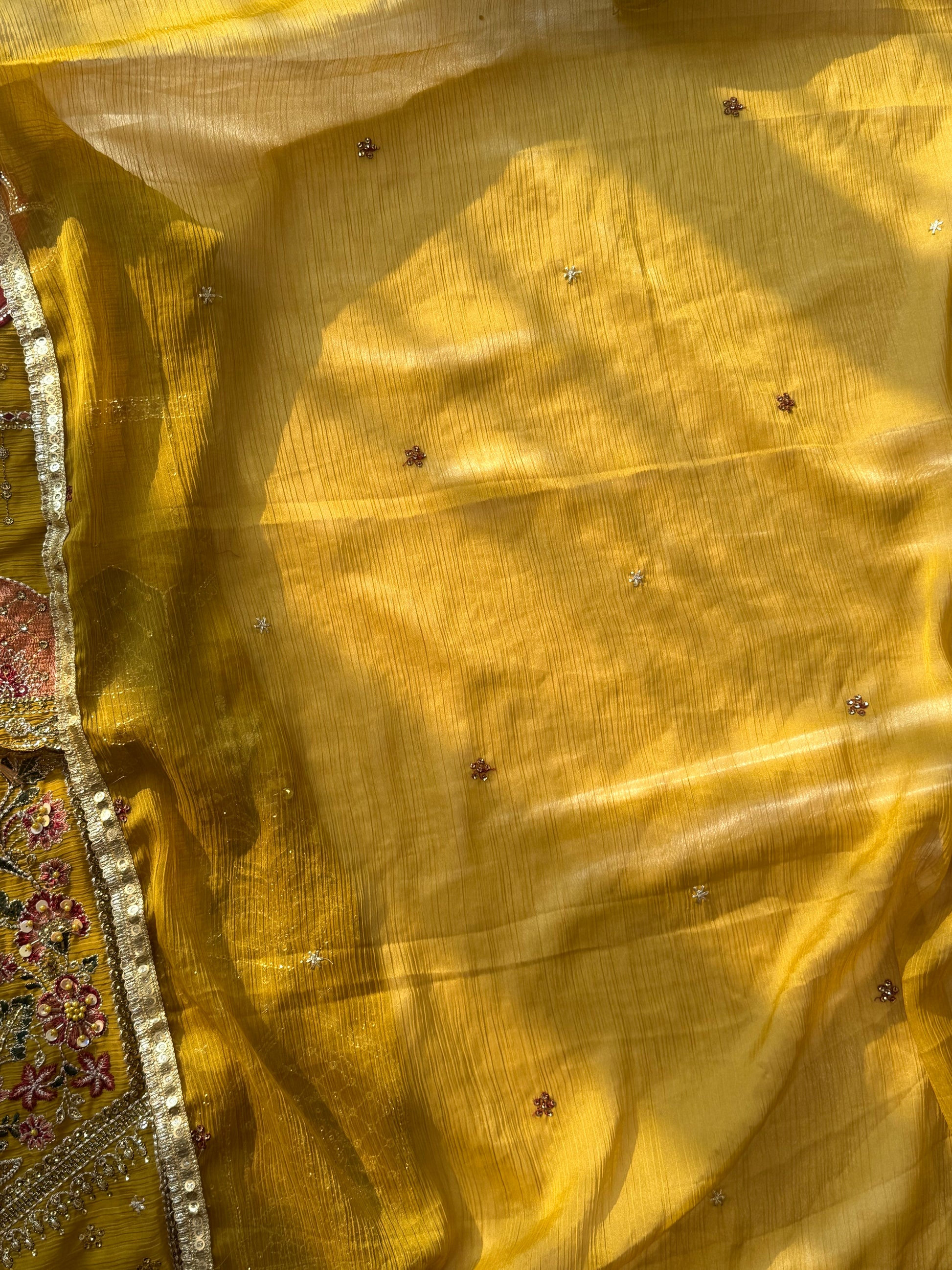 Organza Dupatta with heavy cut dana boarder work.2.25 meter