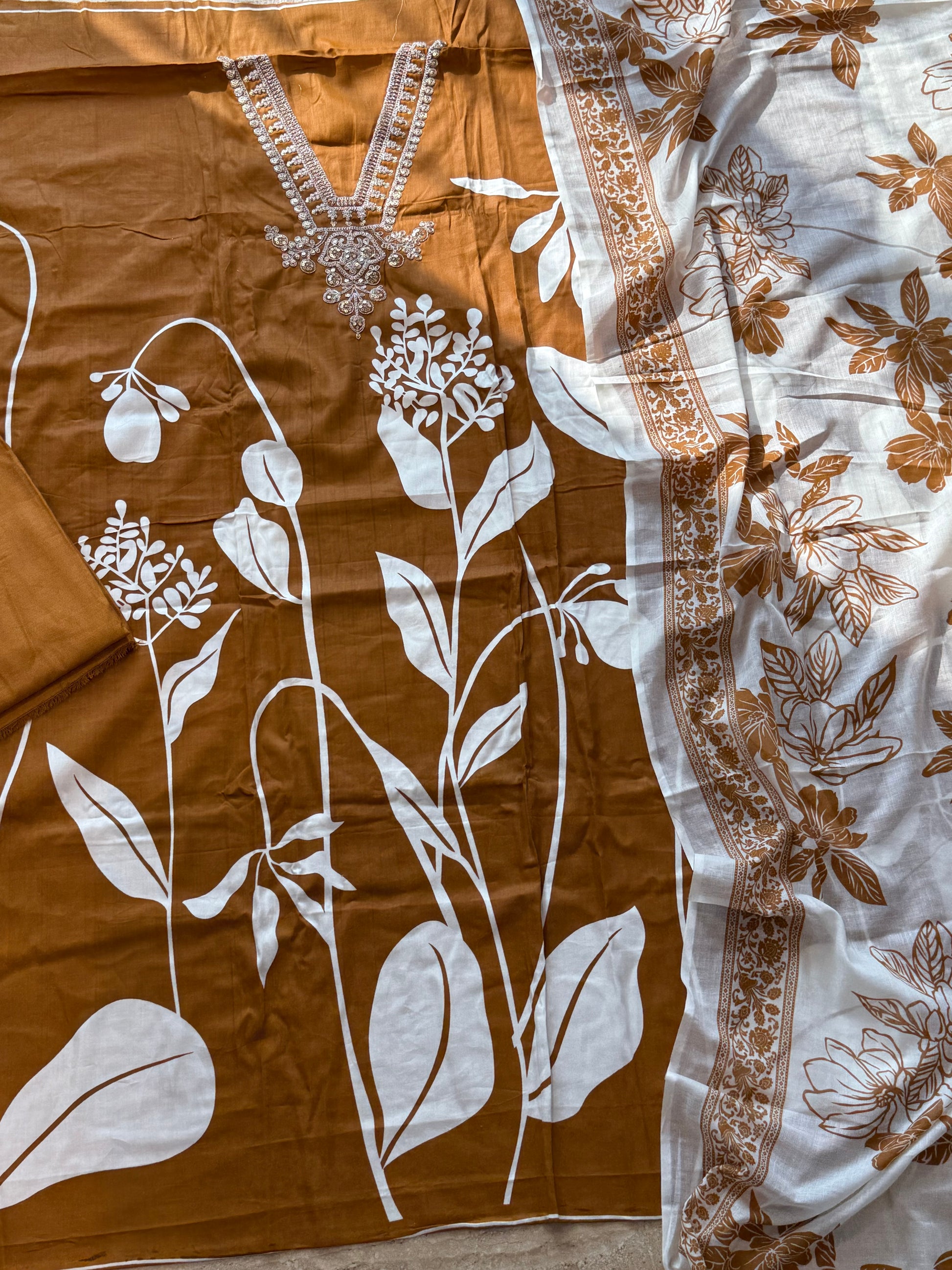 Top pure Lawn Cotton digital print with beautiful stone handwork bust 52. lenght 42 inches