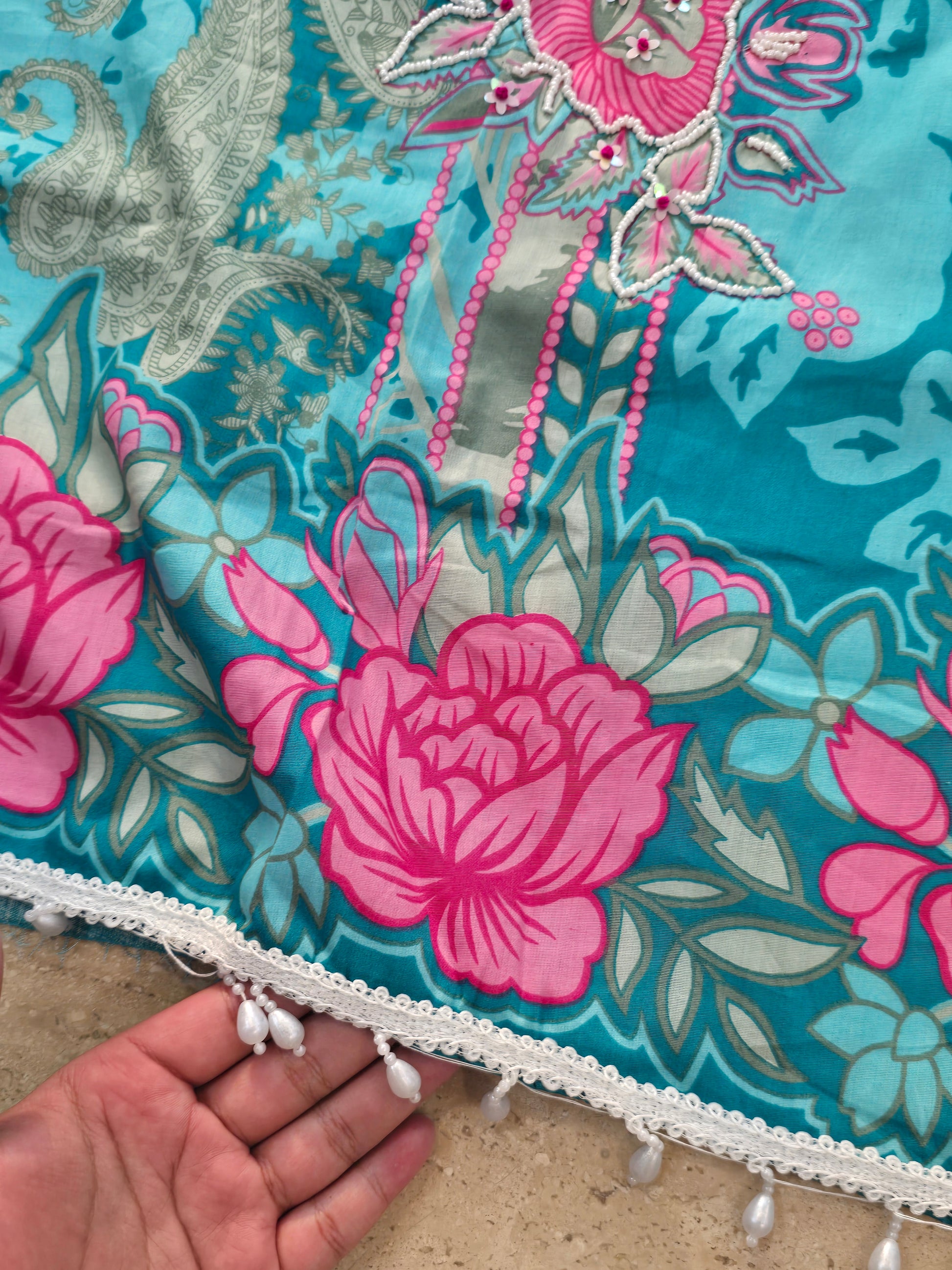 Top pure Lawn Cotton digital print with beautiful stone handwork bust 52. lenght 42 inches
