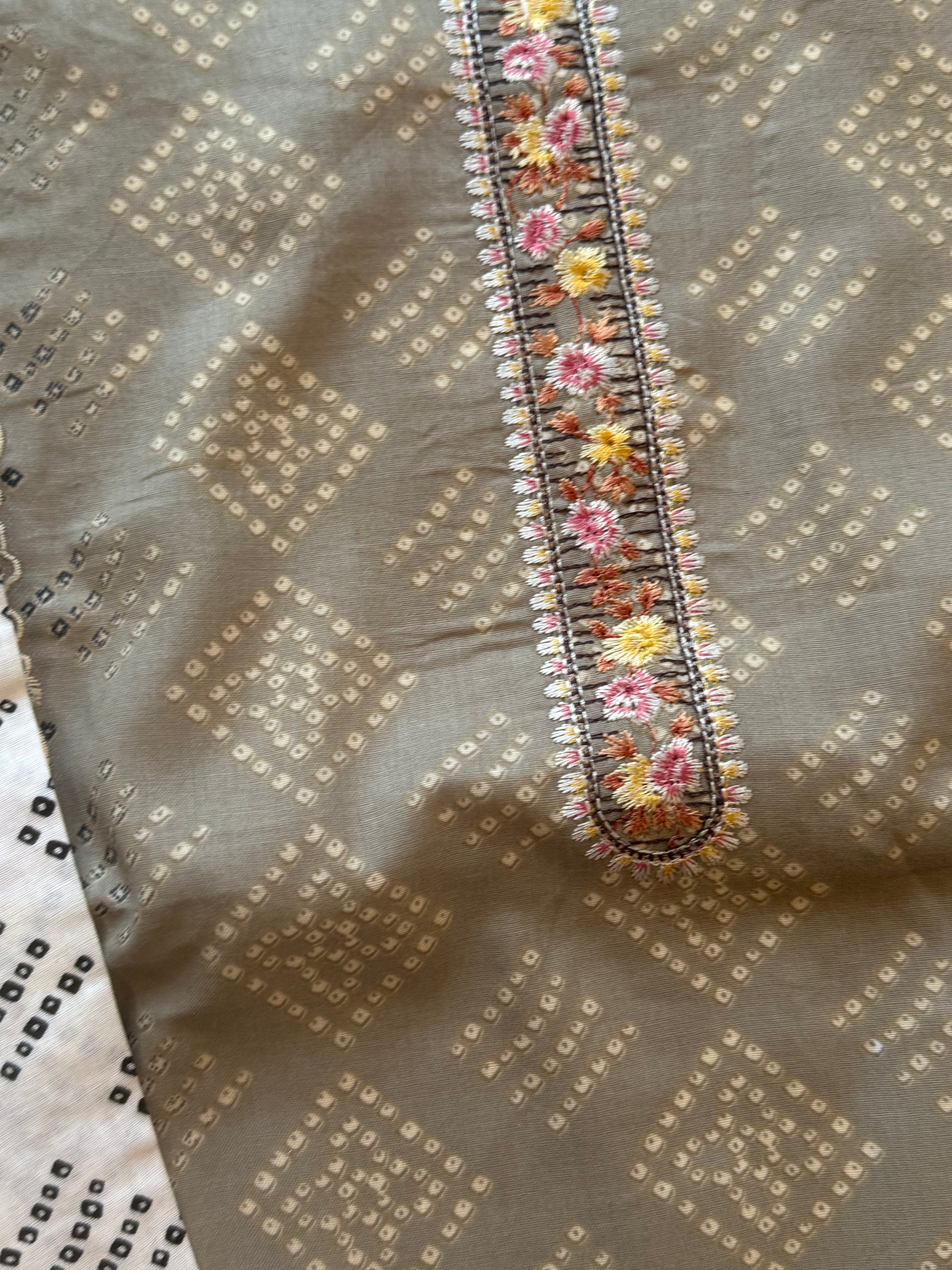 Top cotton Mill printed... beautiful embroidery panel on front …stitched with lining ...Top length 42 Inches