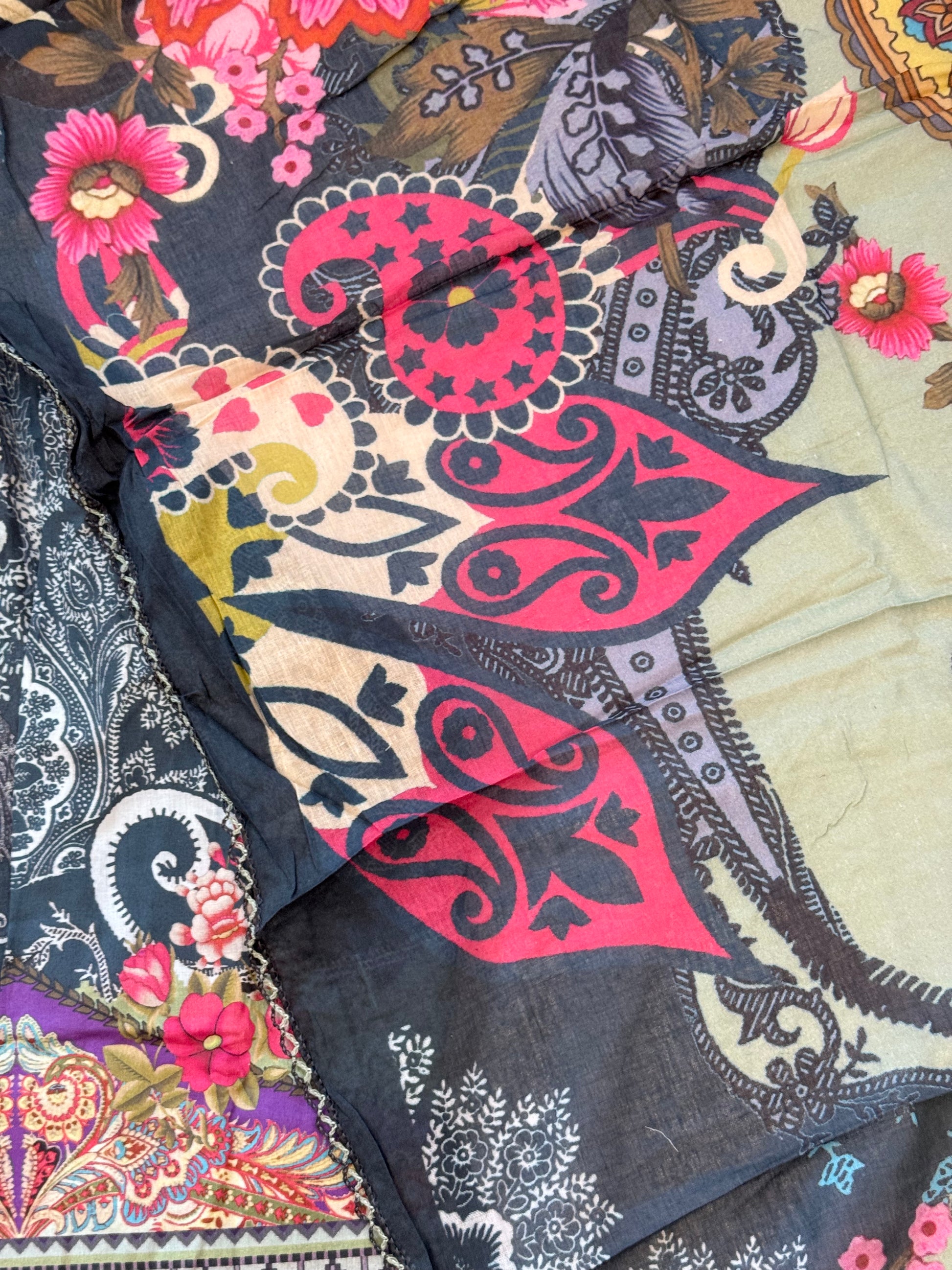 Soft pure cotton dupatta printed with qureshiya lace 2.25 meter full width